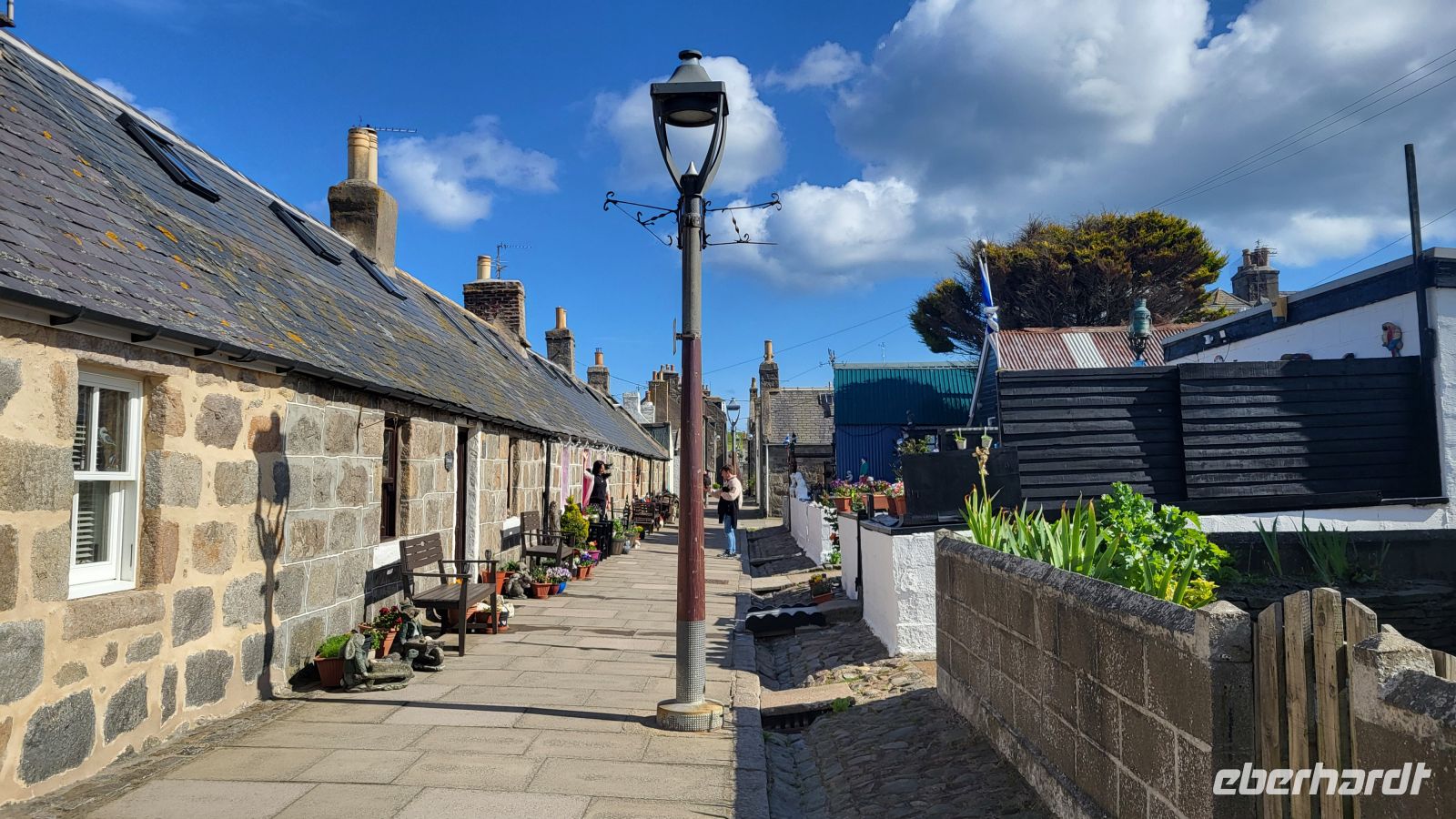 Am Nachmittag erwartet uns in Aberdeen unsere neue örtliche Reiseleiterin Isabel. Mit ihrem feinen Humor und viel Wissen führt sie uns durch die Altstadt der „Granite City“. Wir spazieren durch enge Gassen, vorbei an Universitätsgebäuden aus grauem Granit, und spüren dabei die ganz eigene Atmosphäre dieser Stadt. Der Hafen bildet einen spannenden Kontrast dazu: Hier stehen kleine, bunt gestrichene Häuser dicht an dicht – fast mediterran anmutend, mit Blick aufs Meer und die Fischerboote.