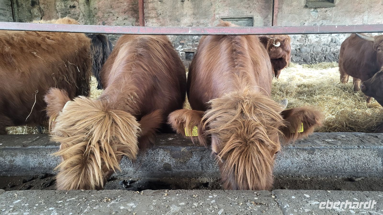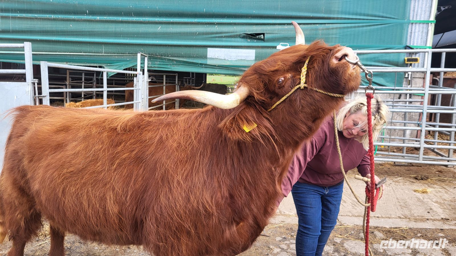 Nach dem Frühstück verlassen wir Aberdeen und fahren hinaus aufs Land – in die weiten, grünen Hügel Aberdeenshires. Unser erstes Ziel ist die Cattle Farm von Grace, die hier mit viel Leidenschaft und Durchhaltevermögen über die letzten Jahre hinweg eine beeindruckende Landwirtschaft aufgebaut hat. Im Mittelpunkt stehen ihre Hochlandkühe – majestätische Tiere mit langem Fell und beeindruckenden Hörnern.
