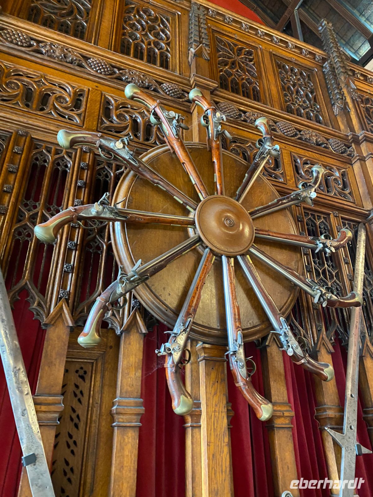 Wir reisen als nächstes an einen friedlicheren Ort, es geht nach Cawdor Castle, dem Sitz der Gräfin Campbell, die eigentlich aus Karlsbad stammt. Sie verliebte sich einst in einen Schotten, dem ein Schloss gehörte, nun gehört sie dem Schloss wie sie einmal meinte. Hier kann man die immer noch bewohnten Räume des alten Hauses besichtigen und natürlich in einem der drei faszinierenden Gärten lustwandeln.