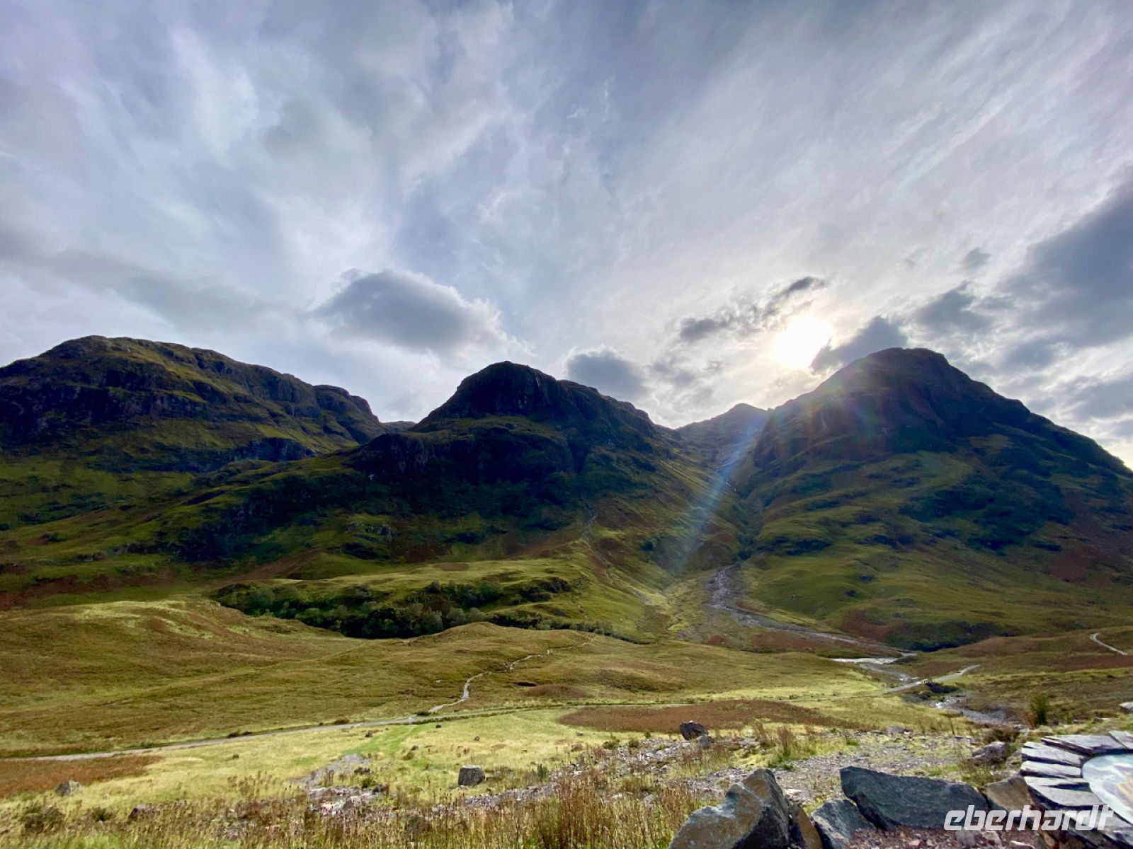 Durch einen Nationalpark, vorbei an wunderschönen Seen, in Schottland Lochs genannt, geht es in das legendäre enge Tal Glen Coe. Hier spielte sich eines der schlimmsten Gemetzel in der, lange Zeit ohnehin rauen, Geschichte Schottlands ab. Romantischer ist da schon der Gedanke, dass hier James Bond aufgewachsen sein soll!
