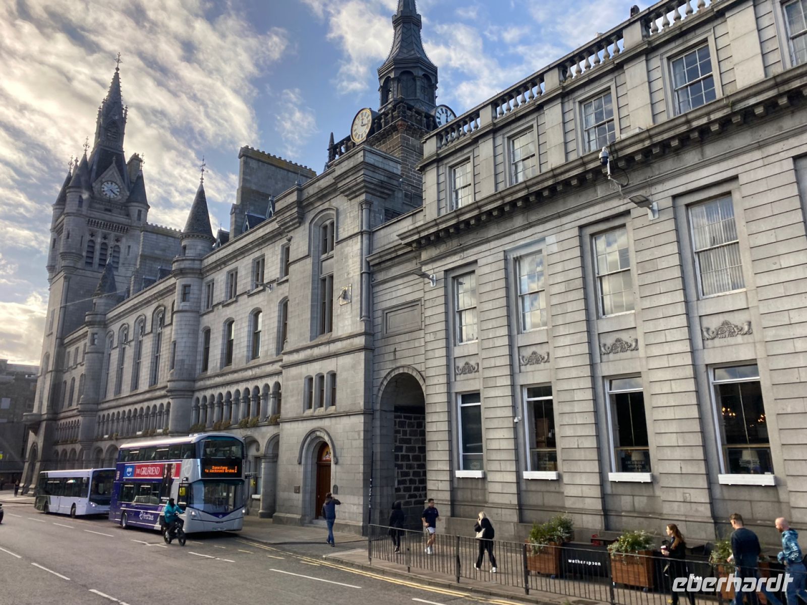 Wir sind nun in Aberdeenshire angekommen, eine sogenannte Council Area weiter westlich, und lassen nun die Whiskyregion hinter uns. Unser Ziel ist für heute Aberdeen, hier lebt man von zwei anderen wichtigen Treibstoffen: Bildung und Öl.