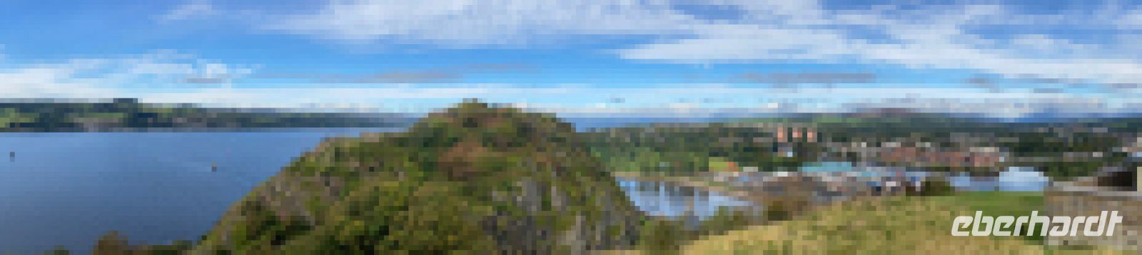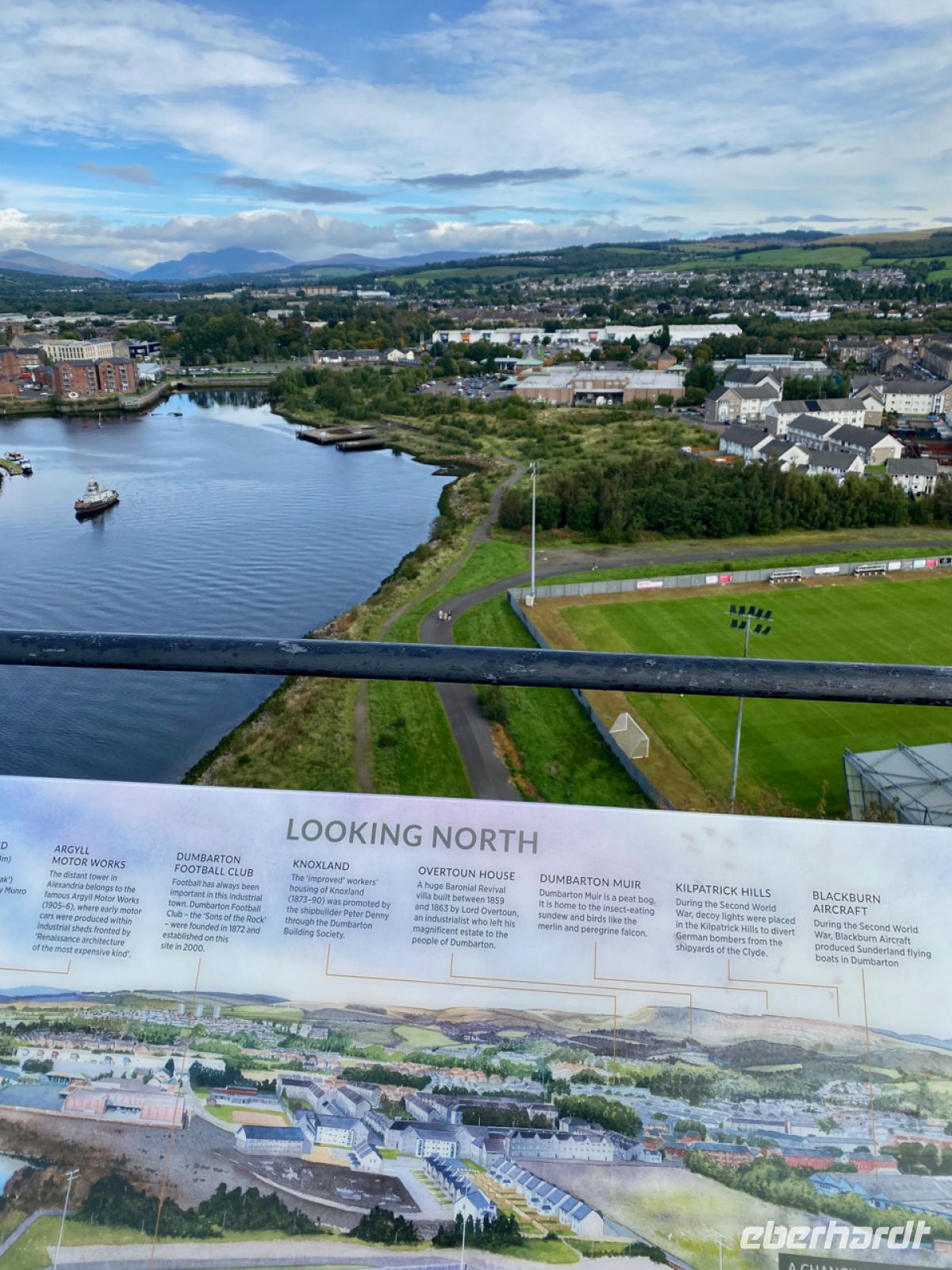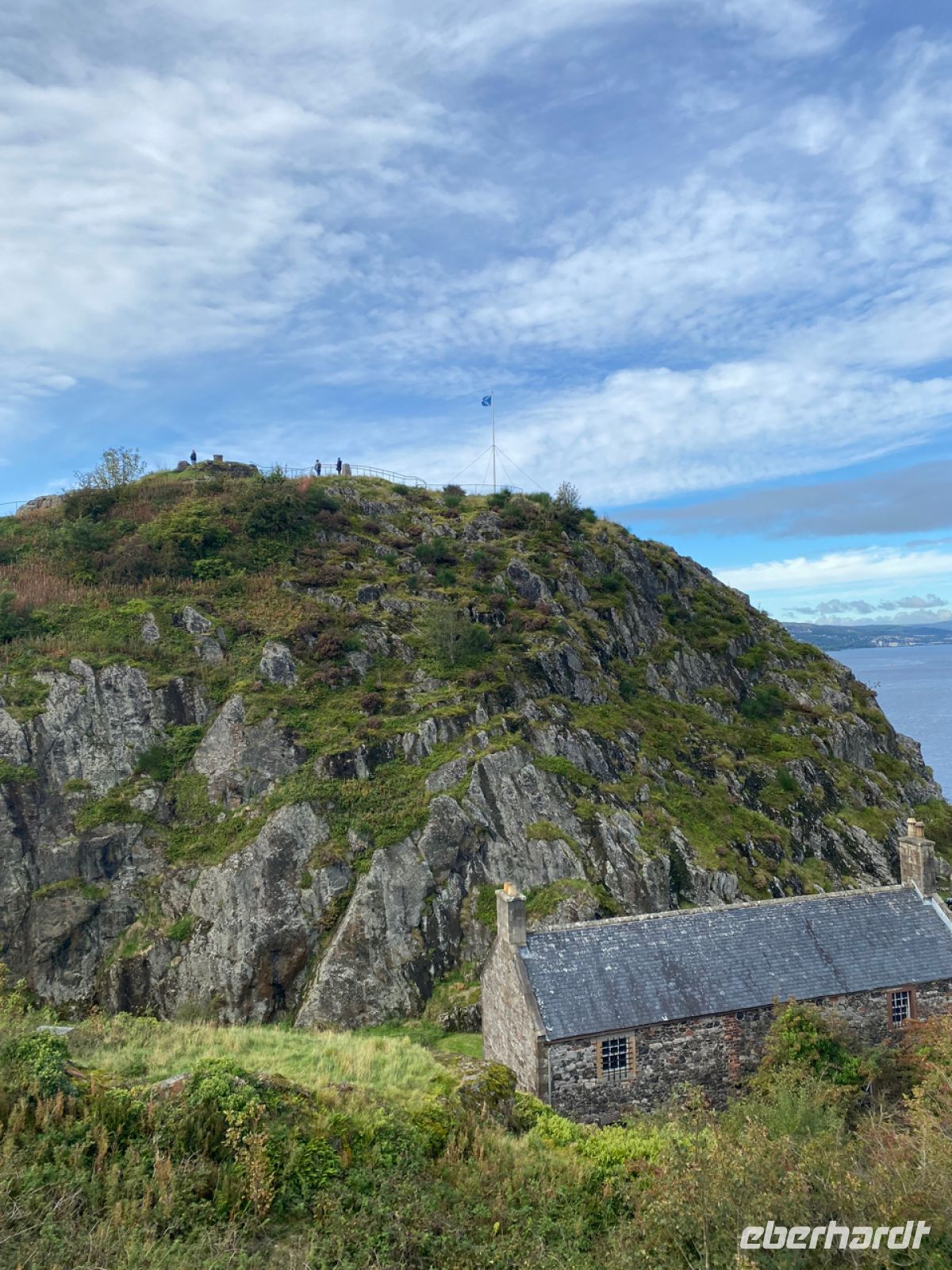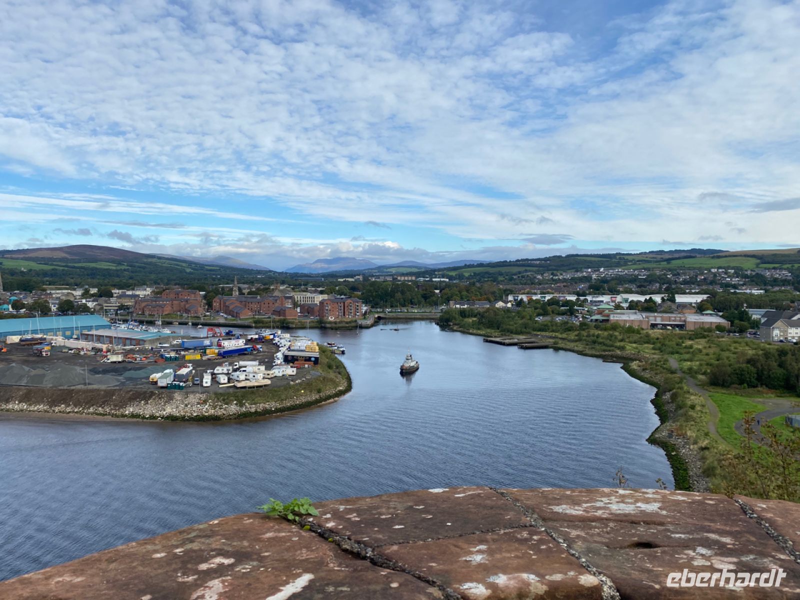 Hierzulande werden Entfernungen in Meilen gemessen, nur 20 davon, also 32 Kilometer, folgen wir dem Fluss Clyde bis zu unserem ersten Ziel, dem legendenumwobenen Dumbarton Castle.