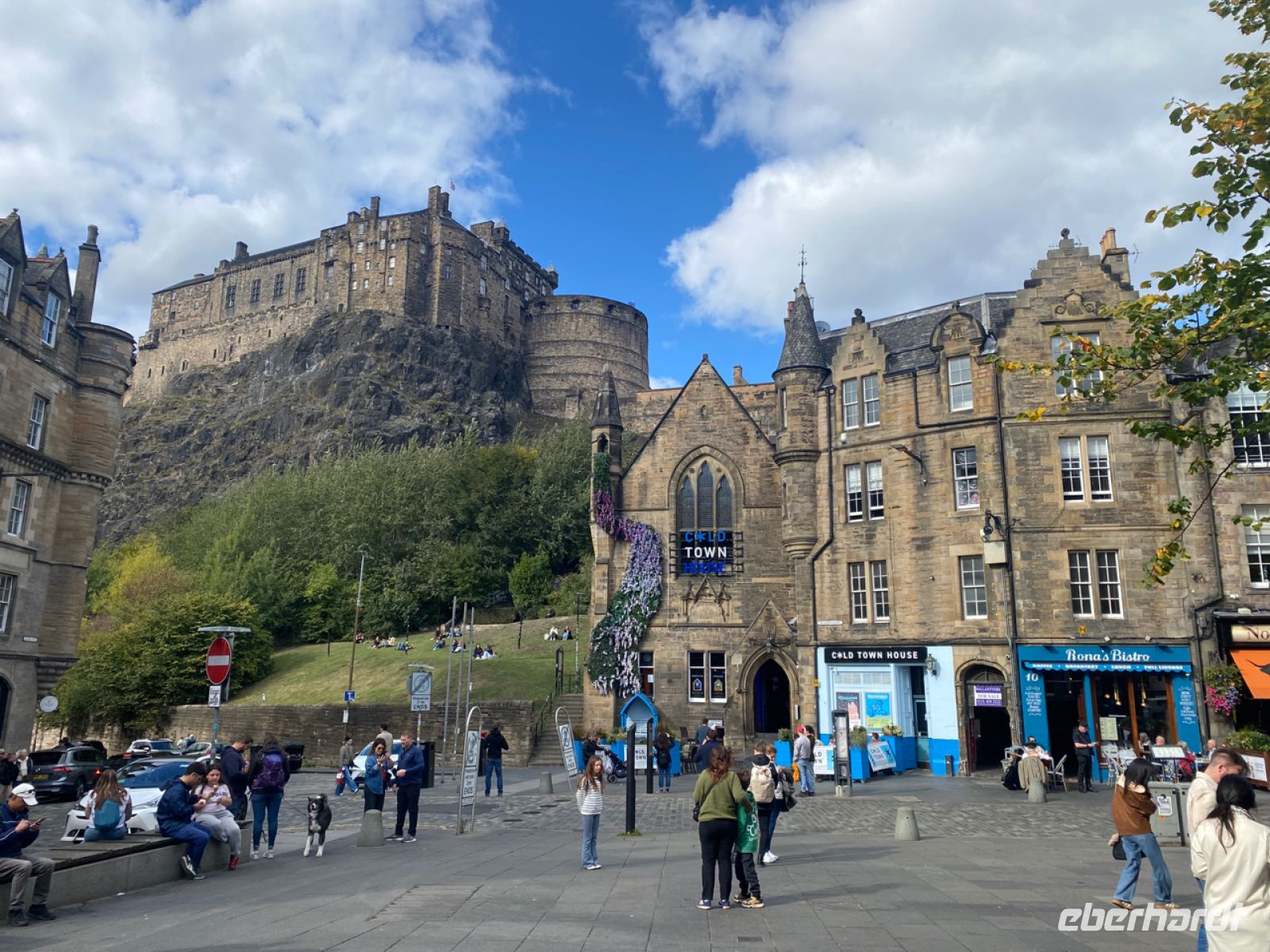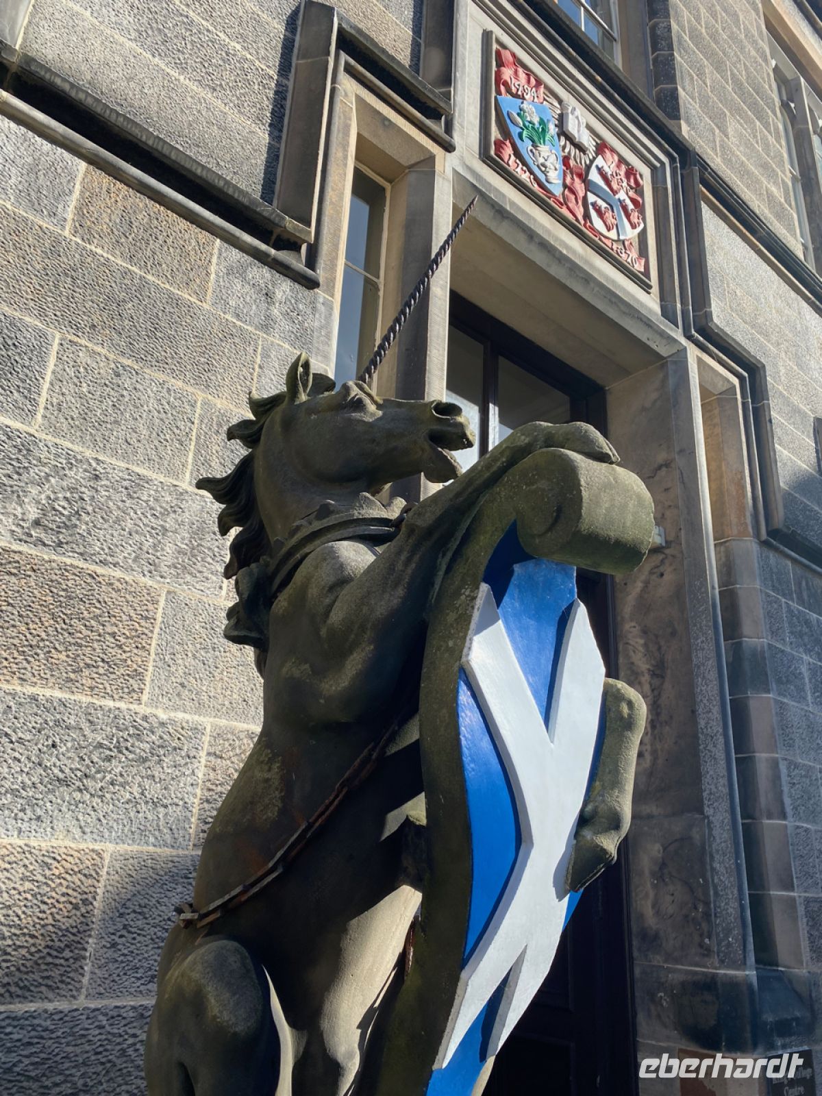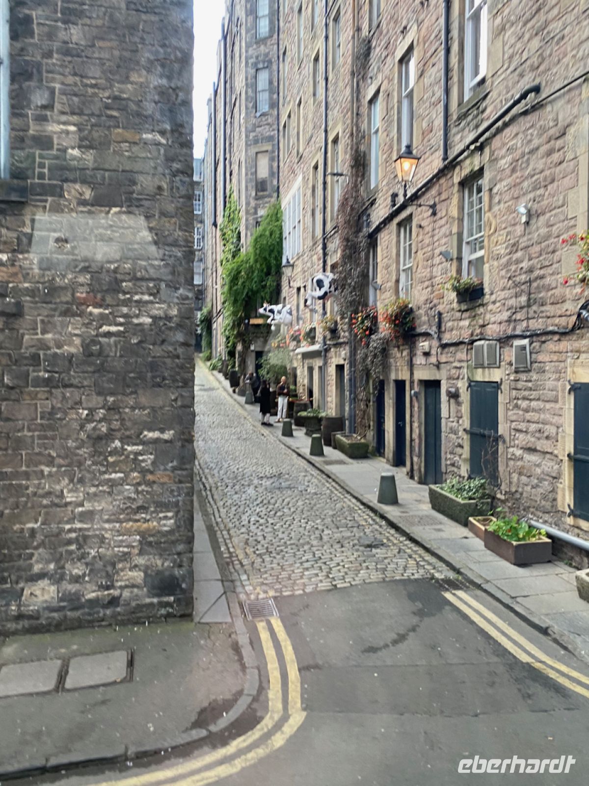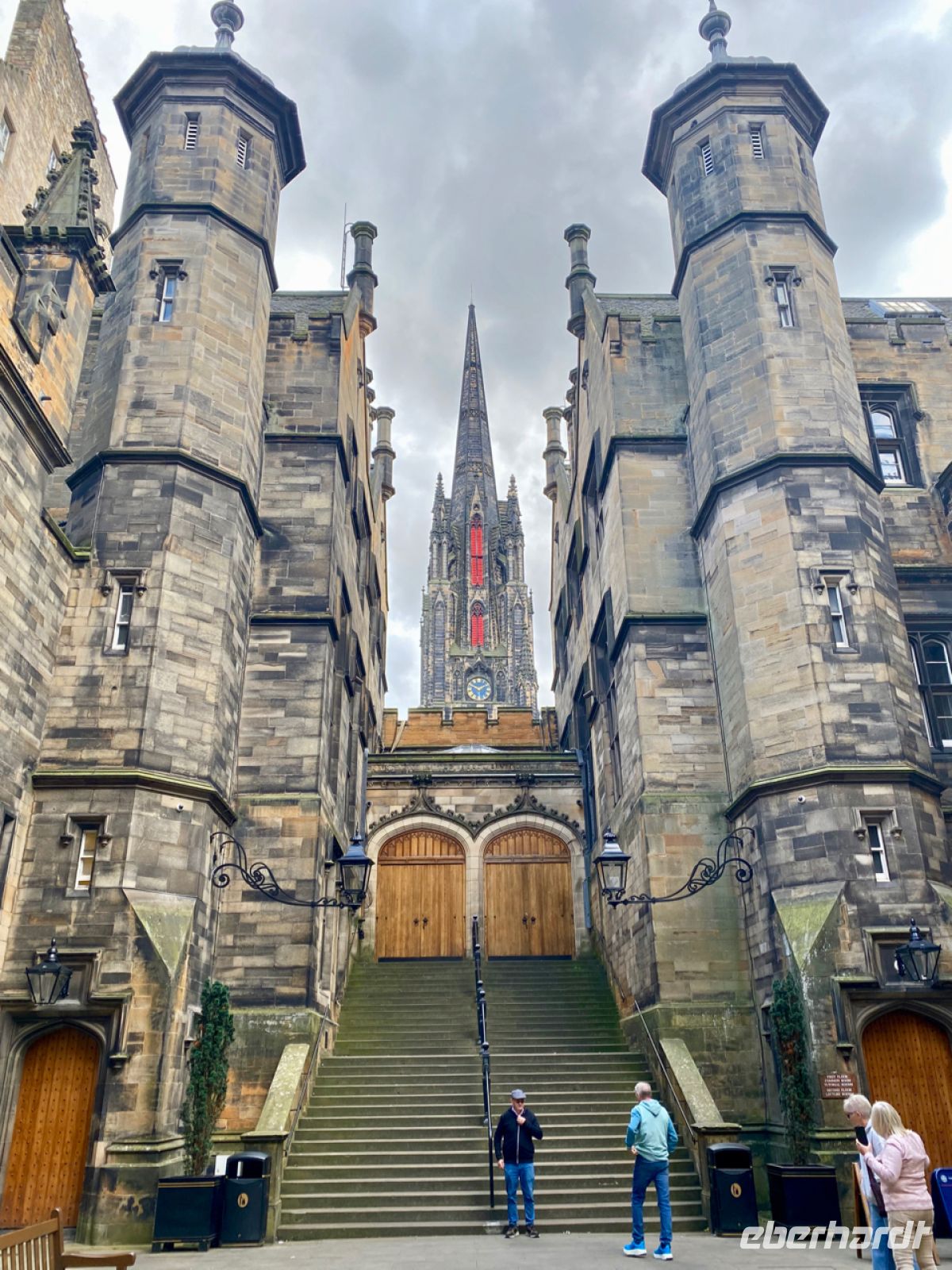 Wir halten am Fettes College, ein lustiger Name der auf einen großzügigen Stifter zurückgeht, den man „Fetz“ ausspricht, auch ganz komisch. James Bond soll hier zur Schule gegangen sein, wird berichtet. Noch mehr Bildung können wir am nächsten Halt einatmen, zusammen mit Blütenduft, denn wir machen eine Pause am Königlichen Botanischen Garten bevor wir in den Süden der Stadt weiterfahren. Hier fühlt man sich am Fuße alter Vulkane wieder in die Berge versetzt. Hier sehen wir Schloss Holyrood und das vor zwanzig Jahren neu errichtete Parlament von Schottland bevor wir, wie am Rücken von Nessie entlang, die Royal Mile aufwärts fahren bis wir die Fußgängerzone am oberen Ende erreichen.