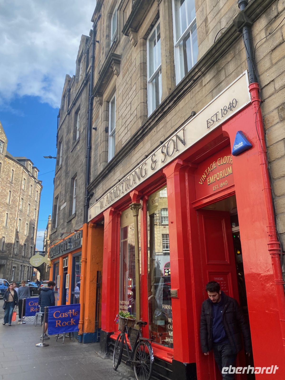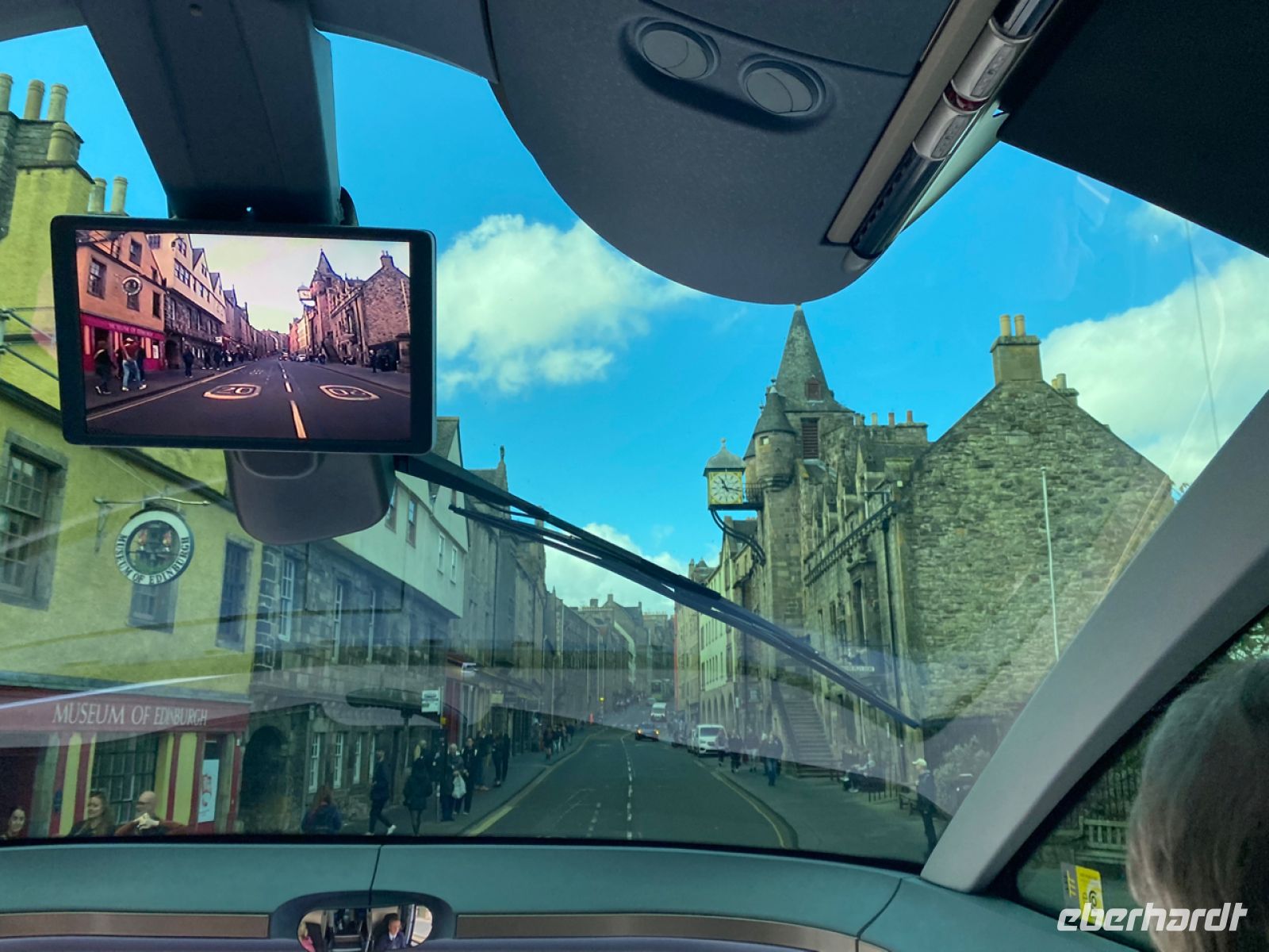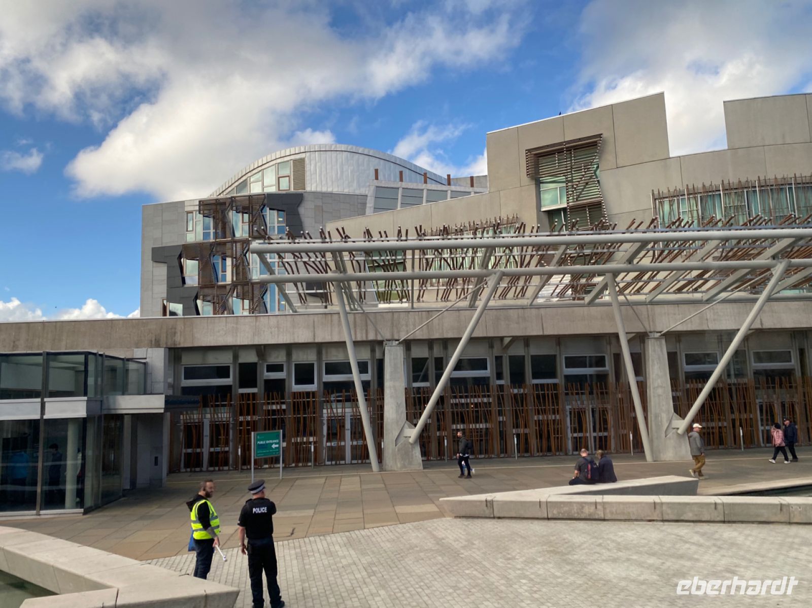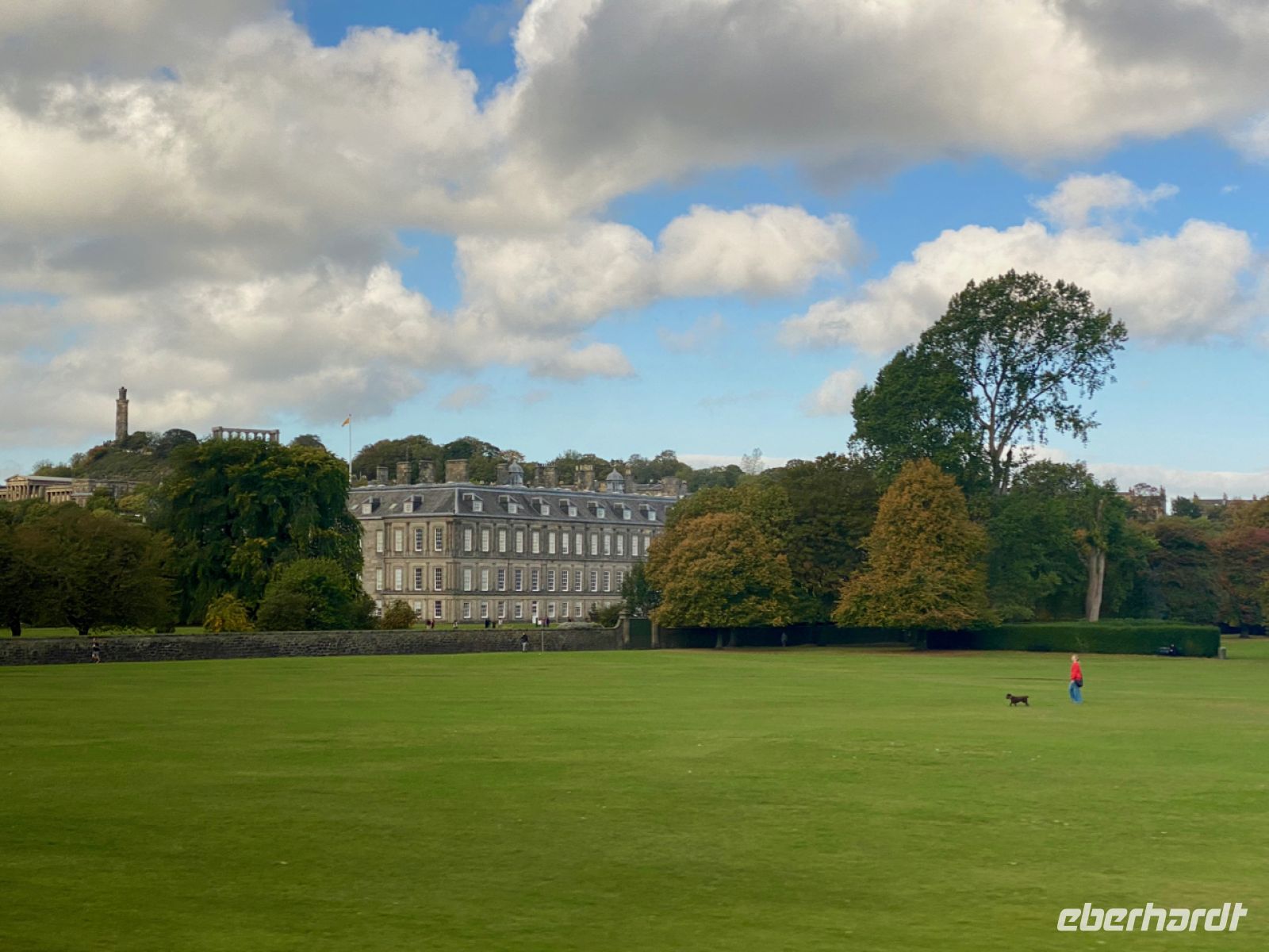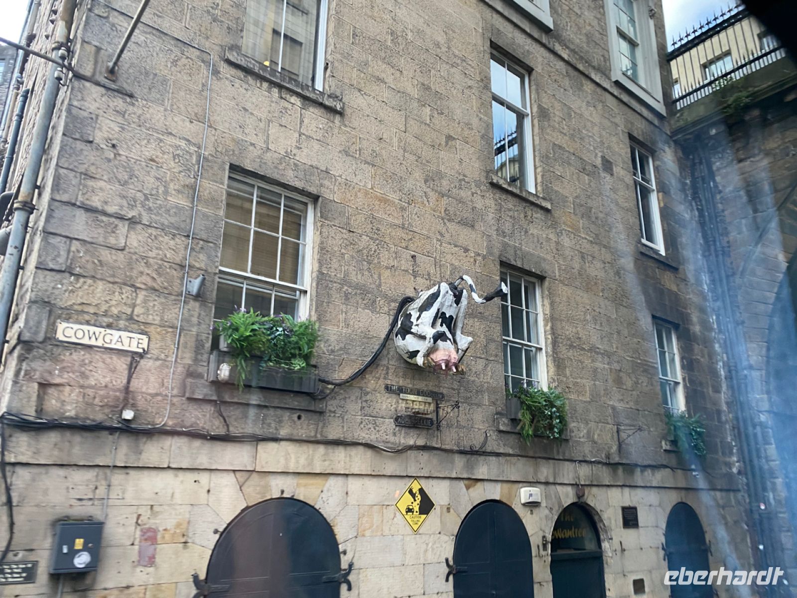 Wir halten am Fettes College, ein lustiger Name der auf einen großzügigen Stifter zurückgeht, den man „Fetz“ ausspricht, auch ganz komisch. James Bond soll hier zur Schule gegangen sein, wird berichtet. Noch mehr Bildung können wir am nächsten Halt einatmen, zusammen mit Blütenduft, denn wir machen eine Pause am Königlichen Botanischen Garten bevor wir in den Süden der Stadt weiterfahren. Hier fühlt man sich am Fuße alter Vulkane wieder in die Berge versetzt. Hier sehen wir Schloss Holyrood und das vor zwanzig Jahren neu errichtete Parlament von Schottland bevor wir, wie am Rücken von Nessie entlang, die Royal Mile aufwärts fahren bis wir die Fußgängerzone am oberen Ende erreichen.