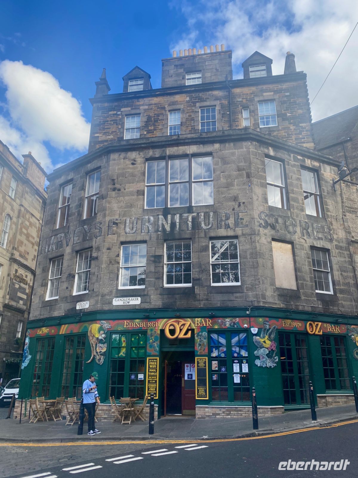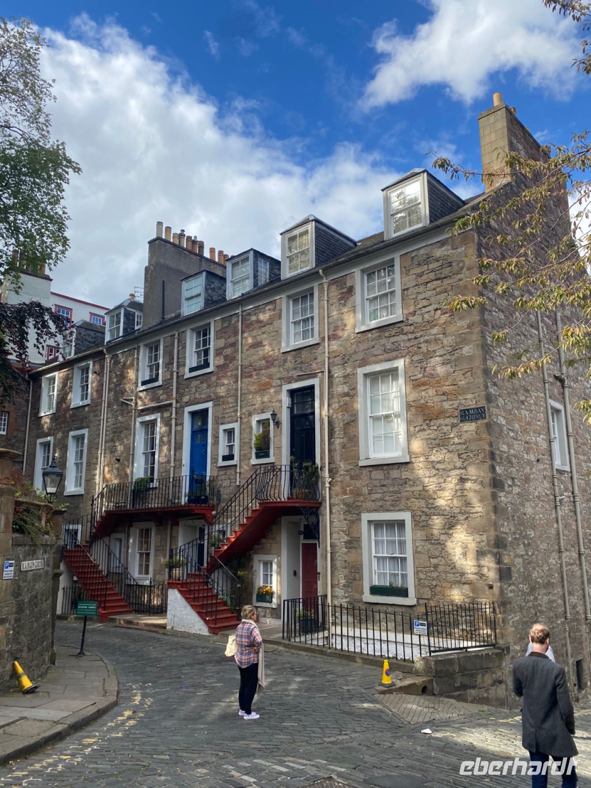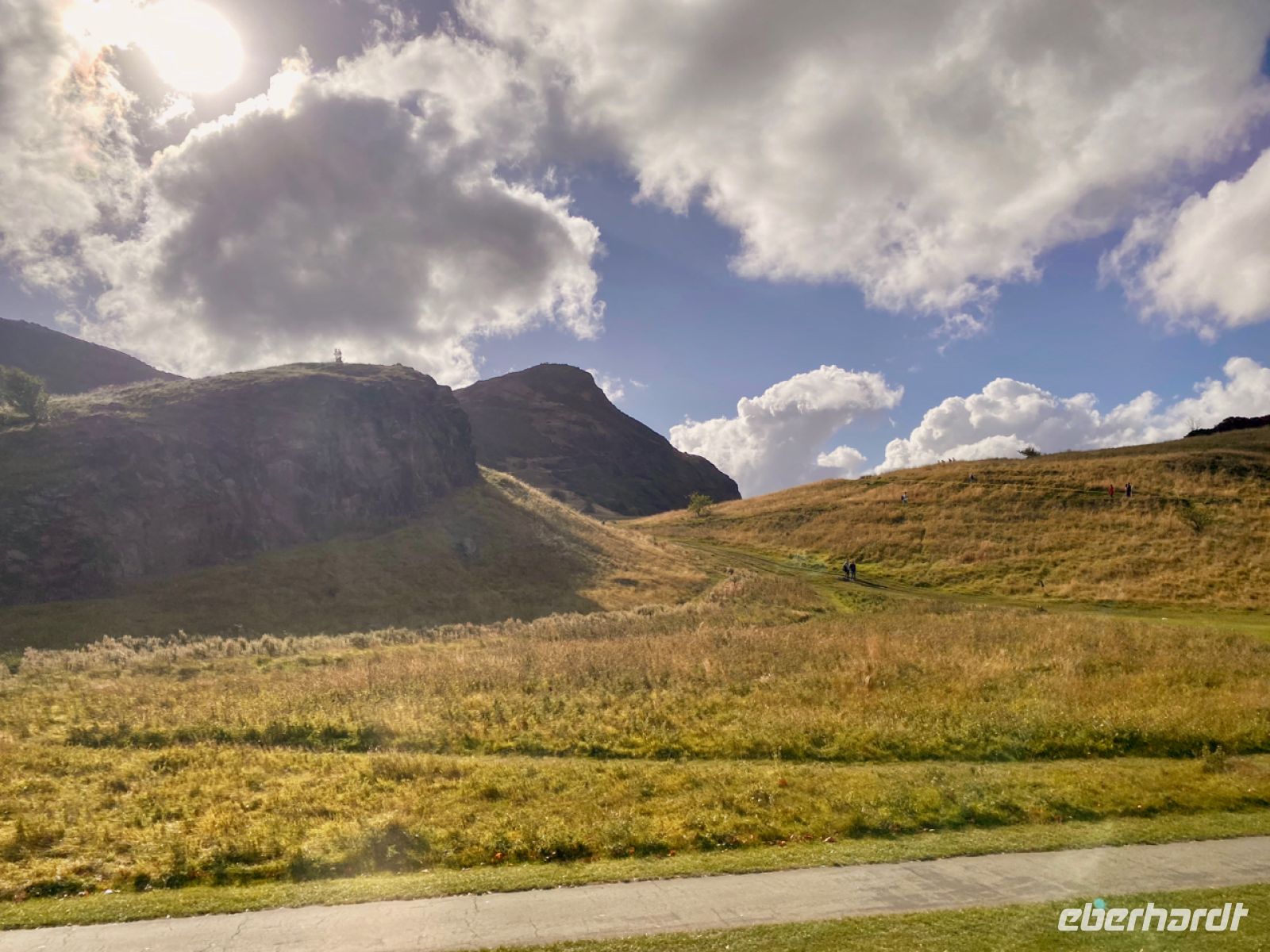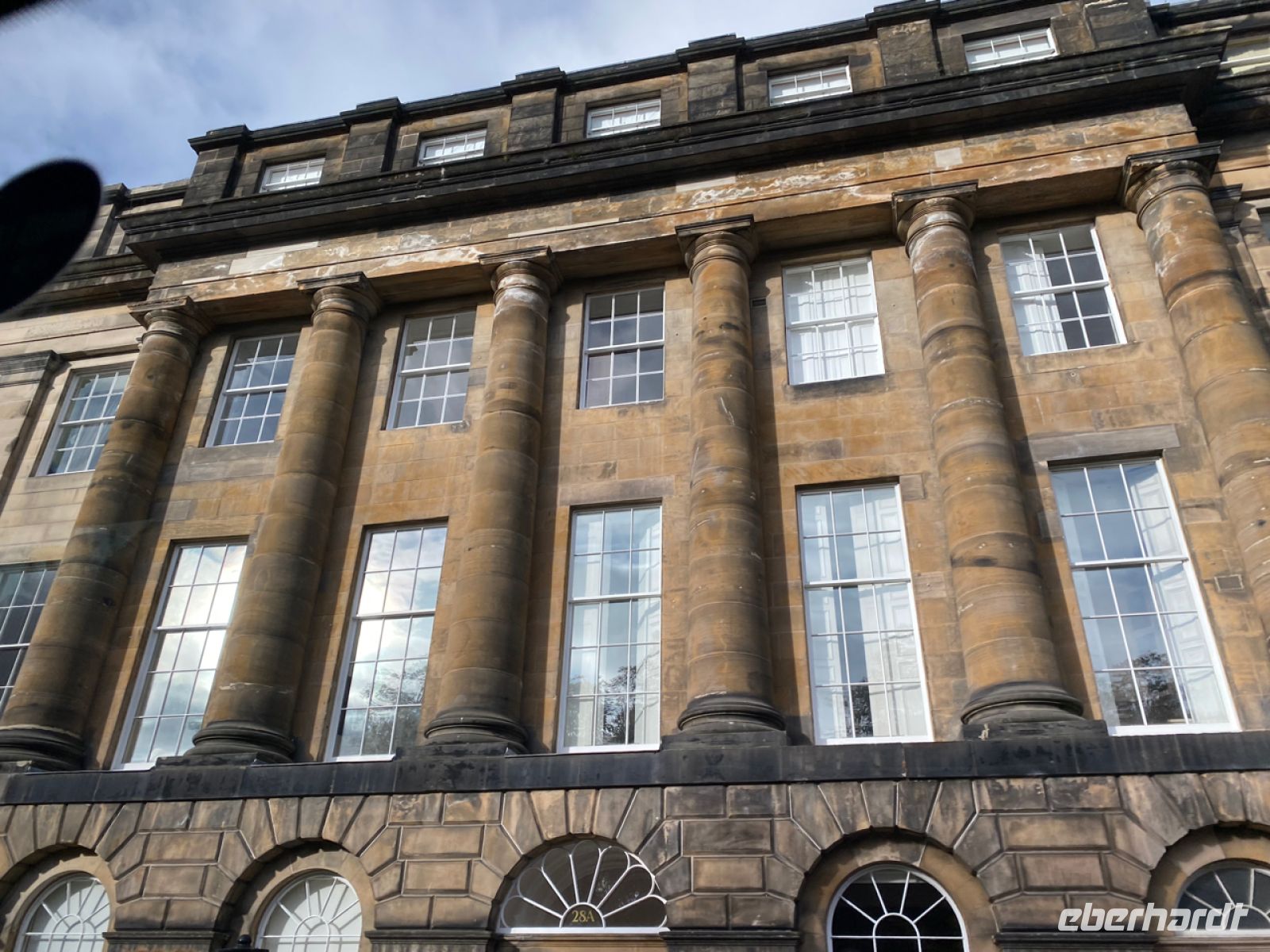 Wir halten am Fettes College, ein lustiger Name der auf einen großzügigen Stifter zurückgeht, den man „Fetz“ ausspricht, auch ganz komisch. James Bond soll hier zur Schule gegangen sein, wird berichtet. Noch mehr Bildung können wir am nächsten Halt einatmen, zusammen mit Blütenduft, denn wir machen eine Pause am Königlichen Botanischen Garten bevor wir in den Süden der Stadt weiterfahren. Hier fühlt man sich am Fuße alter Vulkane wieder in die Berge versetzt. Hier sehen wir Schloss Holyrood und das vor zwanzig Jahren neu errichtete Parlament von Schottland bevor wir, wie am Rücken von Nessie entlang, die Royal Mile aufwärts fahren bis wir die Fußgängerzone am oberen Ende erreichen.