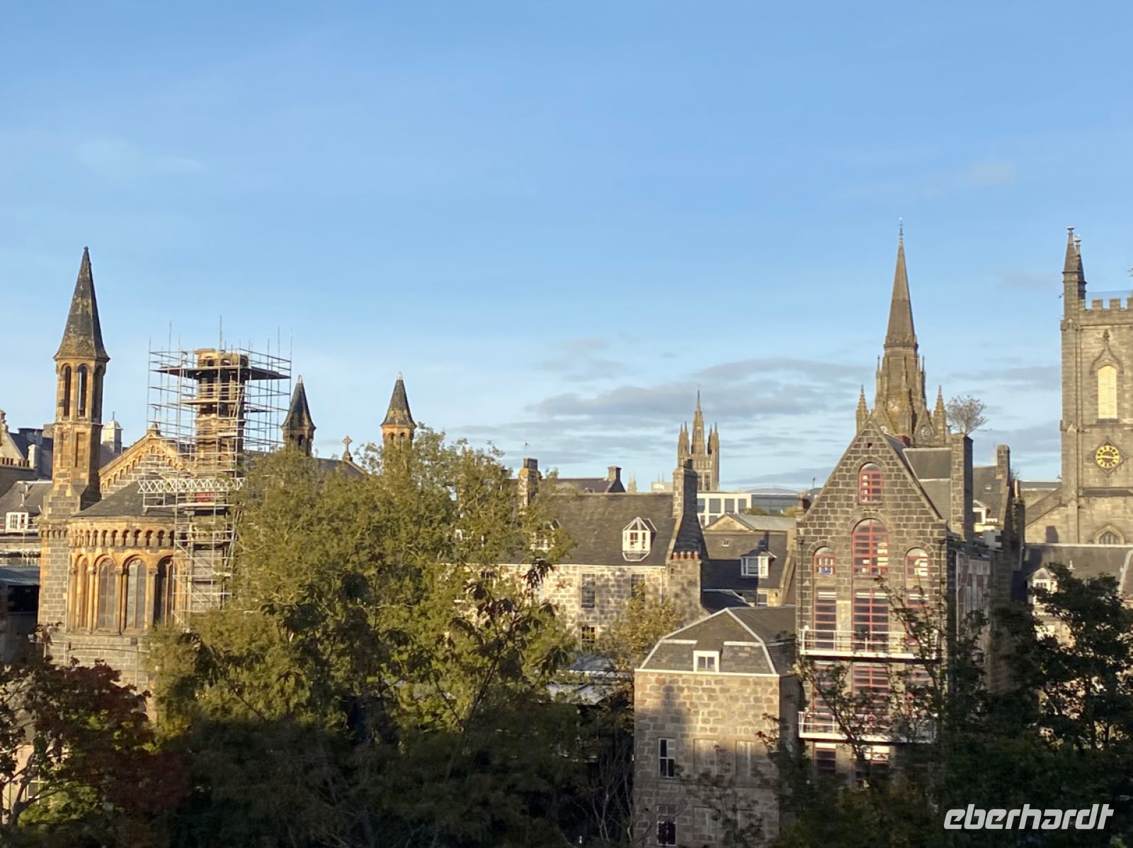 Seit dem 15. Jahrhundert ist Schottlands drittgrößte Stadt ein bedeutender Universitätsstandort. Unsere Besichtigung beginnt passenderweise auch an malerischen King’s College. Hier treffen wir Isabel, unsere Stadtführerin. Mit ihr erkunden wir die alte Universität, das malerische Fischerdörfchen Footdee und das Zentrum von Aberdeen zu Fuß, zwischendurch gibt es auch vom Bus so einiges zu sehen, und zu einer sehr angenehmen Zeit erreichen wir unser Hotel für heute, es wird wieder urbaner, wir sind hier nicht mehr in den Highlands und können uns hier langsam an das Stadtleben zurück gewöhnen :-)