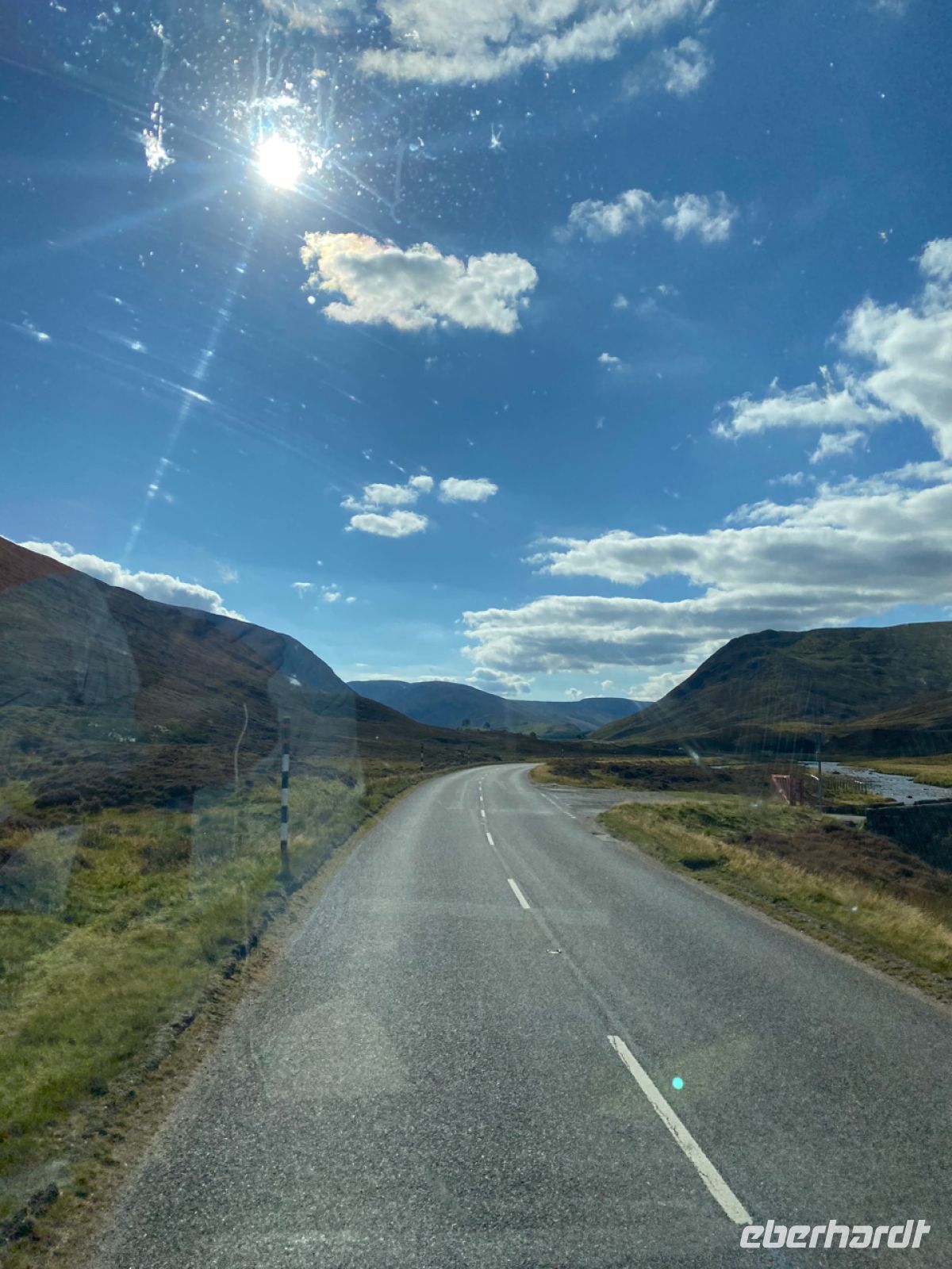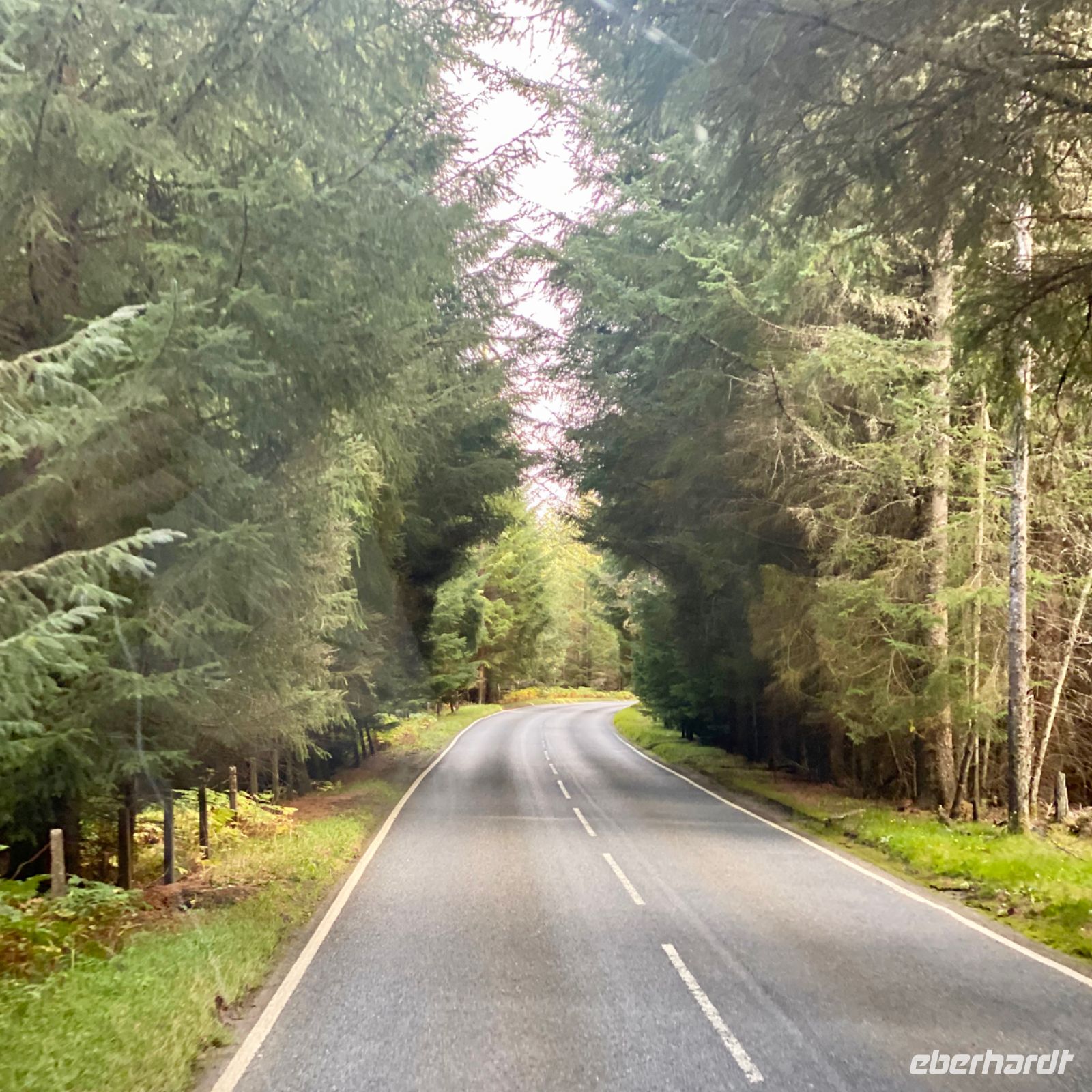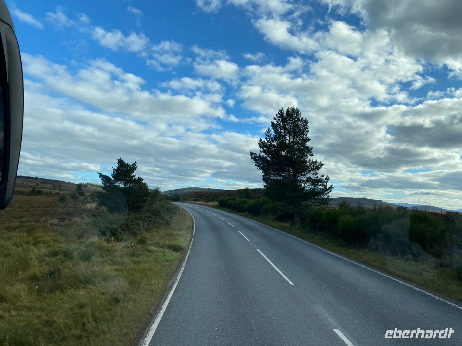 Gut gelaunt und verantwortungsvoll immer noch nüchtern geht unsere Reise weiter, auf jeden Fall ist das ein guter Moment, darauf hinzuweisen, wie angenehm es ist, sich von einem Profi durch das schöne Schottland fahren zu lassen, und das auch noch auf der linken Straßenseite, was auch einmal erwähnt werden muss.