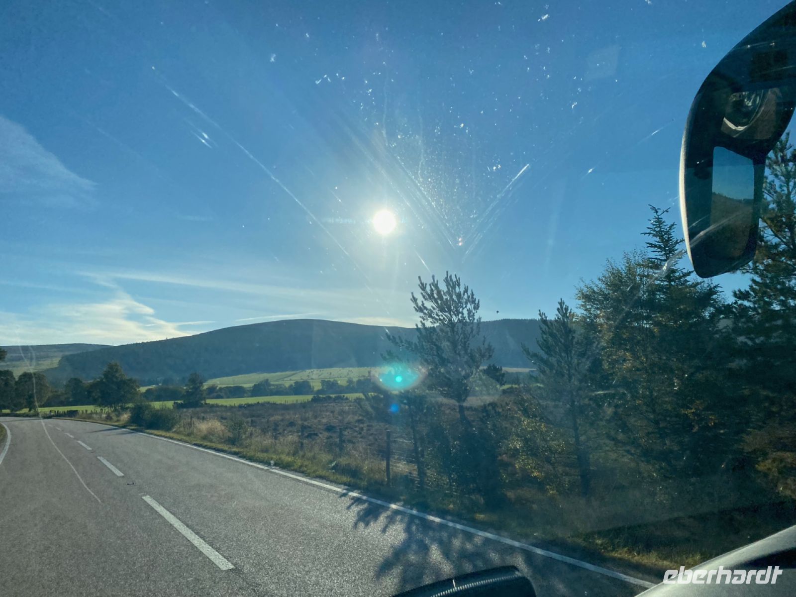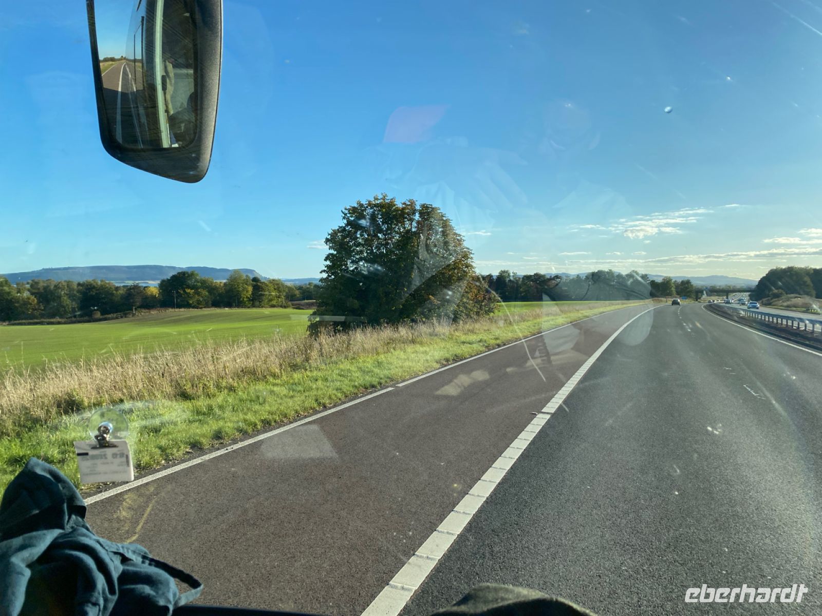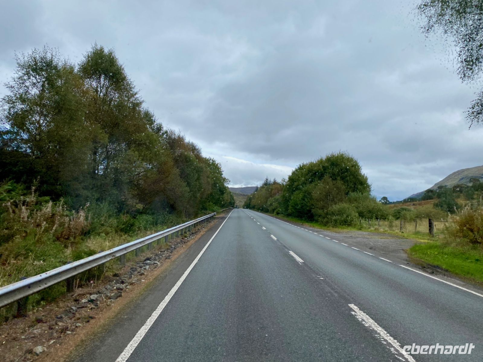 Gut gelaunt und verantwortungsvoll immer noch nüchtern geht unsere Reise weiter, auf jeden Fall ist das ein guter Moment, darauf hinzuweisen, wie angenehm es ist, sich von einem Profi durch das schöne Schottland fahren zu lassen, und das auch noch auf der linken Straßenseite, was auch einmal erwähnt werden muss.