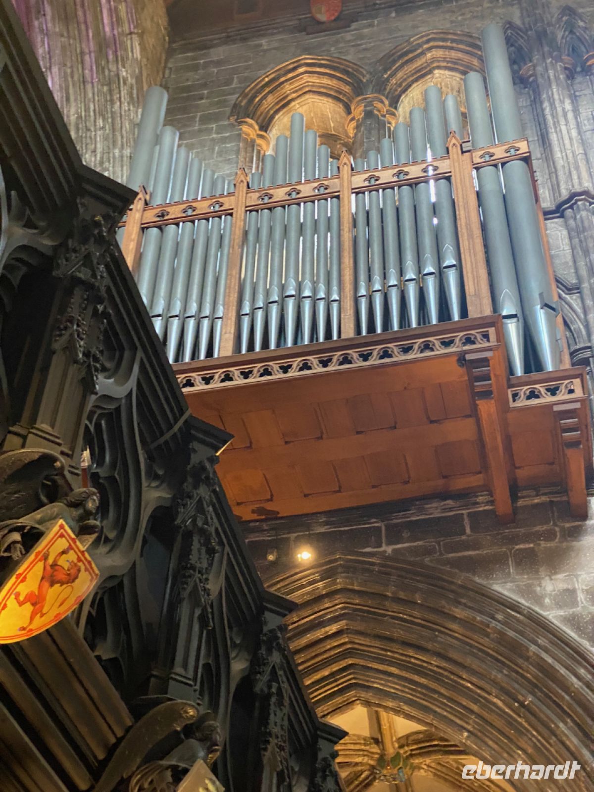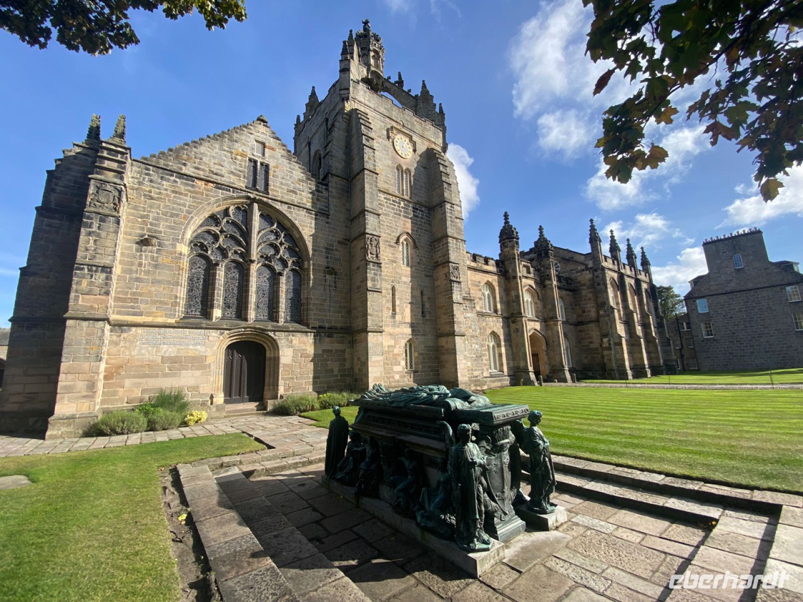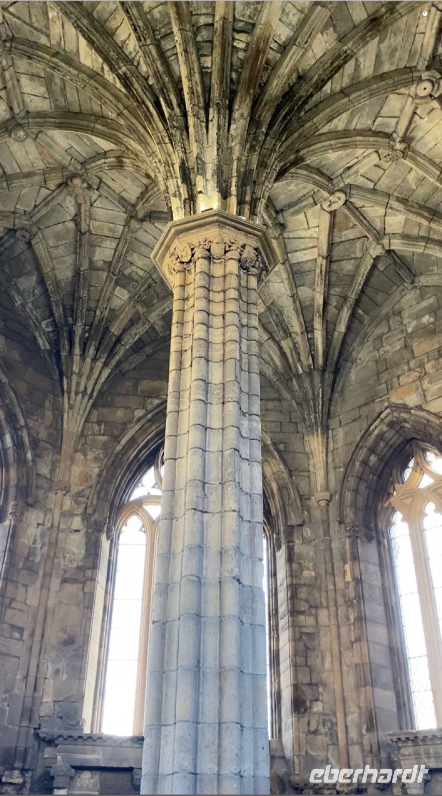 Das Sommerwetter verabschiedet sich gegen Ende unserer Reise allmählich, wie nett, dass es uns dennoch bis zum Ende des Programms treu geblieben ist! Bei immer fotogenerem Wolkenhimmel fahren wir nun nicht zu einem himmlisch passenden Abschluss- und Höhepunkt unserer Reise, zur Rosslyn-Kapelle im Ort Roslin. Sie war nie zur Ruine verfallen aber auch für lange Zeit unter einem Gerüst versteckt. Mit sehr viel Aufwand wurde sie wieder in ihren heutigen Zustand versetzt. Was Menschen aus Stein schaffen können ist faszinierend, die göttliche Inspiration dahinter ist in jedem Detail zu erspüren.