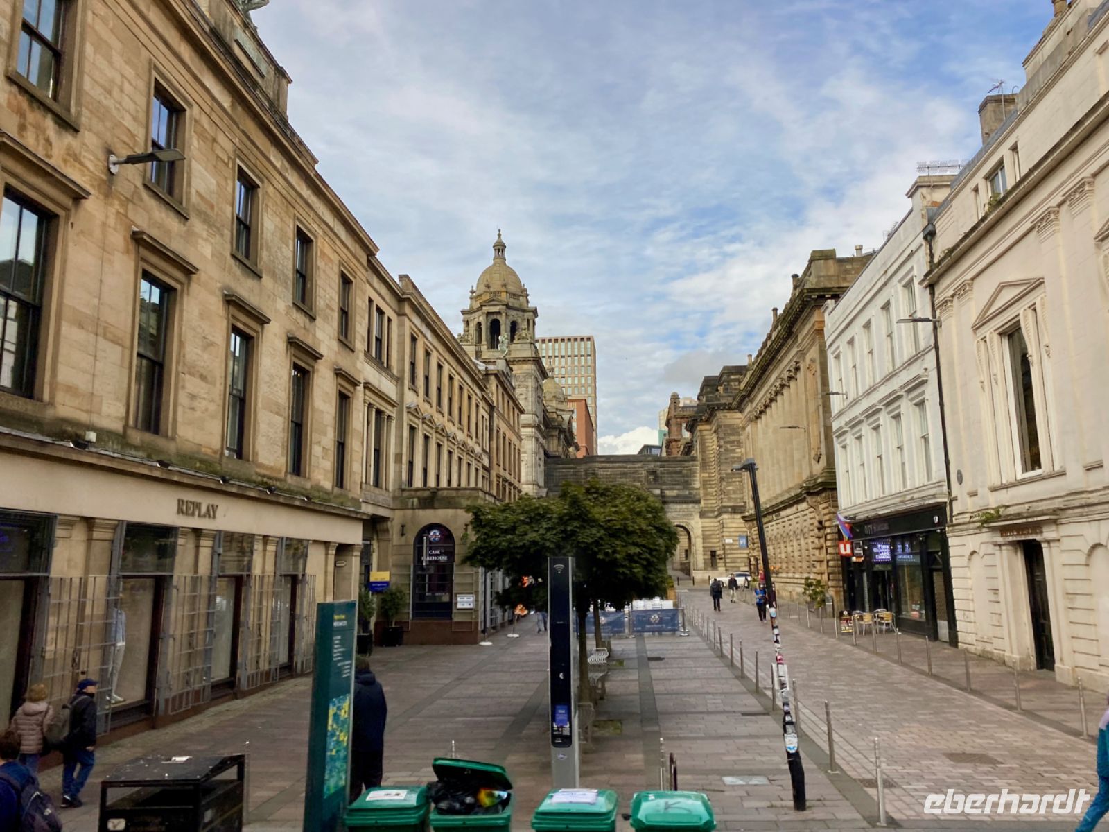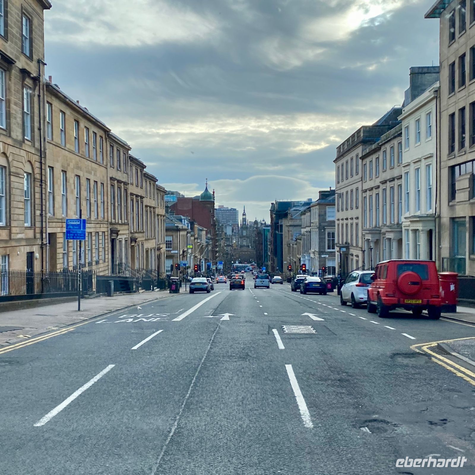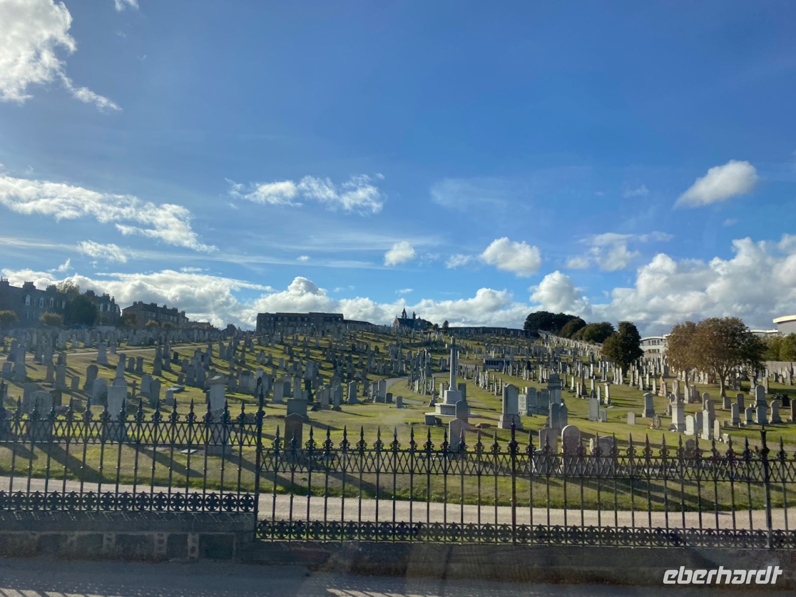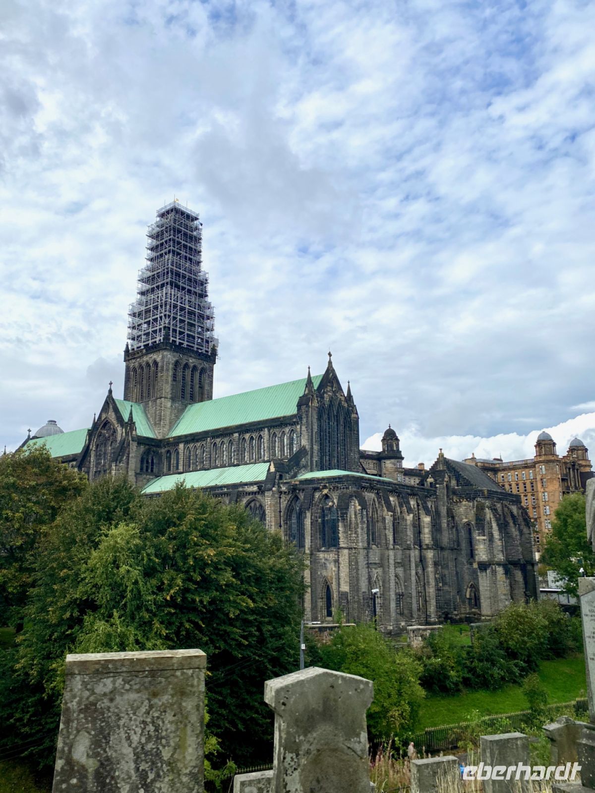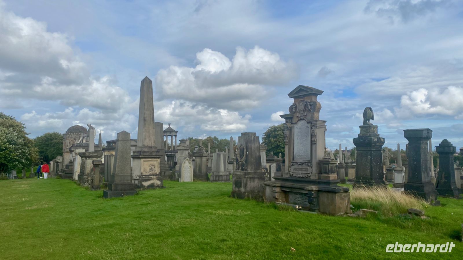 Vom viktorianischen Friedhofshügel hinter der Kathedrale bekommen wir schnell einen sehr guten ersten Überblick über diese, tatsächlich ein bisschen verzaubert wirkende, Metropole mit ihren vielen prunkvollen alten Bauten aus dunklem Stein. Eine ausführliche Rundfahrt führt uns dann zu allen wichtigen Sehenswürdigkeiten aus Vergangenheit und Gegenwart der Stadt am River Clyde.