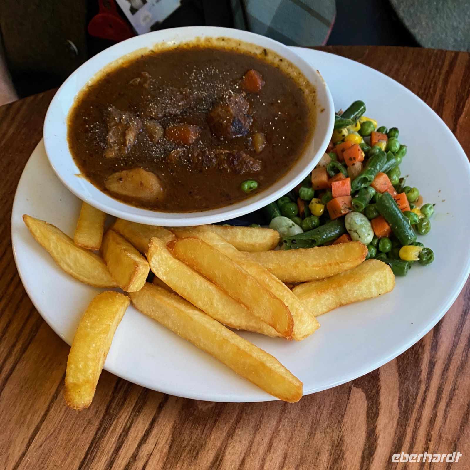 Abends treffen wir uns dann wieder im Hotel, heute spazieren wir wieder, zu einem anderen schottischen Lokal, es gibt unter anderem schottische Steak Frites und dazu passende gute Getränke!