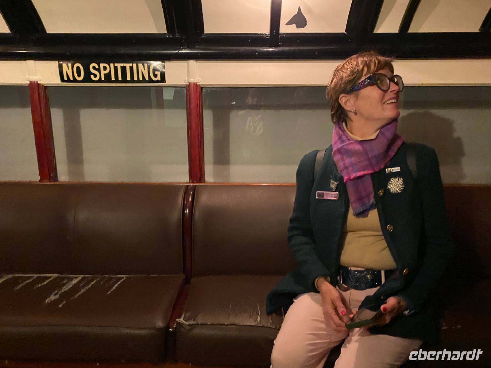 Ein Besuch im Pub wäre jetzt noch eine Idee zum Abschluss des Tages, aber es ruft einen guten Teil der Gruppe auch die Lust auf ein besonderes Erlebnis: eine Fahrt mit der Subway, der bereits erwähnten U-Bahn, die in nur 22 Minuten auf einer Ringstrecke die ganze Stadt umrundet. Das lassen wir uns nicht entgehen und diskutieren noch die theoretische Möglichkeit an jeder der 15 Stationen in einem Pub ein Bier zu trinken, einer der legendären Zeitvertreibe hier in der Stadt. Wir fahren einfach so die Runde und kehren dann doch lieber nüchtern und aufrechten Ganges in unser Hotel zurück, wo wir nun bald zufrieden tief und fest schlafen.