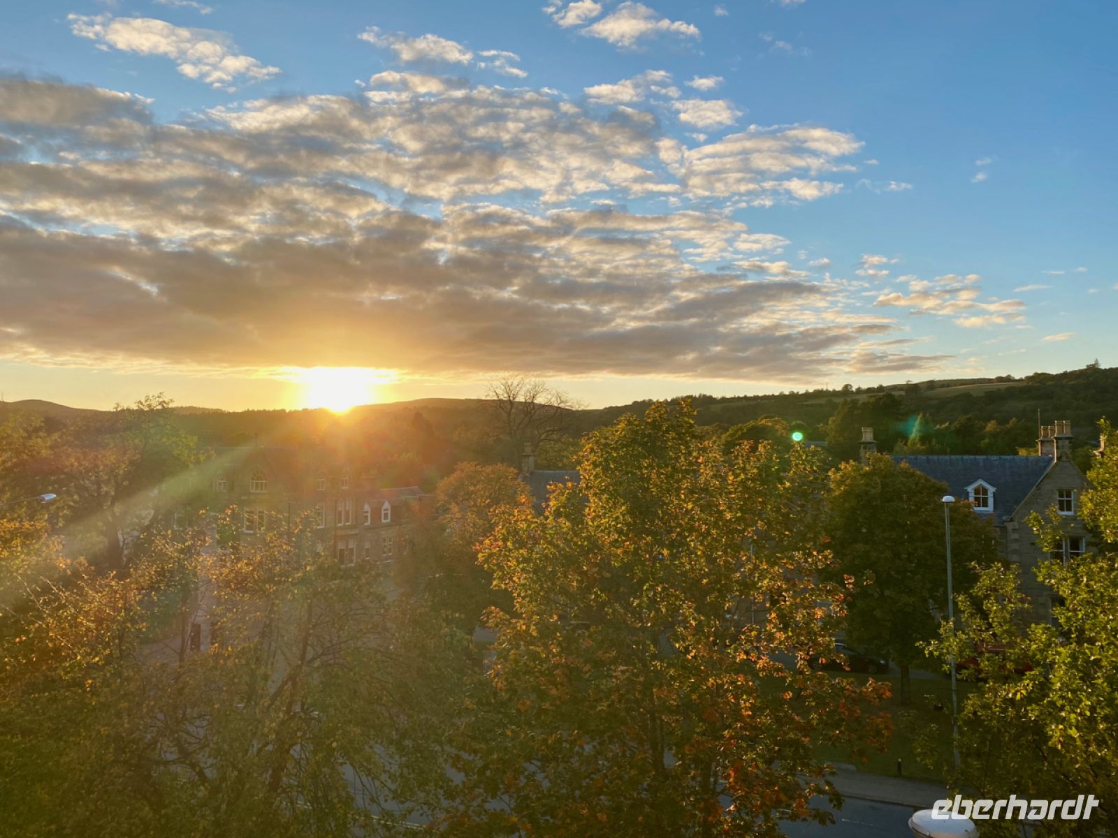 Auf der Rückfahrt bleibt uns das wunderbare Wetter weiterhin treu, in Grantown lässt es sich so auch noch, wenn man will, angenehm spazieren, bevor wir ein weiteres Mal in unserem eleganten Speisesaal zum Abendessen kulinarisch verwöhnt werden.