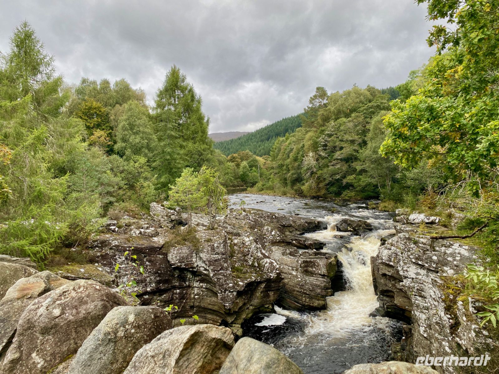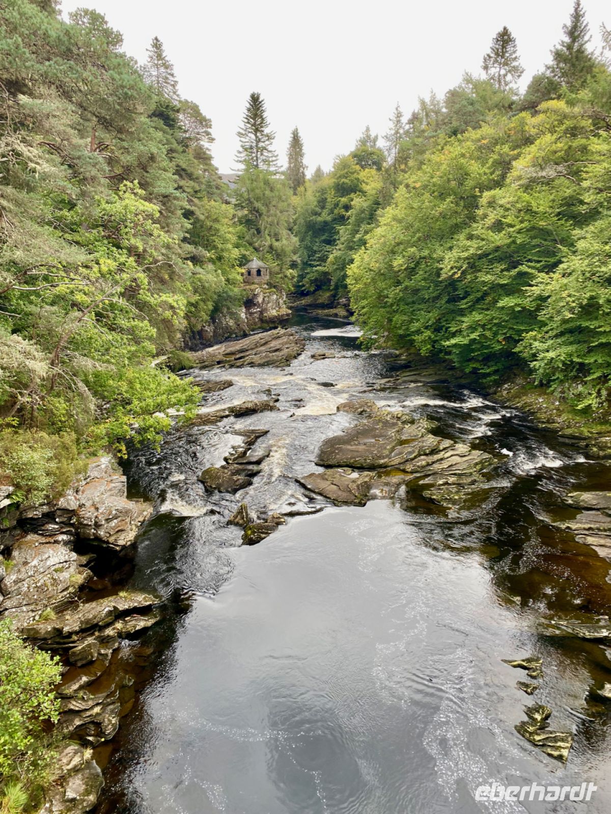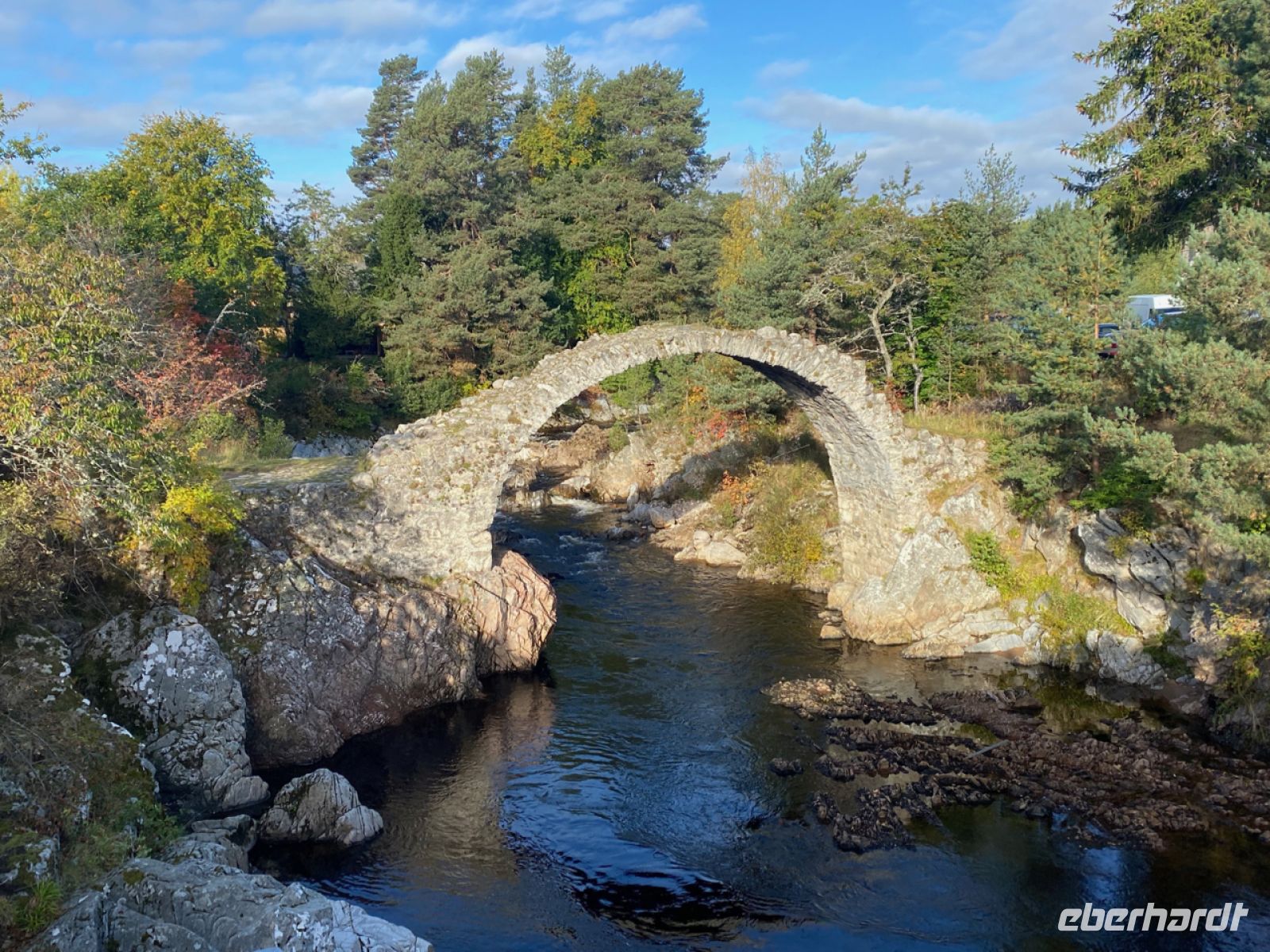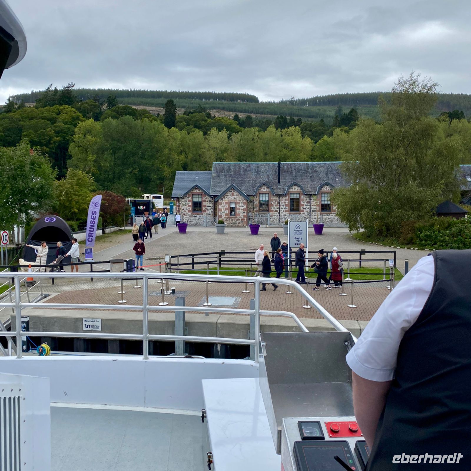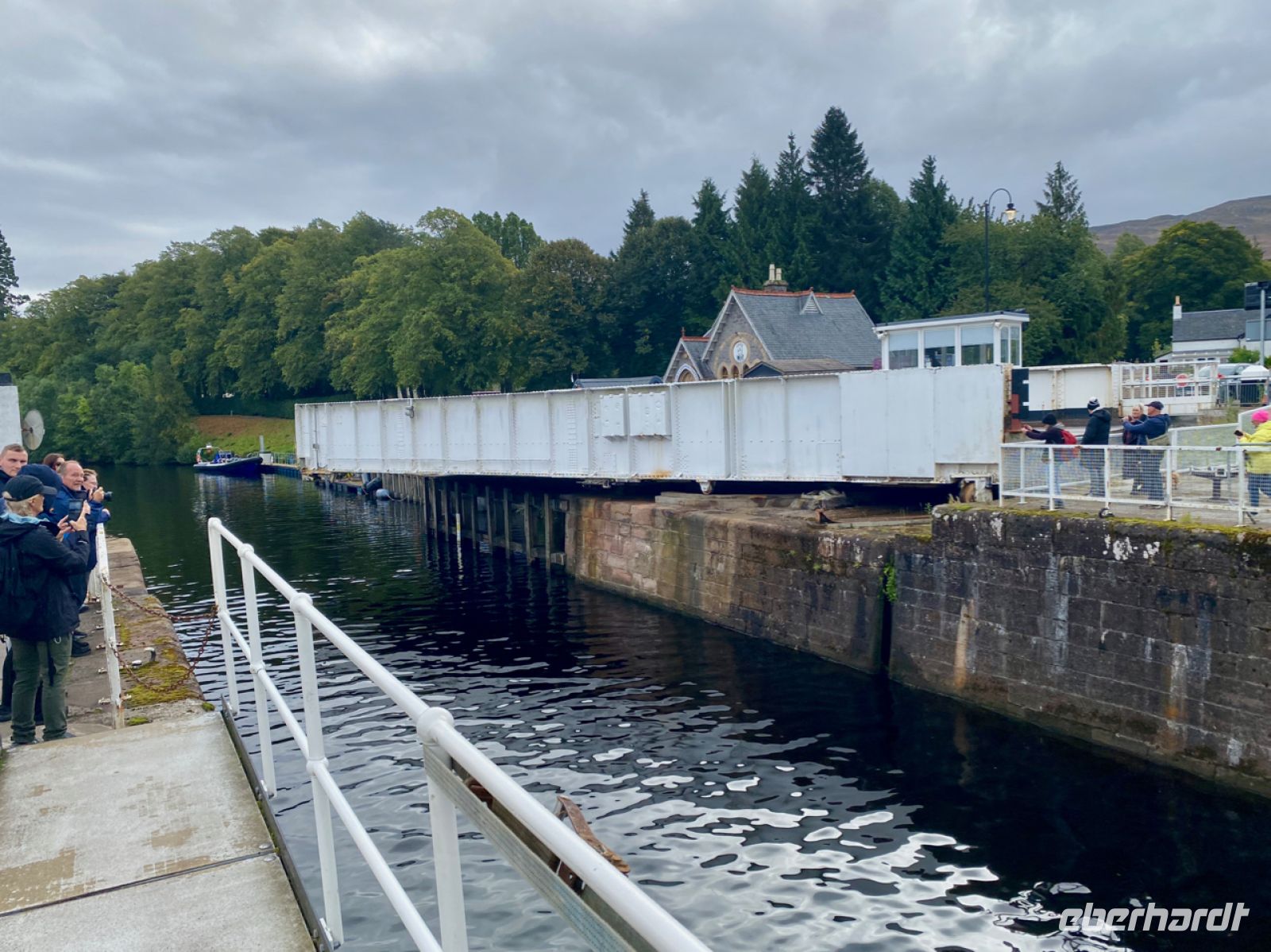 Wir fahren nun durch den Great Glen, den großen Einschnitt durch den Norden Schottlands, eine Reihe von Seen entlang. Hier treffen wir auch wieder bei Fort Augustus auf den Caledonian Canal, den wir bereits bei Neptune’s Staircase sahen. Hier können wir einem Schiff bei der Schleusung zusehen, bevor wir dem Verlauf des Kanals folgen. Errichtet wurde er übrigens von Thomas Telford, der Schottland auch durch unzählige Brücken erschloss – die in Invermoriston ist unser nächstes Ziel, bevor wir das legendäre Loch Ness erreichen.