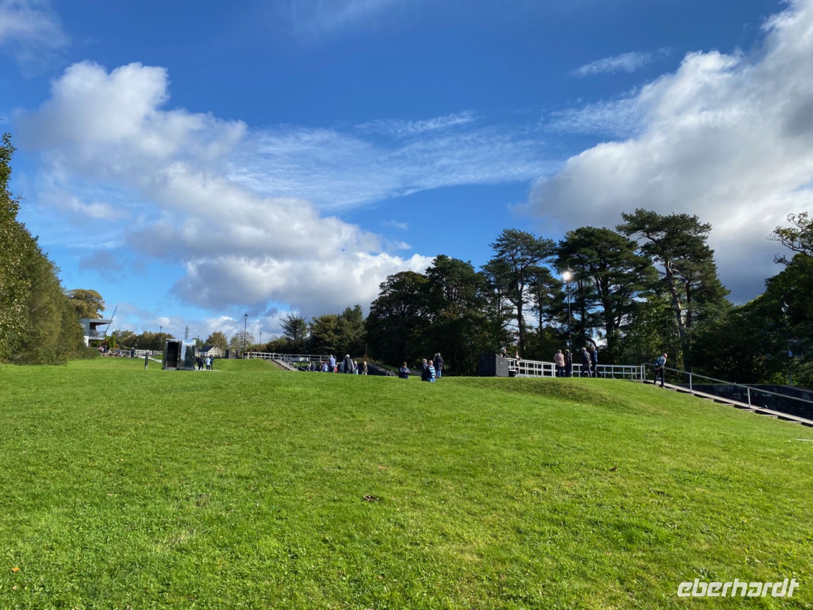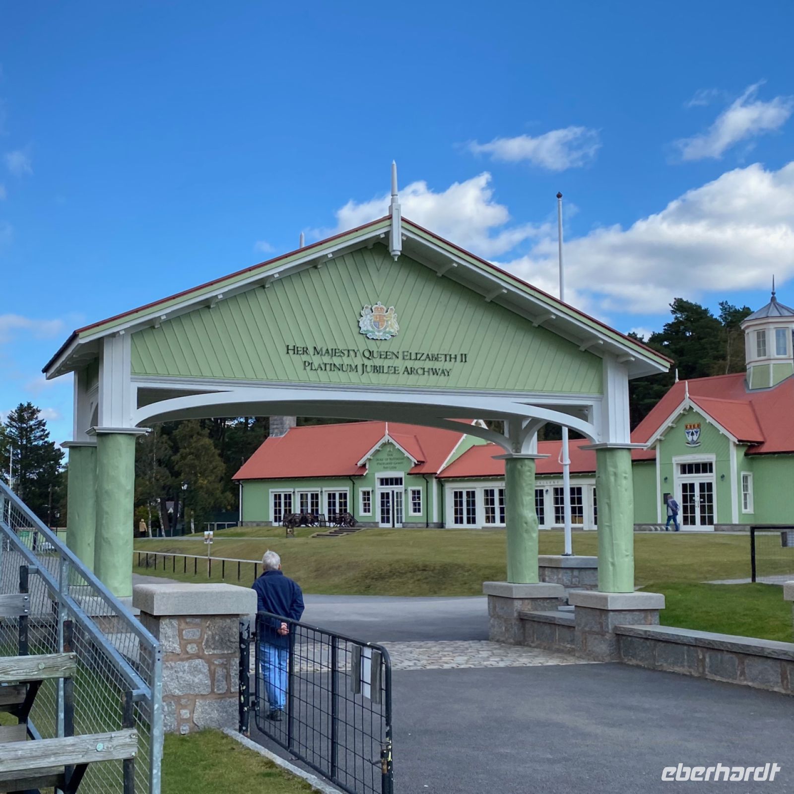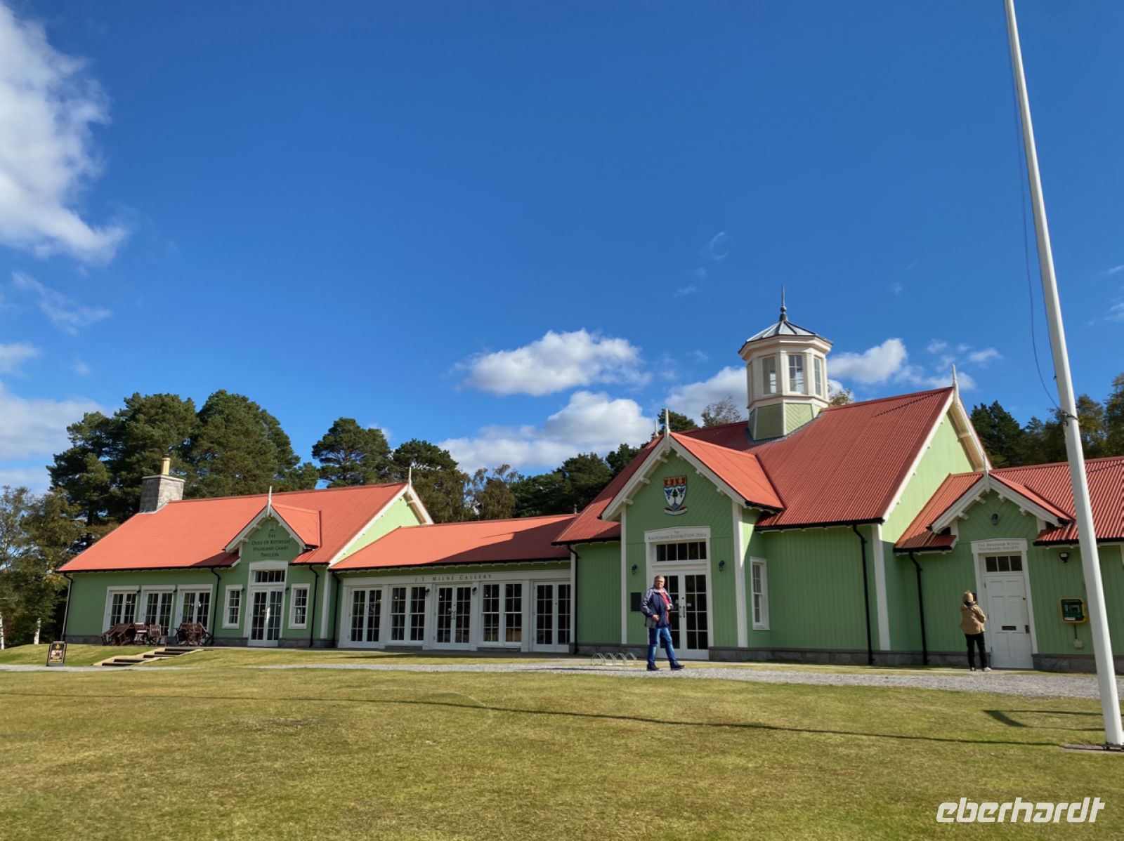 Wenige Wochen nach dem alljährlichen Event besuchen wir hier den Veranstaltungsort. In aller Ruhe können wir die königliche Tribüne sehen oder eine kleine Ausstellung zu den Spielen besuchen. Tee und Kuchen gibt es hier, wie überall in Schottland natürlich auch und darüber hinaus die vermutlich elegantesten öffentlichen Toiletten Schottlands.