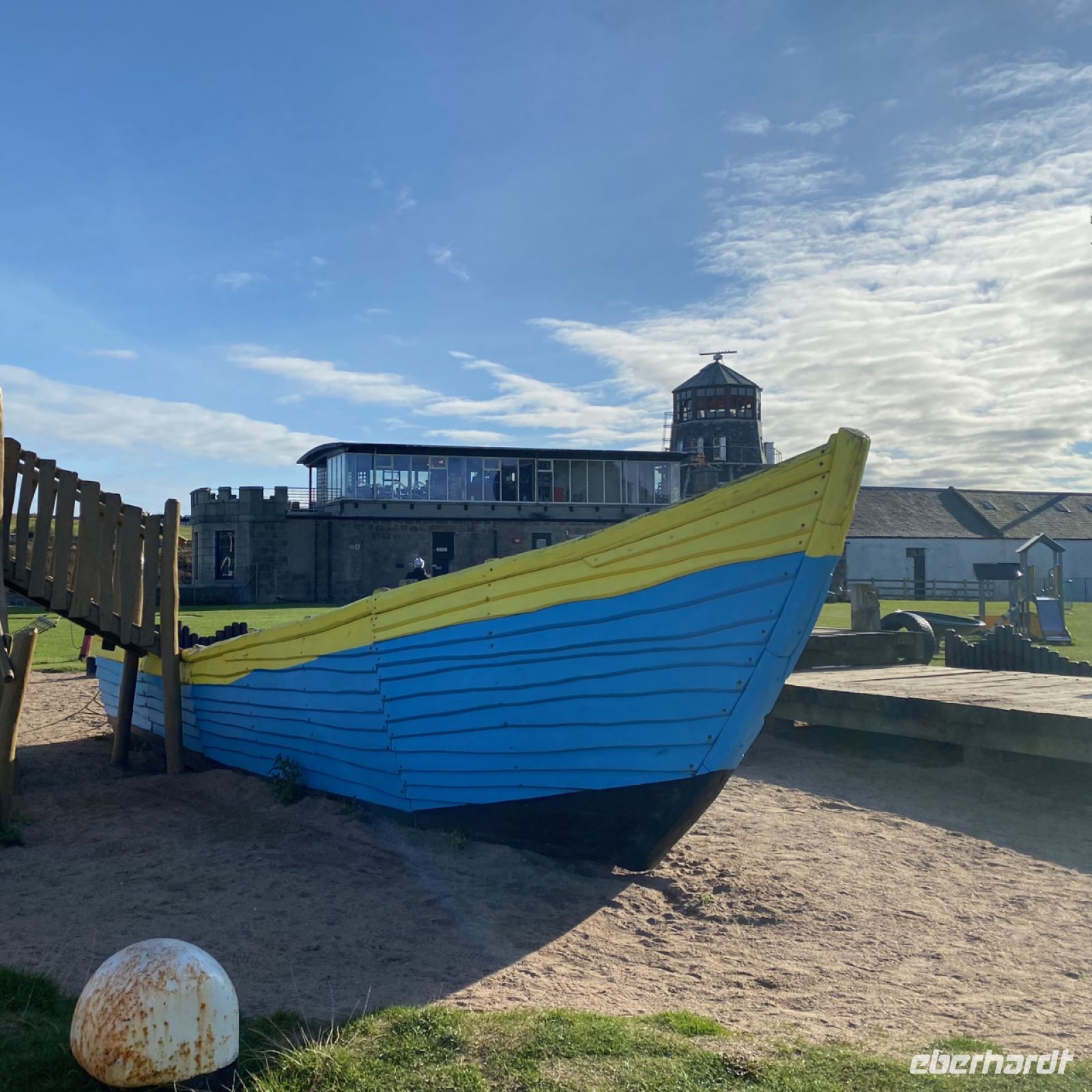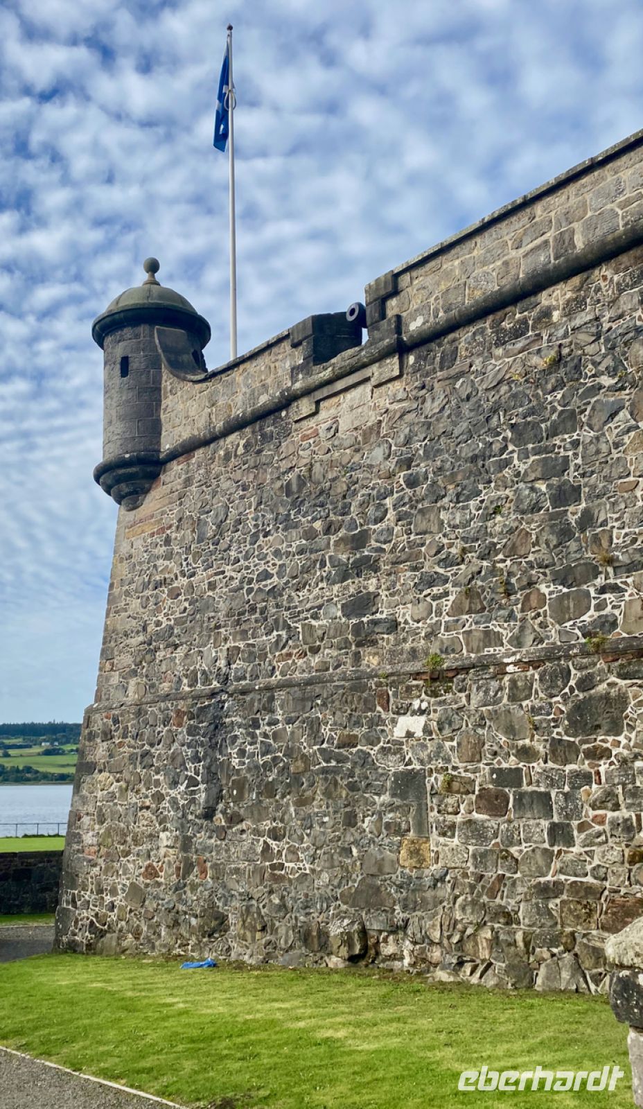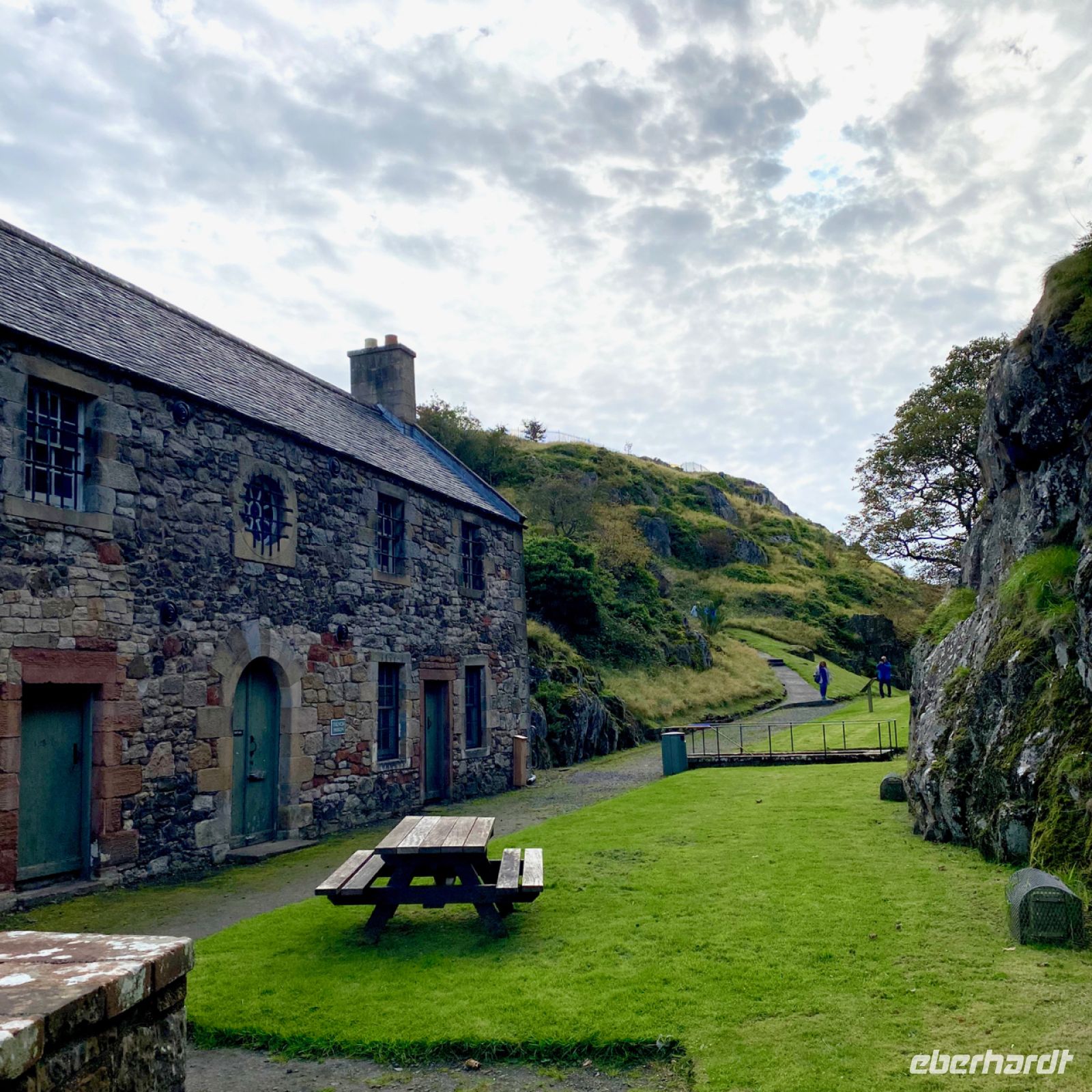 Hier soll vor eineinhalb Jahrtausenden der Zauberer Merlin gelebt haben. In späteren Jahrhunderten, das ist historisch belegt, plünderten hier die Wikinger. Wir treffen einen anscheinend sehr späten Nachfahren von ihnen und haben allerdings Glück, er ist sehr freundlich und berichtet uns, wie die Geschichte der Festung weiter verlief. Maria Stuart flüchtete von hier nach Frankreich, wird uns berichtet, und bis zum zweiten Weltkrieg waren hier noch Soldaten stationiert. Die sind nun nicht weit von hier immer noch sehr präsent, wenn auch in zeitgemäßeren Anlagen, die wir ganz in der Nähe sehen. Kein Wunder, hier ist Schottlands strategischer Zugang zum Atlantik.