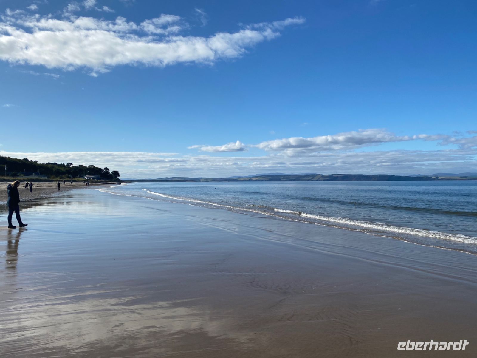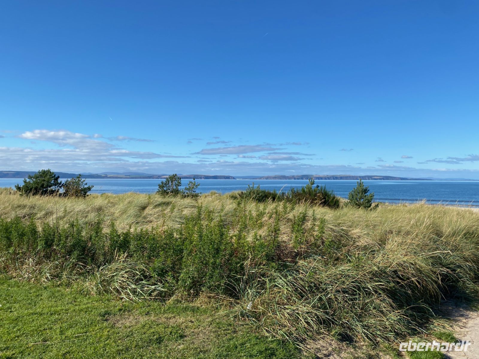 Eine kurze Fahrt weiter erreichen wir nun das Meer, an der Bucht namens Moray Firth. Hier liegt der unendlich wirkende Strand Nairn Beach. Im Sonnenschein spazieren wir am Wasser und in den Dünen herum und genießen den Spätsommer und können uns gut vorstellen, was hier zur Hochsaison los sein muss, auf jeden Fall wirkt hier alles sehr viel südlicher als wir uns gerade befinden.