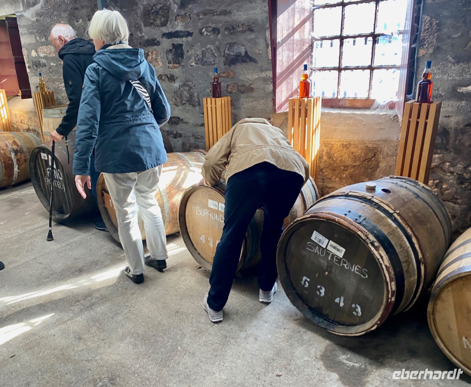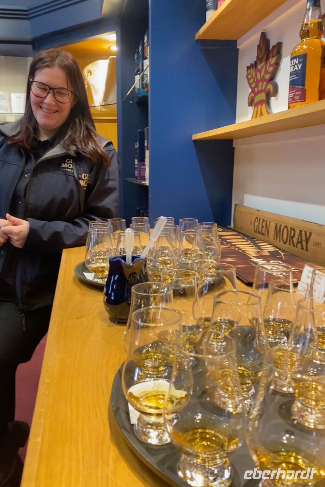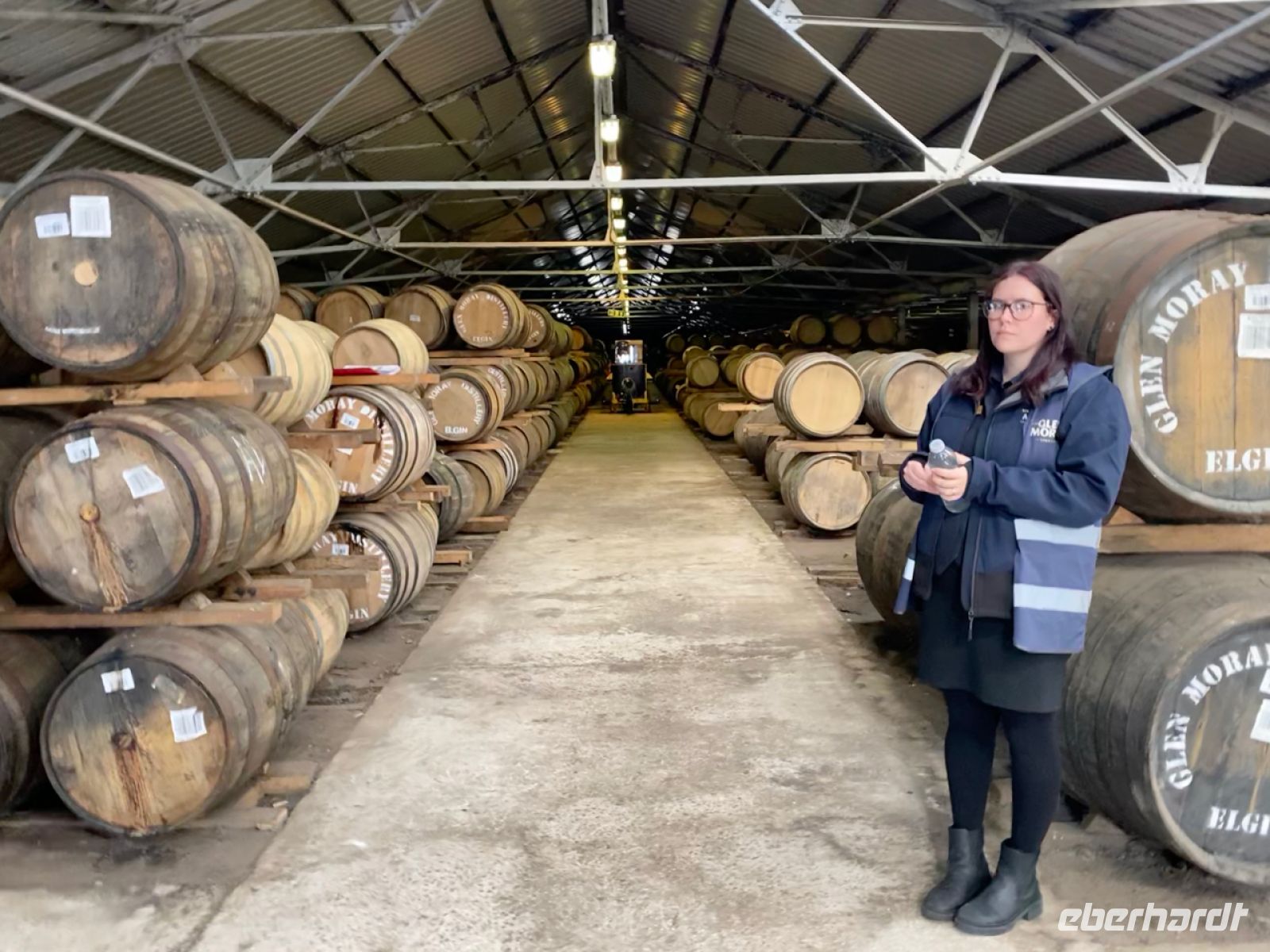 Vom Geistlichen zum Geistigen führt uns nun ein sehr kurzer Weg. In Elgin gibt es fünf Whisky-Brennereien bei nur 25.000 Einwohnern, die bedeutendste davon ist nun unser Ziel: Glen Moray. Hier dürfen wir bei einer herzlich geführten Besichtigung hinter die Kulissen der Produktion blicken – und zum Abschluss natürlich auch etwas aus der lokalen Tradition verkosten.