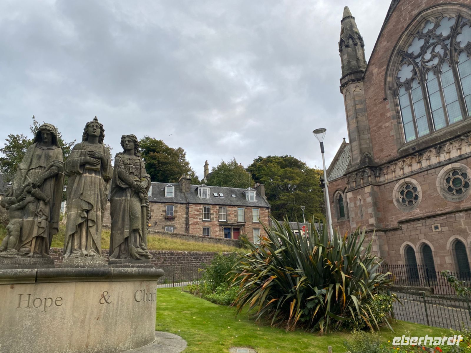 In der Romantik wurde hier viel konserviert, ein heute noch bestehender Park mit herrlichen Bäumen angelegt unter denen man direkt am Ufer des Tweeds verweilen kann und es ist verständlich, dass Sir Walter Scott sich wünschte hier begraben zu werden, was ihm natürlich nicht verwehrt wurde.