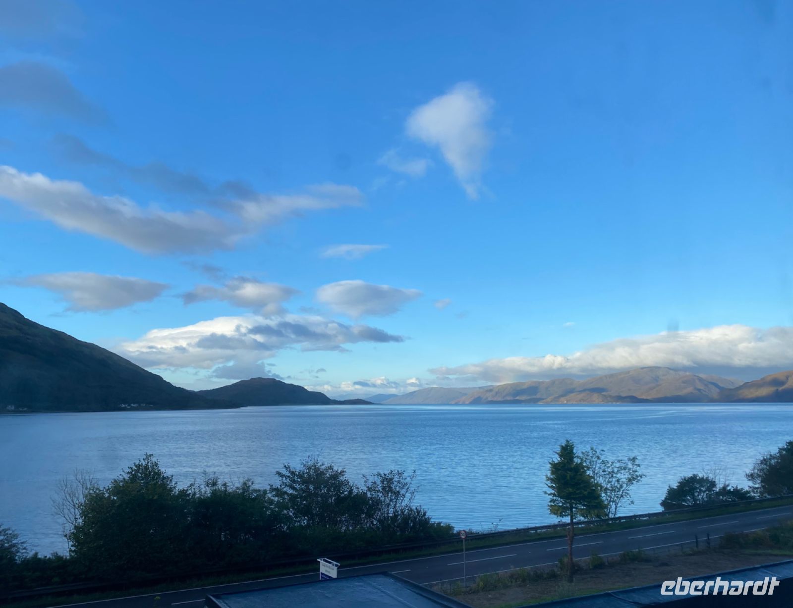 Loch Linnhe, übersetzt der schwarze See, heißt unser Ziel des Tages. Hier kehren wir ein für zwei Nächte in unser typisch britisches, gemütliches kleines Hotel und lassen uns mit einer Menüauswahl verwöhnen, bevor wir in bester Hochlandluft bald schon tief schlafen und von Seen und Bergen träumen.