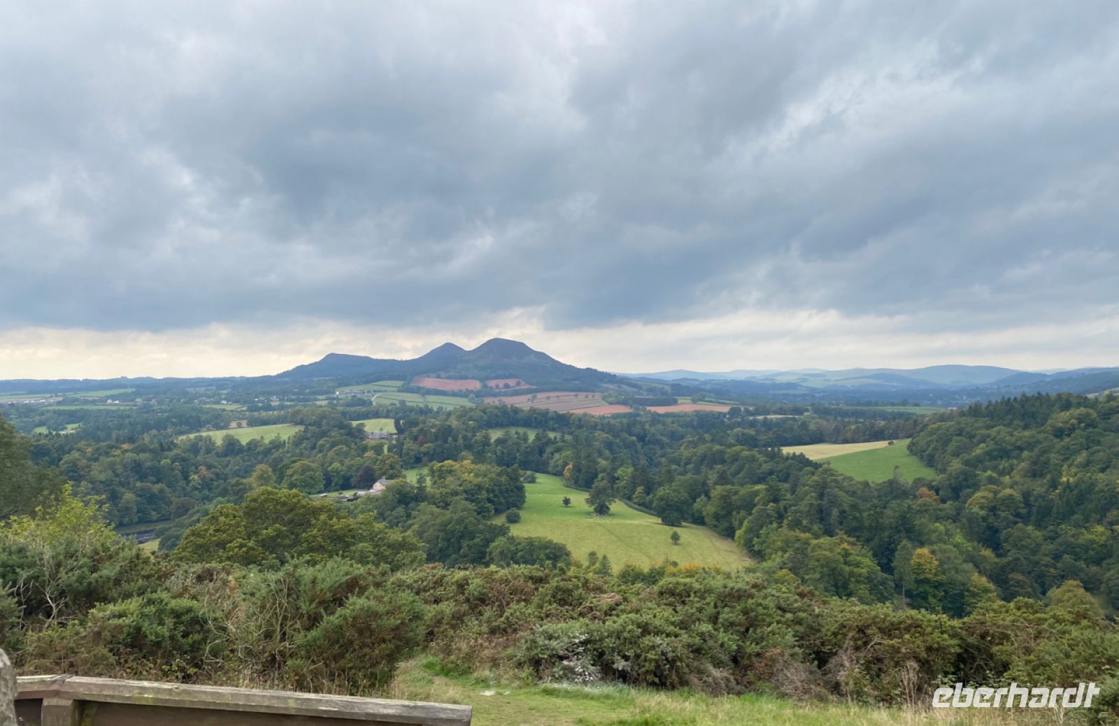 Weiter geht es nun in die Hügel der Umgebung, Sir Walter Scott auf den Spuren. Ihn kann man von der Bedeutung für die Briten durchaus mit unserem Goethe vergleichen. Beide starben sogar im gleichen Jahr auch wenn Scott jünger war. Beide korrespondierten auch fleißig und lebten in einer Zeit der romantischen Wiederbesinnung und des technischen Umbruchs. Wir lassen an einem an Scotts Liebling-Aussichtsplatz die Landschaft auf uns wirken, so wie er sie einst bewunderte bevor wir die Ruinen der einst bedeutenden Dryburgh Abbey besuchen.