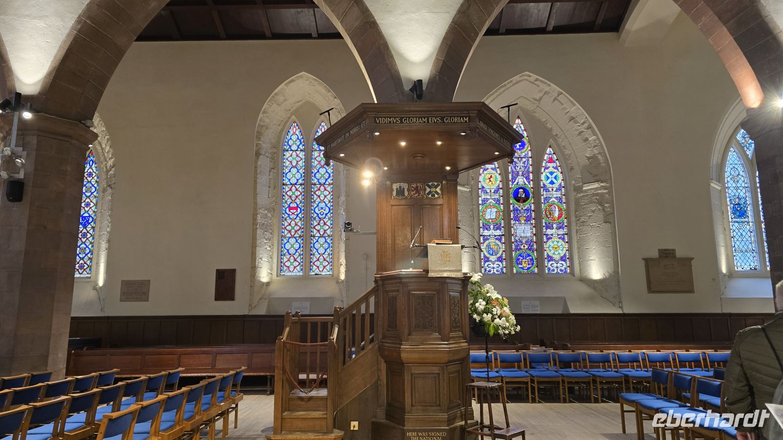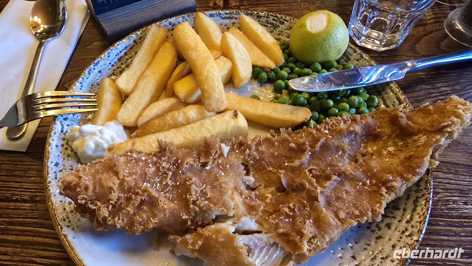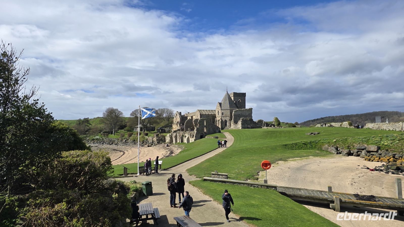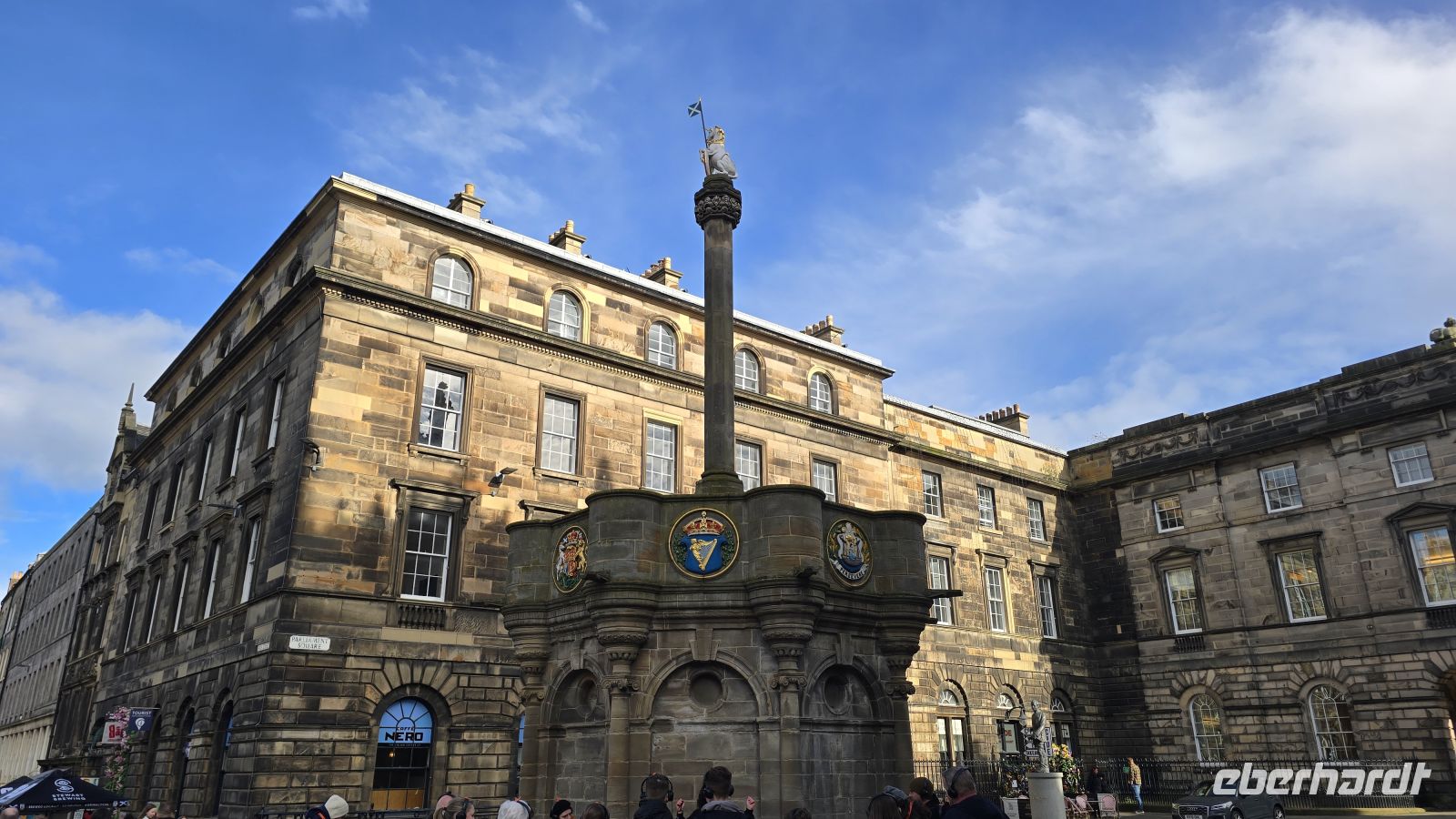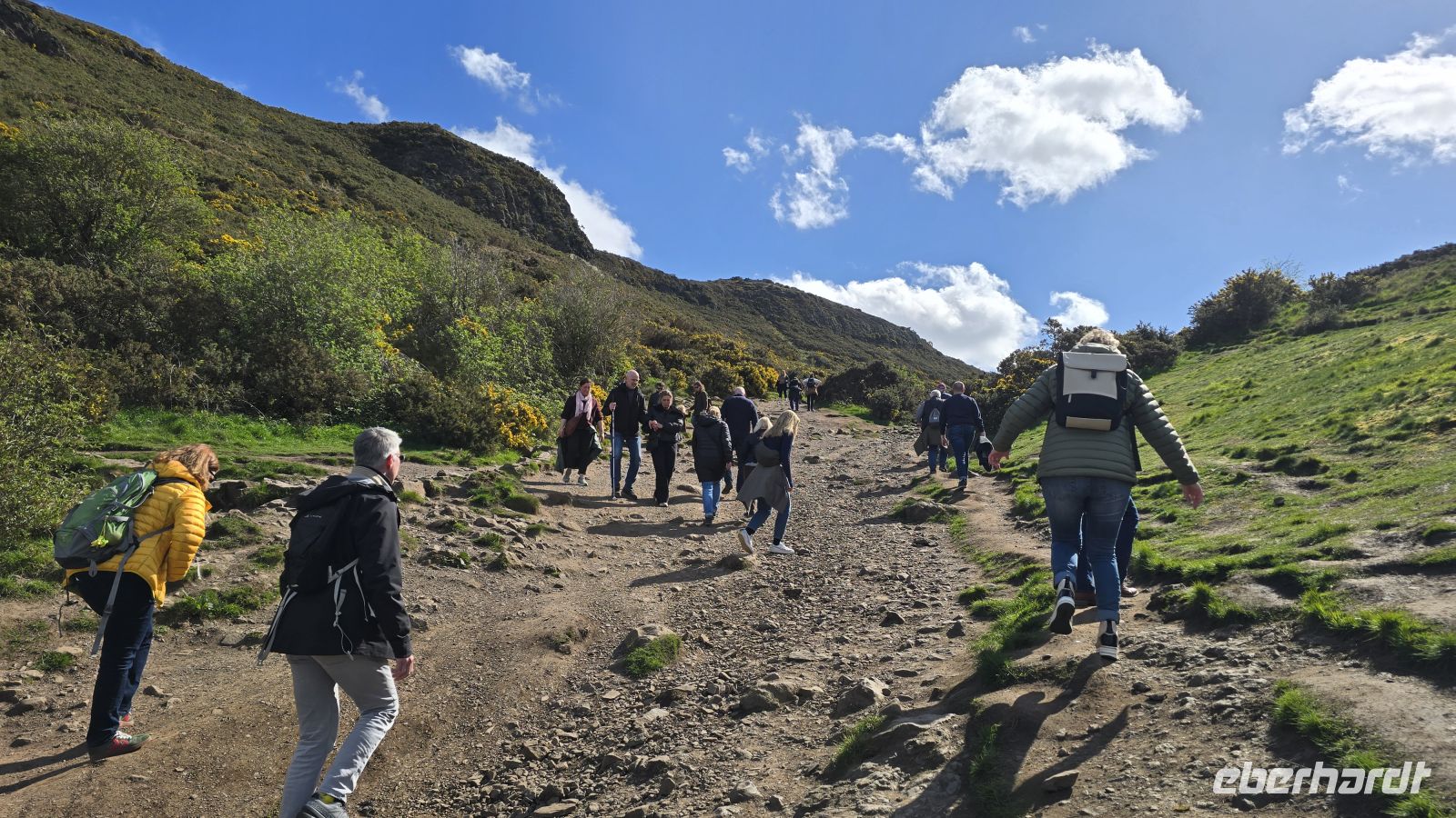 Wir lassen uns zum Frühstück wieder verwöhnen und spazieren dann gemeinsam die Royal Mile hinunter zum Palace of Holyroodhouse. An einem Kilt-Maker stoppen wir und ich erläutere einiges zum Kilt, Tartan, Sporran und Messer im Strumpf. Dann wird es geschichtsträchtig: das John-Knox-Haus liegt auf unserer Route wie auch verschiedene Museen der Stadt, die berühmte Talbooth Taverne ebenso wie die Canongate Kirche, in der auch die königliche Familie Gottesdienst feiert, wenn sie in der Stadt weilt. An der Kirche macht uns dann auch ein Kirschbaum die Freude, uns mit Blüten zu empfangen und ein kleiner Spaziergang über den Friedhof eröffnet einen tollen Blick auf den Calton Hill. Gewagte Architektur empfängt uns am Ende der Royal Mile: das Schottische Parlamentsgebäude. Kontrast dazu der Palace of Holyroodhouse, Sitz des Königs, wenn er Edinburgh besucht. Wir haben Zeit, uns umzusehen, passieren die Taschenkontrolle und nehmen unsere Audio-Guides in Empfang. So ausgerüstet erkunden wir die Klosterruine, den Park und natürlich das Schloss selber. Erstaunlich, dass es auch heute noch so genutzt wird, prachtvoll die Ausstattung der Königsgemächer, makaber der ominöse Blutfleck, der die Stelle zeigt, an der der Sekretär von Maria Stuart ermordet wurde. Wer wollte besucht anschließend das Parlamentsgebäude, allerdings "arbeiten" die Parlamentarier heute wohl, Plenarsaal und Besuchertribüne sind heute leider geschlossen. Nach der Mittagspause treffen wir uns am Park des Holyroodpalace und starten unseren Aufstieg auf Arthur´s Seat. Mit 251 Metern Höhe der Hausberg Edinburghs. Teiche und Anlagen gehörten früher zum königlichen Jagdgebiet, heute erholen sich hier Touristen wie Einheimische. Wir meistern den Aufstieg, einige sogar bis zum Gipfel, der allerdings felsig und unbefestigt ist. Unschlagbar der Blick auf die Stadt von hier oben und eine schöne Belohnung für die Anstrengung. Mit dem Abstieg lassen wir uns Zeit, wählen die lange Variante um den Berg herum und genießen (im Windschatten) den Frühling. Für mich gab es ein Eis zur Belohnung am Fusse von Arthur´s Seat und dann schlendern wir individuell weiter. Am frühen Abend treffen wir uns wieder vor dem Hotel und spazieren gemeinsam zum Pub "Ghillie Dhu". Das Ambiente ist super, es gibt Live-Musik und jeder wählt sich aus der Karte ein passendes Gericht aus. Das Essen ist lecker, Getränke sowieso und so klingt ein schöner Tag langsam aus.