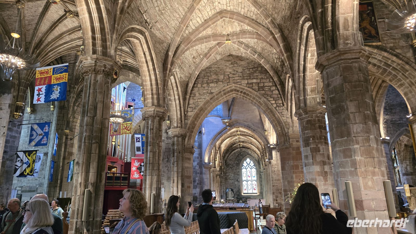 Wir machen uns früh am Morgen auf den Weg. Von Berlin, München, Dresden und Frankfurt geht es für uns nach Edinburgh. Im Landeanflug auf Schottlands Hauptstadt schon der erste Blick auf die drei Forth- Brücken, die wir noch näher kennenlernen werden. Pünktlich sind unsere Transfers vor Ort, wenn auch nicht unbedingt am vereinbarten Ort, aber nach einiger Zeit sitzen alle im Auto und schon nach einer halben Stunde sind wir mitten in der Altstadt von Edinburgh. Unser Hotel liegt zentral direkt an den Waverley Steps im City Centrum. Die kurze Wartezeit auf das Check In vertreiben wir uns in der Hotelbar mit einem Kaffee Cappucino oder Tee, lernen uns kennen und genießen den Blick auf die Altstadt von unserem Hotel aus. Am frühen Nachmittag folgen alle meiner Einladung zu einem ersten Bummel zur Royal Mile. Die "königliche Meile" heißt so, weil es vom Castle auf dem Burgberg bis zum Holyrood- Palast am anderen Ende genau eine schottische Meile ist. Wir schlendern hinauf und werfen einen Blick in die St. Giles Kathedrale. Wow- das hat so niemand hier erwartet. Unglaublich schön im Innern, vielseitig und natürlich auch Sitz des höchsten schottischen Ordens- des Distelordens. Wir erfahren einiges über den heiligen Ägidius (St. Giles), Schutzpatron der körperlich Versehrten. Er soll einen Pfeil, den ein König auf ein von ihm gezähmtes Reh abschoss, mit der Hand aufgehalten haben, daher wird er immer mit dem Pfeil in der Hand dargestellt. Wir erfahren von Covenantern und von John Knox, dem schottischen Martin Luther, bewundern die wunderschönen Fenster und Deckengewölbe. Über die Royal Mile geht es dann ein Stück weiter, an Denkmal für David Hume vorbei, einem schottischen Philosoph und Ökonom. An Deacon Brodies Tavern erfahren wir die Geschichte des räuberischen Stadtrates und biegen dann in die wohl schönste Straße Edinburghs ab: die Victoria Street. Sie führt uns direkt zum Grassmarket. Ehemaliger Markt und auch Hinrichtungsstätte. Namen der Pubs ringsherum erzählen eine eindeutige Sprache: "Last Drop" und auch "Maggie Dicksons", deren Geschichte ich erzähle. Ab hier geht es individuell weiter, aber viele folgen mir ins Biddy Mulligan, ein irisches Pub. Hier probieren sie mutig "Haggis" und sind überrascht, wie gut es schmeckt. Am Abend treffen wir uns noch einmal vor dem Hotel und spazieren gemeinsam zum nahmen Calton Hill. Von dieser Erhebung haben wir einen wunderbaren Blick auf die Stadt, auf die Mündung des Forth , den Hafen in Leith und auch das neue Einkaufszentrum ist mit seinem "Wahrzeichen" auf dem Dach weithin sichtbar. Auf der anderen Seite gibt es einen Blick auf Holyroodhouse und Arthur´s Seat, den Hausberg von Edinburgh. Das schottische National-Monument erinnert an die Akropolis, die Säule daneben trägt den Namen von Admiral Nelson. Die Sonne geht unter und nur zum Schluß verwehren uns Wolken den perfekten Sonnenuntergang. So endet unser erster Tag in Edinburgh und wir verabreden uns auf einen Drink in der Hotel-Bar.