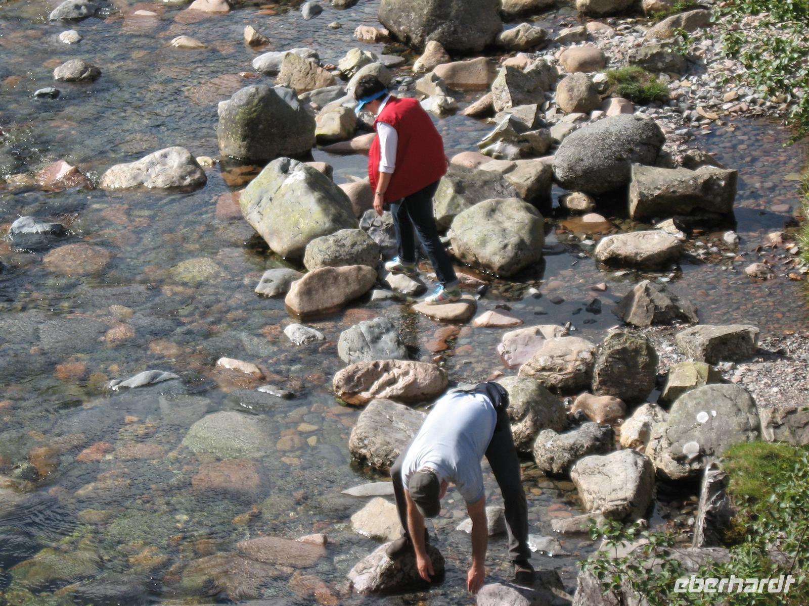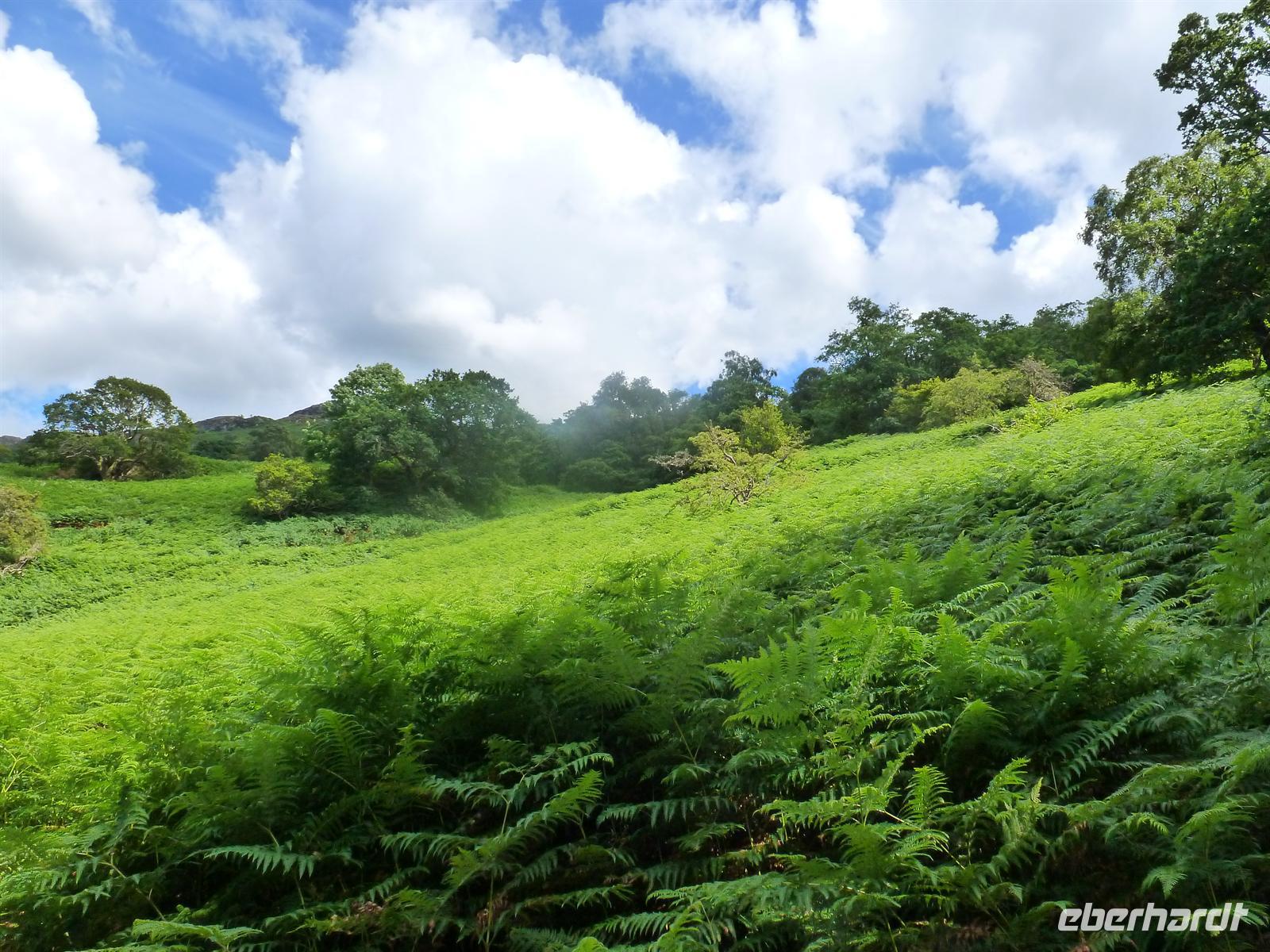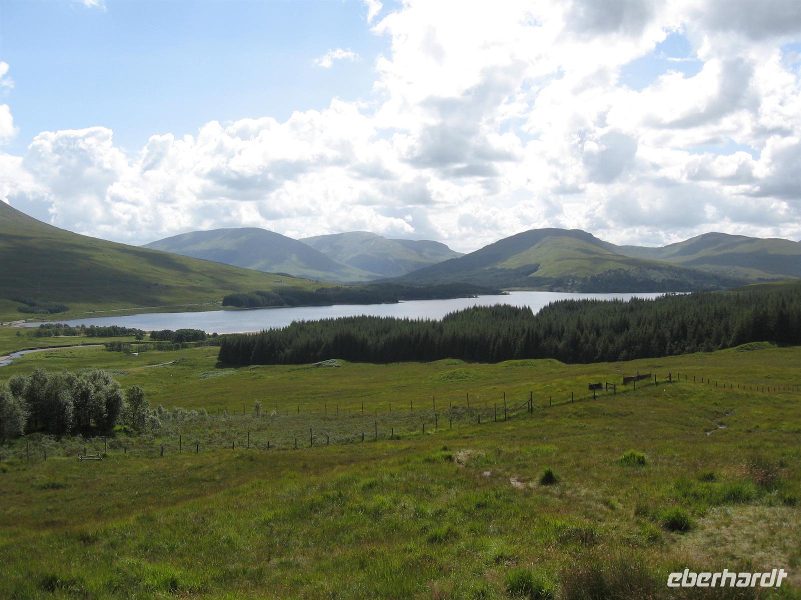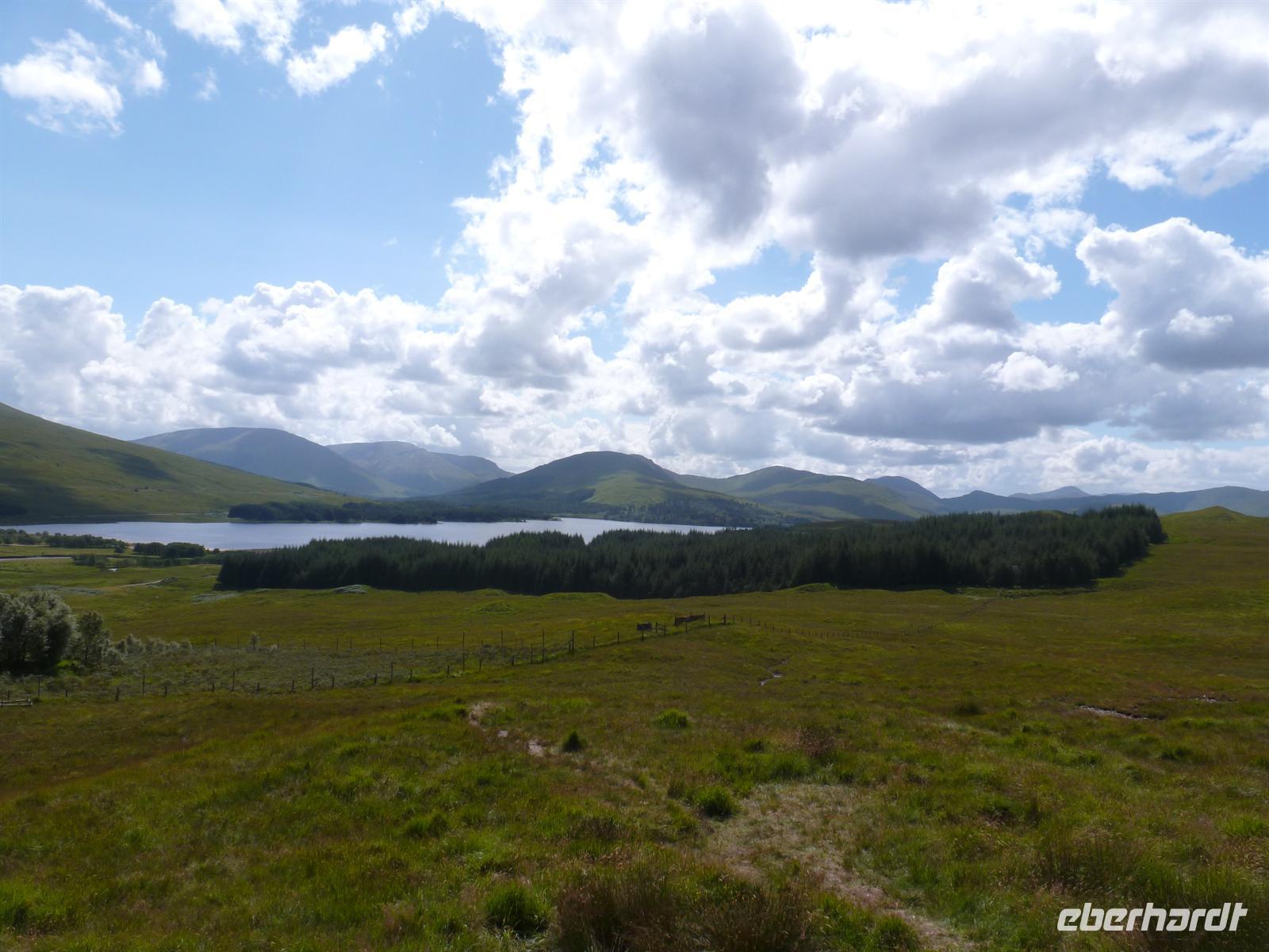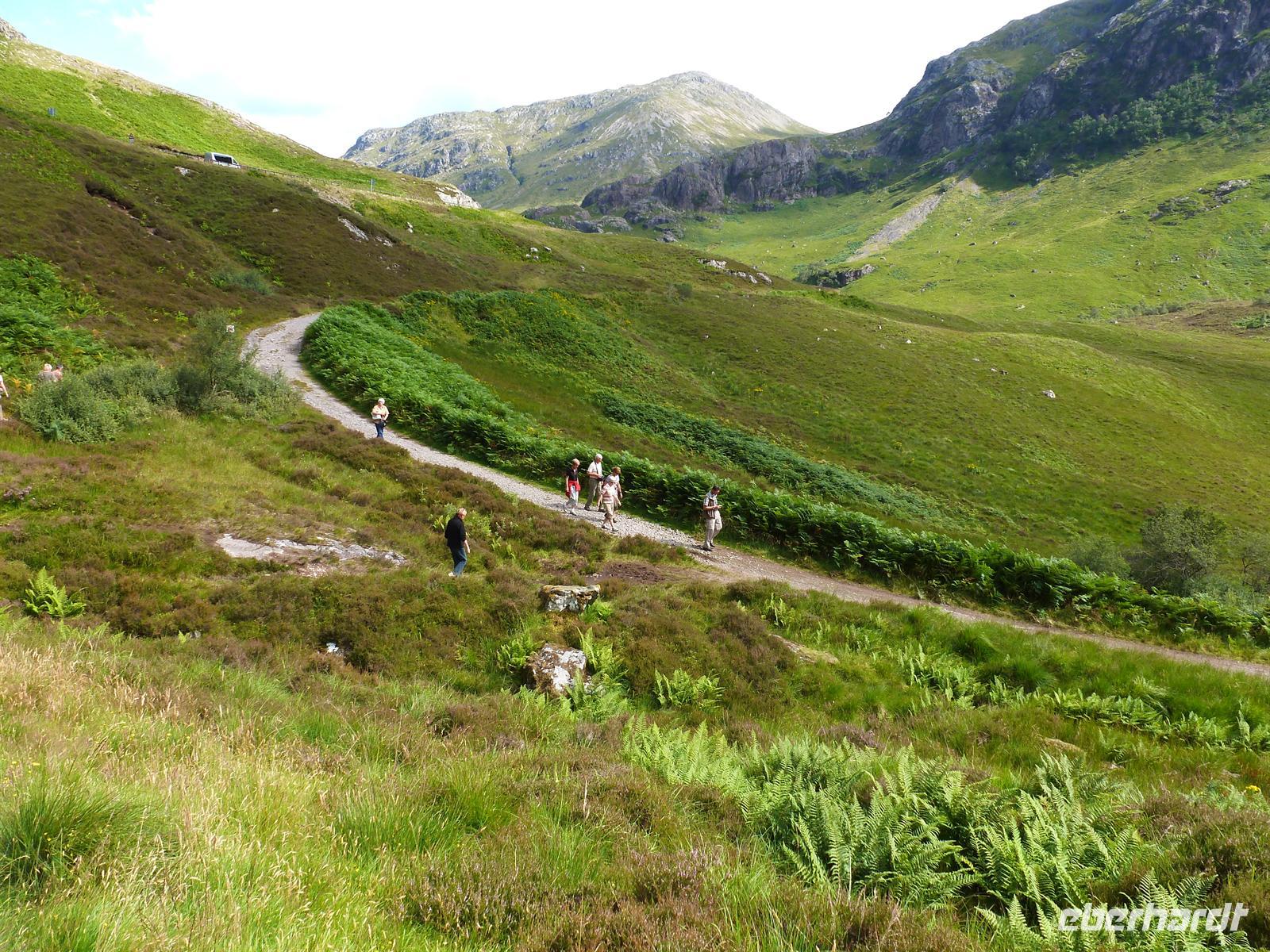 Mit der Fähre fuhren wir von Tarbet über den Loch Lomond, um den sich viele schottische Sagen ragen, nach Rowardennan. Auf der Überfahrt hatten wir die Gelegenheit unsere Blicke über die Ufer und den See schweifen zu lassen. Entlang des West Highland Ways, der sich über 150 km von Glasgow bis nach Fort William zieht, begegneten wir vielen anderen Wanderern und Backpackern. Natürlich hatten wir uns für heute nicht die volle Strecke eingeplant. Gelegentlich pausierten wir um die atemberaubende Natur zu bewundern. Dabei ließ es das Wetter sogar zu, unsere Füße im Loch Lomond zu kühlen. Nach dem wir unser Ziel, das Inversnaid Hotel erreicht hatten, konnten wir noch etwas Zeit bei einem Kaffee oder Bier verbringen, bis uns die Fähre wieder nach Tarbet brachte.