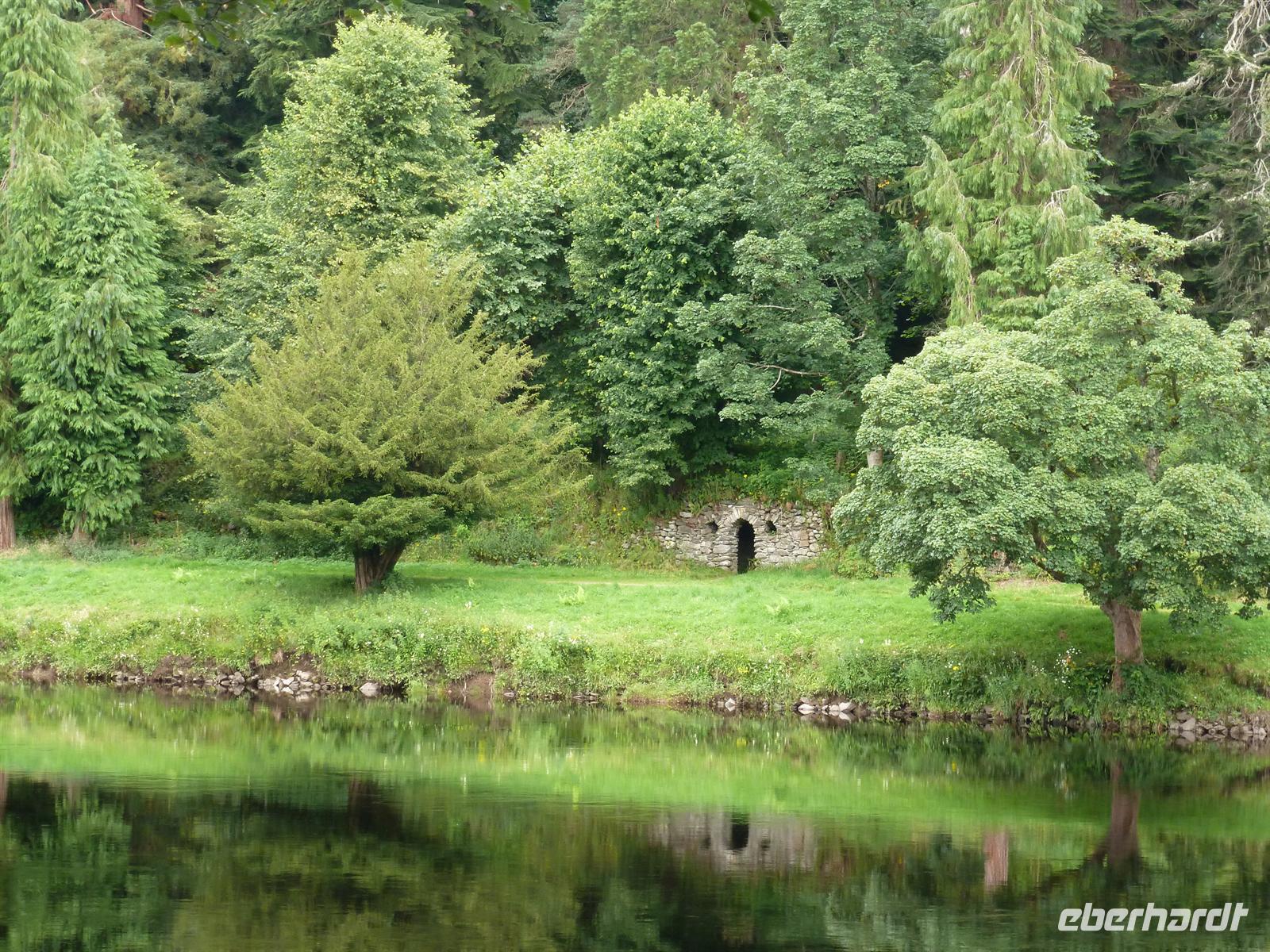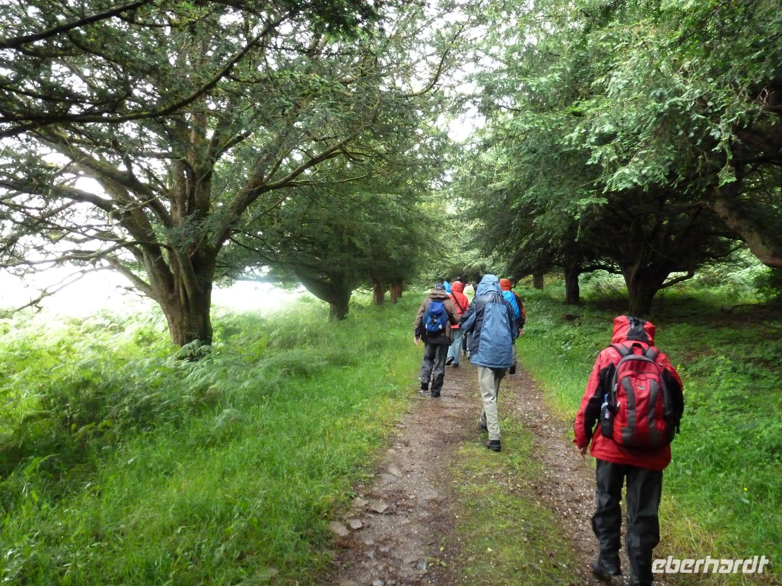 Am Morgen des Tages verließen wir unser Hotel und brachen auf in Richtung Inveraray. Kurz vor dem Ort verließen wir, leider im Regen, unseren Bus. Von hier aus liefen wir durch eine Eibenallee und vorbei an Rhododendron.