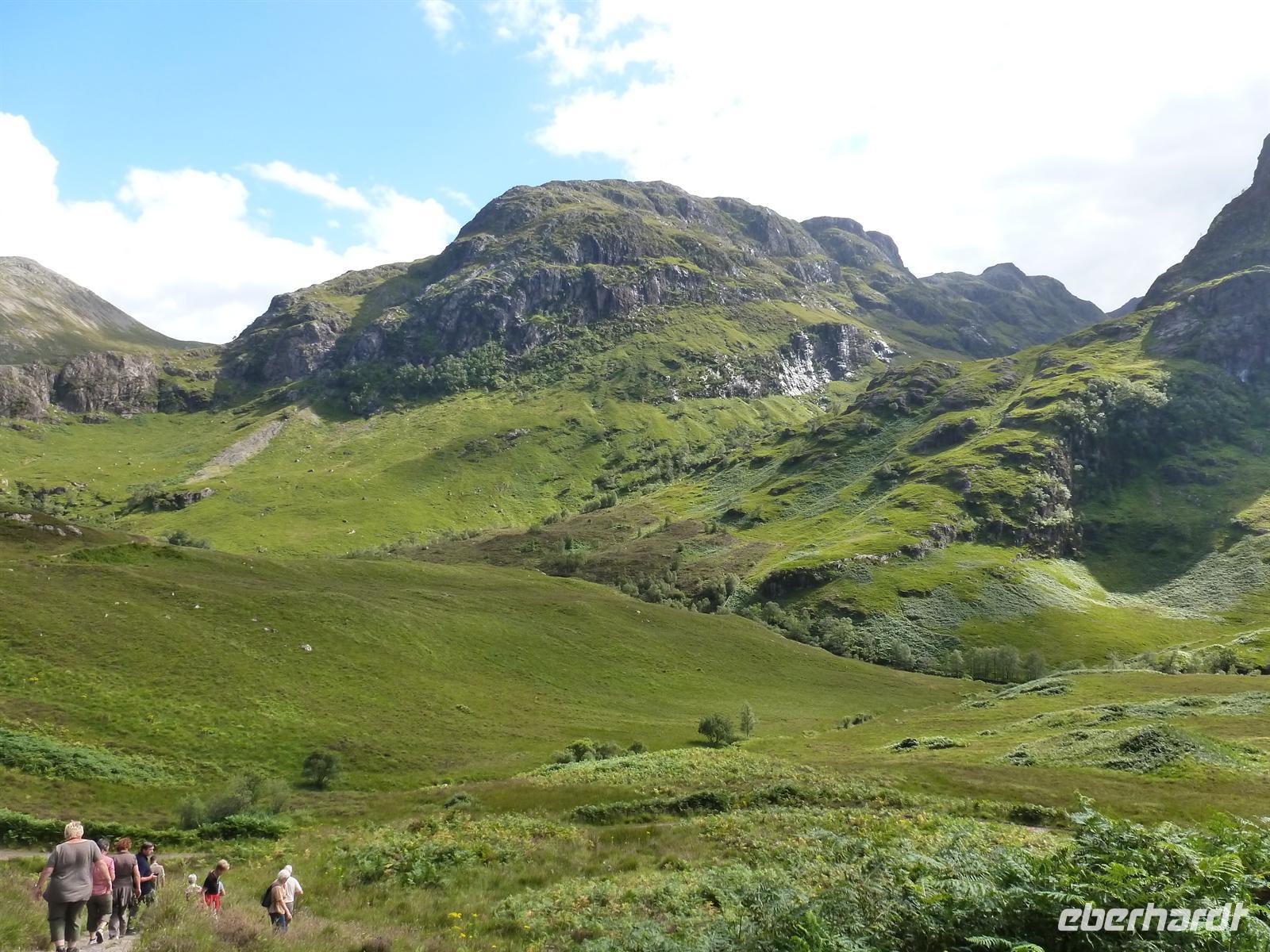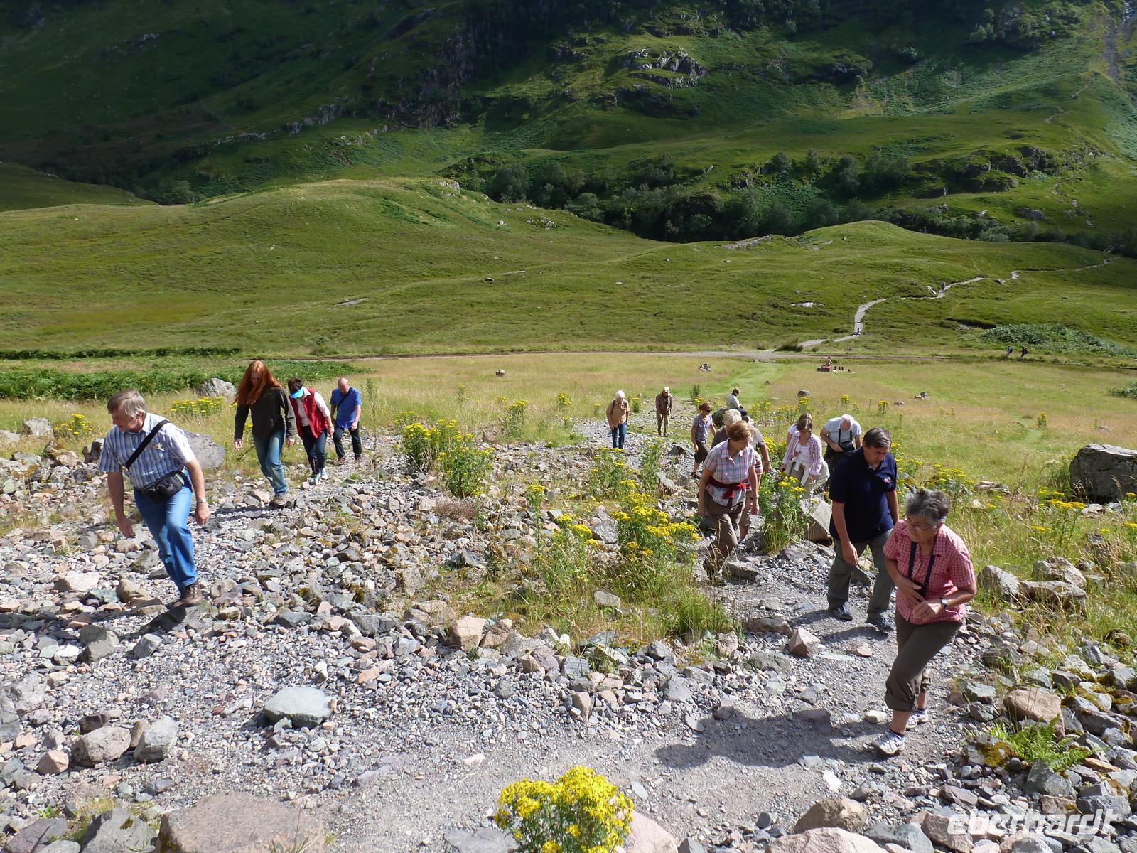 Heute Vormittag hatten wir Zeit um Fort Williams zu erkunden. Neben vielen Geschäften und Gasthäusern bietet der kleine Ort ein Museum und einen kleinen Park, der zum Entspannen einlädt. Kurz vor dem Mittag trafen wir uns vor dem Bahnhof, um anschließend mit dem Zug nach Upper Tyndrum zu gelangen. Die Landschaft war nahezu unbeschreiblich. Das Rannoch Moor, Schottlands größte zusammenhängende Moorlandschaft, erstrahlte in saftigem Grün. In Tyndrum angekommen spazierten wir durch den kleinen Ort zu einer Raststätte. Unser Busfahrer wartete bereits auf uns. Natürlich hatten wir noch etwas Zeit uns im Souvenirshop umzuschauen. Mit dem Bus ging es dann Richtung Glen Coe. Herr Kuchenbecker erzählte uns die Geschichte, die erklärt, warum es Tal der Tränen genannt wird. Im Glen Coe selbst hatten wir einen Spaziergang mitten im Tal und genossen den Anblick der auf uns herabschauenden Berge. Nach dieser kleinen Wanderung ging es zurück zum Hotel.