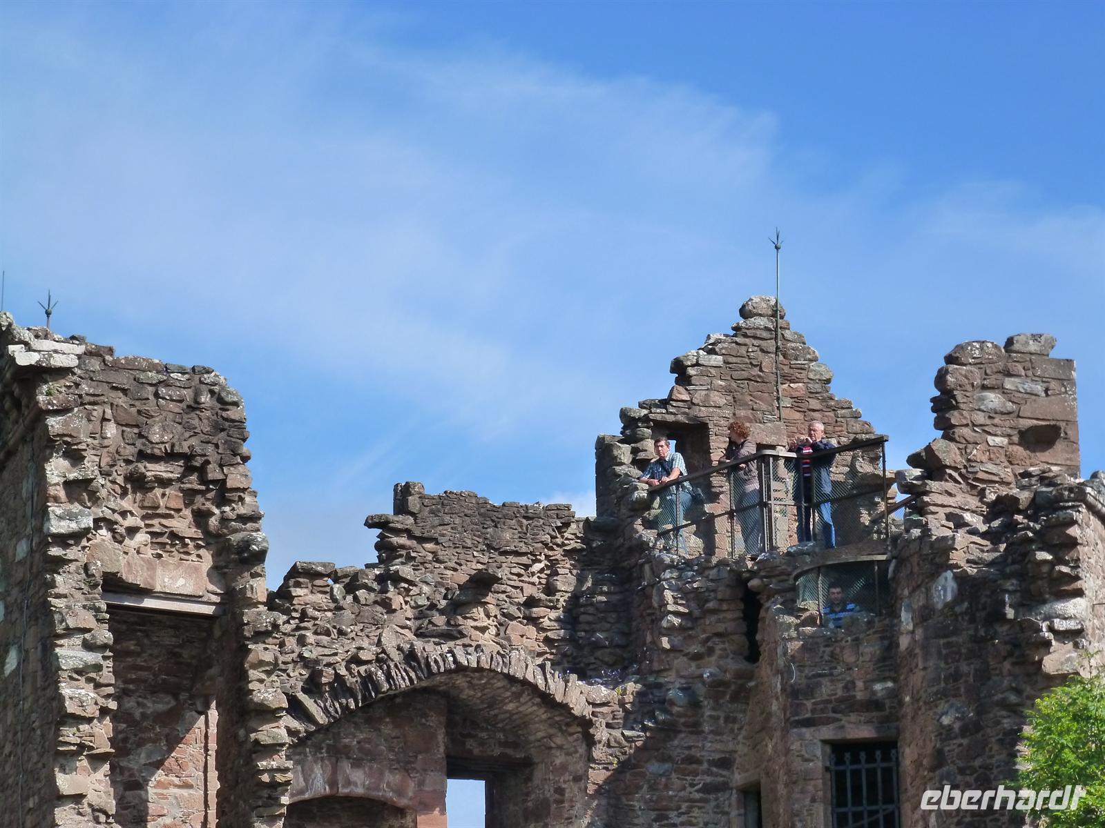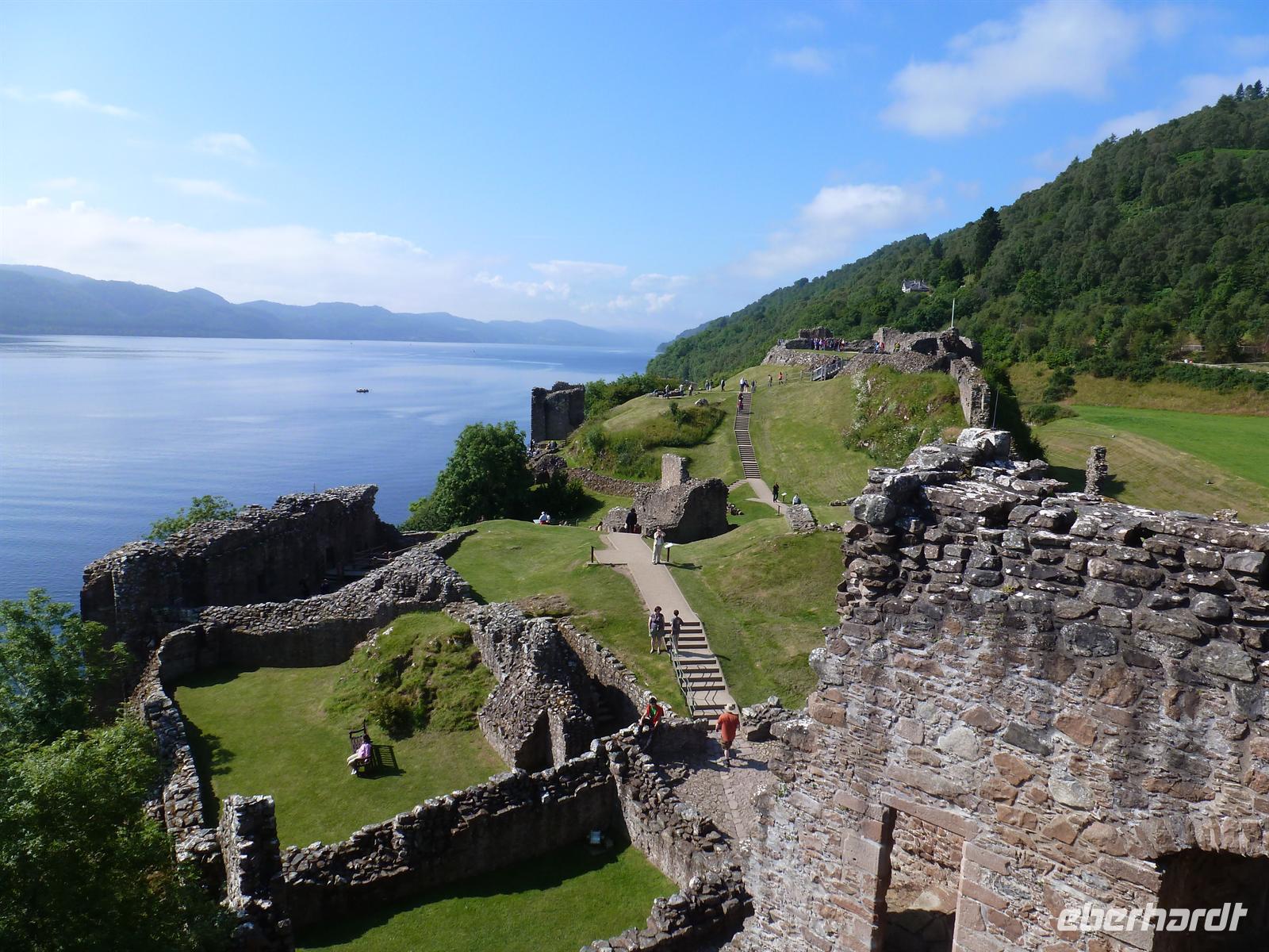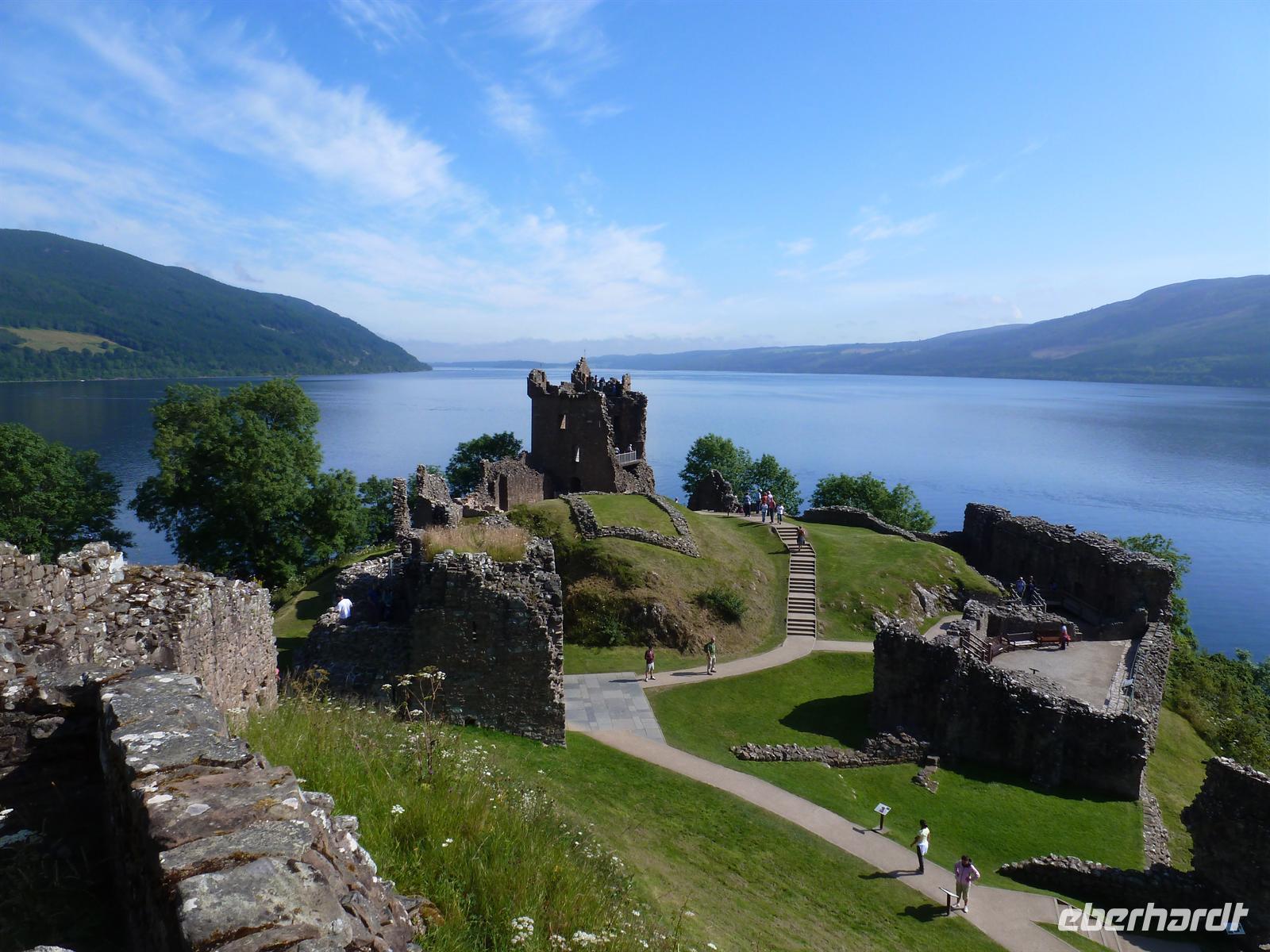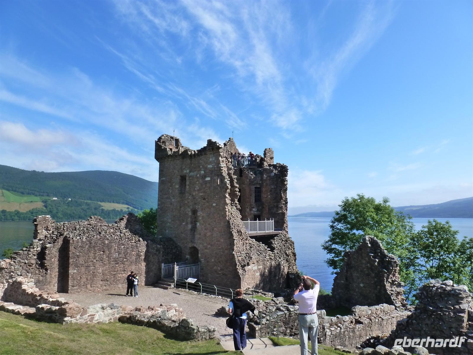 Nach dem Check Out verließen wir unser Hotel ud brachen auf Richtung Inverness. Dabei fuhren wir entlang des kaledonischen Kanals, Loch Lochy, Loch Oich und Loch Ness. Im Besucherzentrum Urquard Castle hatten wir die Gelegenheit, uns einem kurzen Film über die Geschichte der Burg anzusehen. Diese ist geprägt von Gewalt, Eroberung und Zerstörung. Nach dieser Einführung hatten wir ausreichend Zeit die Burg zu erkunden. Zu den Highlights zählte unter anderen, die Aussicht vom Turm über den See und die Landschaft.
