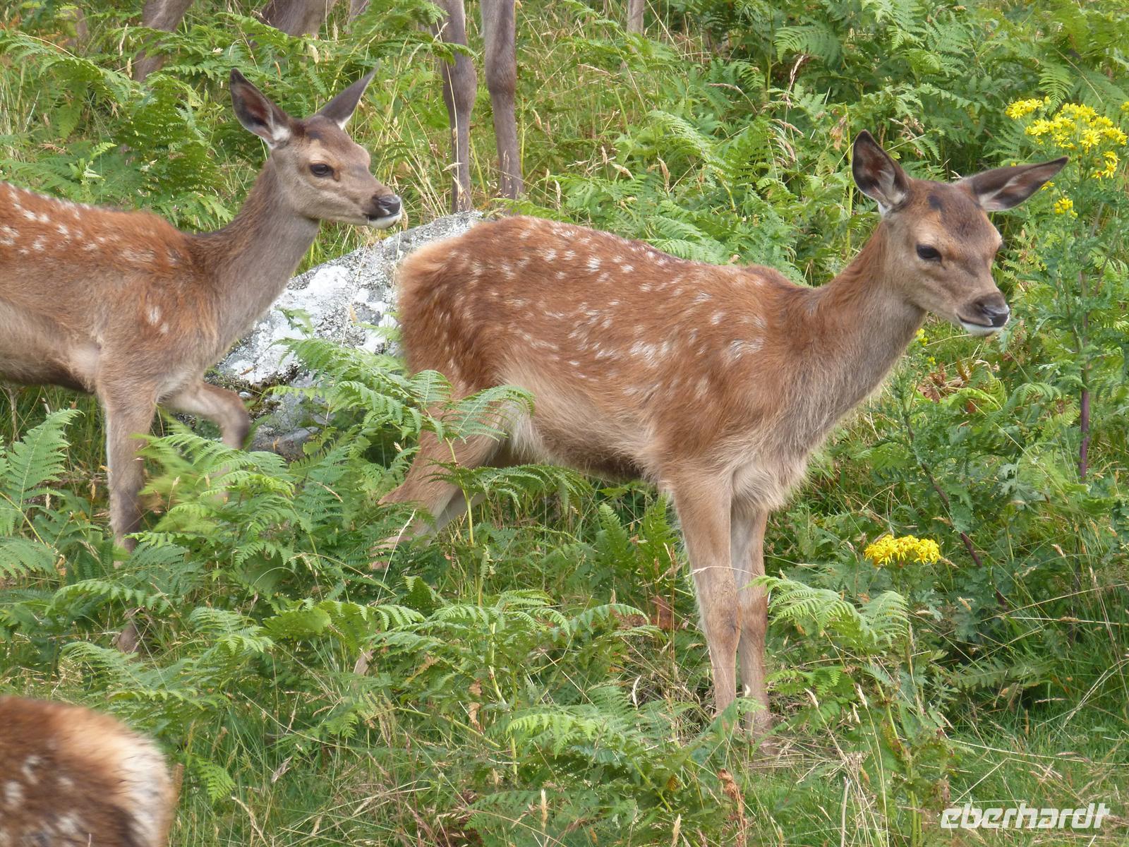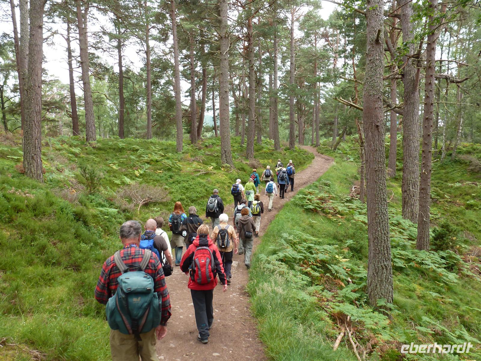 Vor dem Start unserer Wanderung im Rothiemurchus Forrest gab es noch die Gelegenheit, sich im Ort umzusehen und Besorgungen für die Mittagsverpflegung vorzunehmen. Während unserer Wanderung konnten wir den Wald und die umliegende Heide bewundern. Vorbei an einem See, den wir kurzerhand „Loch No-Name“ tauften, erreichten wir Loch An Eilein. In der Mitte des Sees, dessen Name "See mit Insel" bedeutet, befinden sich, wie sollte es anders sein, eine Insel mit einer kleinen Burg - dem Wolf Castle. Man sagt dem Burgherren nach, sehr jähzornig gewesen zu sein und sich selbst den Beinamen „Wolf“ gegeben zu haben. Wir umrundeten den See und hatten am Ufer unsere wohlverdiente Mittagspause. Als wir uns gestärkt hatten ging es durch ein Wildgehege. Um in das abgesperrte Gehege zu gelangen mussten wir aber erst einmal über die dafür vorgesehenen Leitern klettern. Einige Minuten später begrüßte uns eine Gruppe Rehe und verfolgte uns ein Stück. Um das abgezäunte Areal wieder zu verlassen mussten wir erneut über die Leitern steigen. Auf dem Weg zurück zum Bus wanderten wir noch über Felder und vorbei an beeindruckenden und riesigen Bäumen. Am Bus angekommen, hatte Herr Kuchenbecker noch ein Highlight parat und führte uns zur Ruine Ruthven Barracks. Sie diente zur Überwachung des Highlandgebietes durch die Engländer.