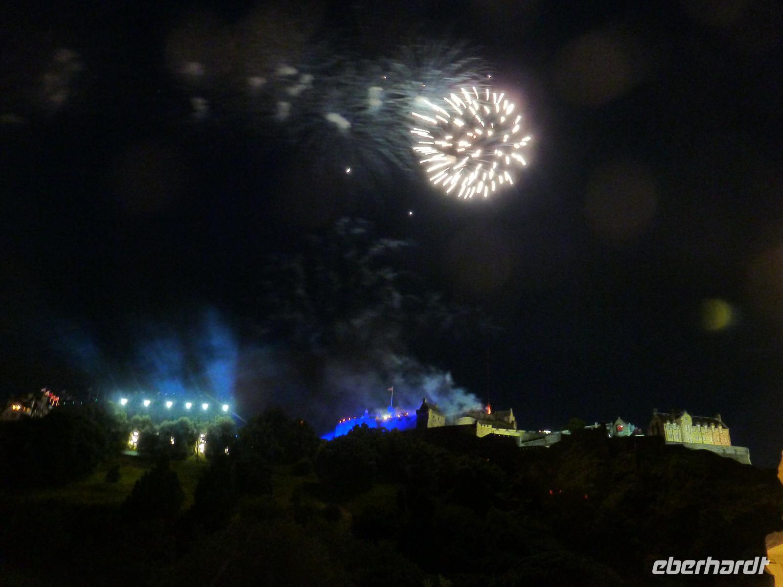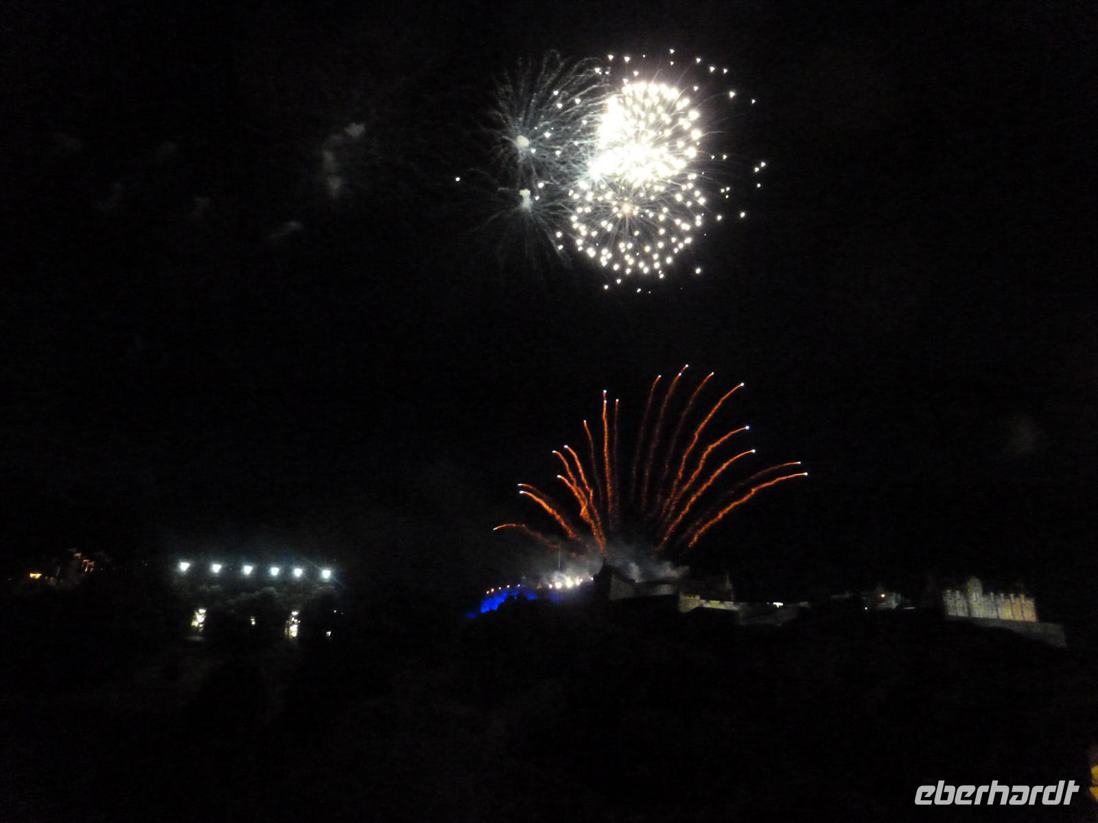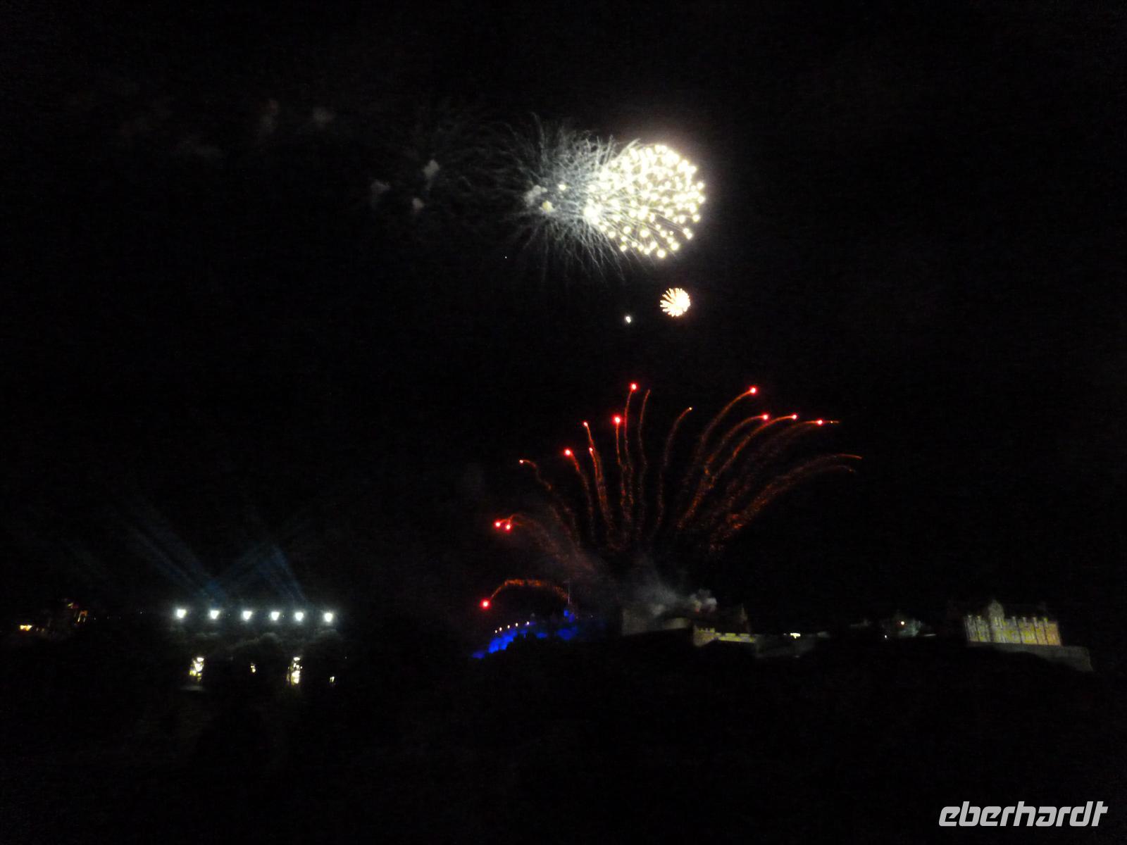 Da in der Stadt das Military Tattoo war, konnten wir am Abend das Lichter-Spiel und Feuerwerk auf der Burg beobachten.
