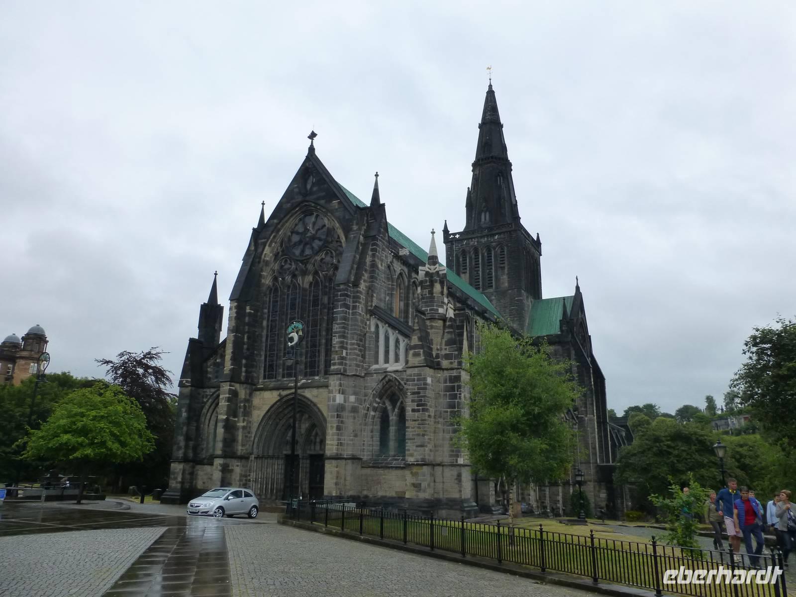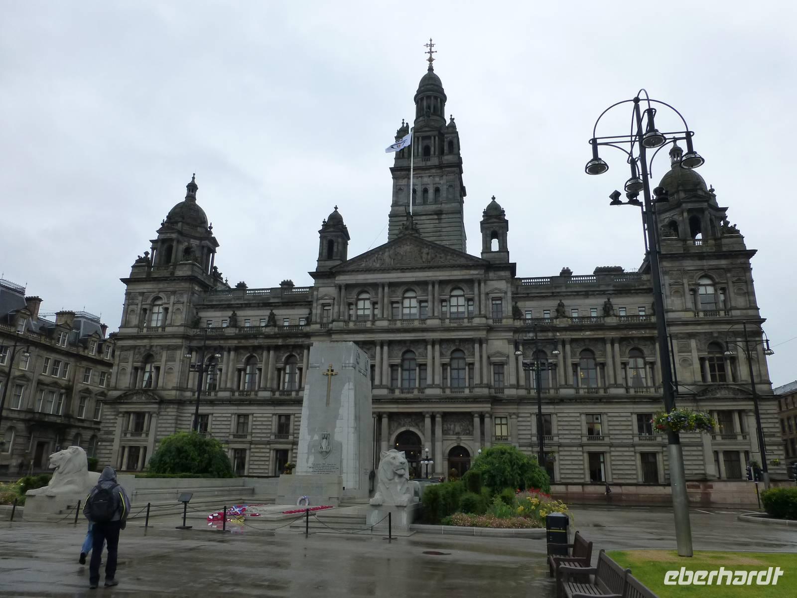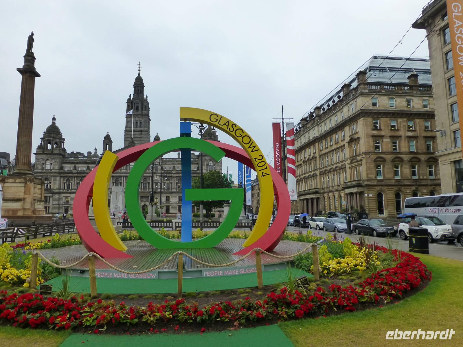 Schottland empfing uns bei der Landung im Glasgow, wie man es von Schottland erwartet: Mit Drizzle Rain, Nieselregen. Freundlicher als das Wetter waren die Schotten selbst, die uns schon bei der Passkontrolle zur am Vorabend gewonnenen Fußballweltmeisterschaft beglückwünschten.Ein anderes supra- aber nicht internationales Sportevent warf bei unserer Ankunft in Glasgow seine Schatten voraus: die zwanzigsten Commonwealth Games in Glasgow. Als der Drizzle Rain sich am George Square für einen Augenblick mal in einen etwas heftigeren Regen verwandelte, fanden wir daher Unterschlupf in einem Festzelt, welches als Merchandising Center verwendet wurde. Das wie der Glasgower Fluss genannte Maskottchen Clyde irritierte uns mit seiner grünen Hautfarbe und seinem lilanen Haar zunächst, bis wir begriffen, dass es die schottische Nationalblume, die Distel darstellen wollte.Zuvor waren wir aber noch an der vom Freudentöter John "Killjoy" Knox eifersüchtig bewachten St. Mungo's Kathedrale gefahren, in der wir die Spuren presbyterianischen Bildersturms vermischt mit beinahe katholisch anmutendem Dekor bewunderten. Vielleicht ganz gut, dass der Reformator und Bilderstürmer draußen stehen muss und so die Entwicklung in seiner Kirche nicht sehen kann. Im Anschluss besuchten wir die nahe gelegene Nekropole, wo der zuvor erwähnte John Knox hoch auf einer Säule seinen Wachposten eingenommen hat. Dieser Händlerfriedhof mit seinen Grüften und Grabobelisken, zwischen Kathedrale und Tennants-Brauerei gelegen ist wirklich bemerkenswert. Ob griechische oder römische Tempel, einer Miniaturausgabe des Petersdoms oder einem Nachbau einer mittelbyzantinischen Kirche, der Phantasie sind hier keine Grenzen gesetzt, auch wenn die Gebäude weniger von der Sonne beschienen werden, als ihre mediterranen Vorbilder.