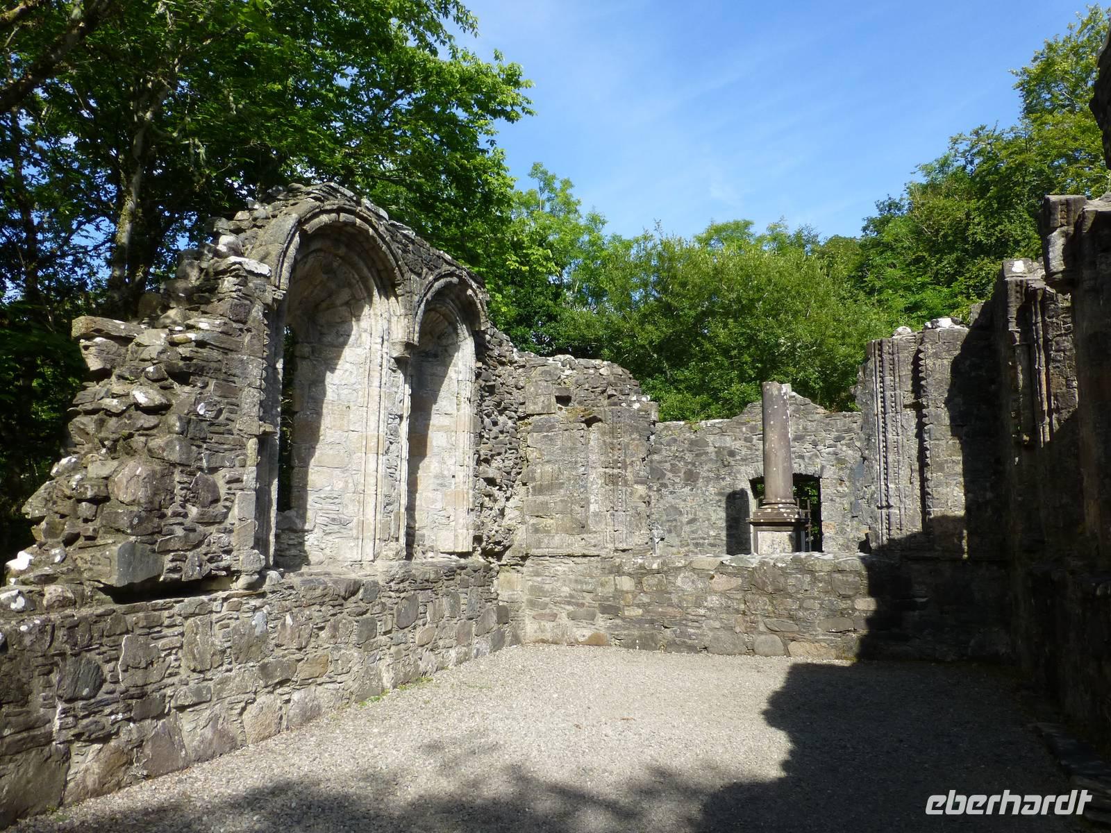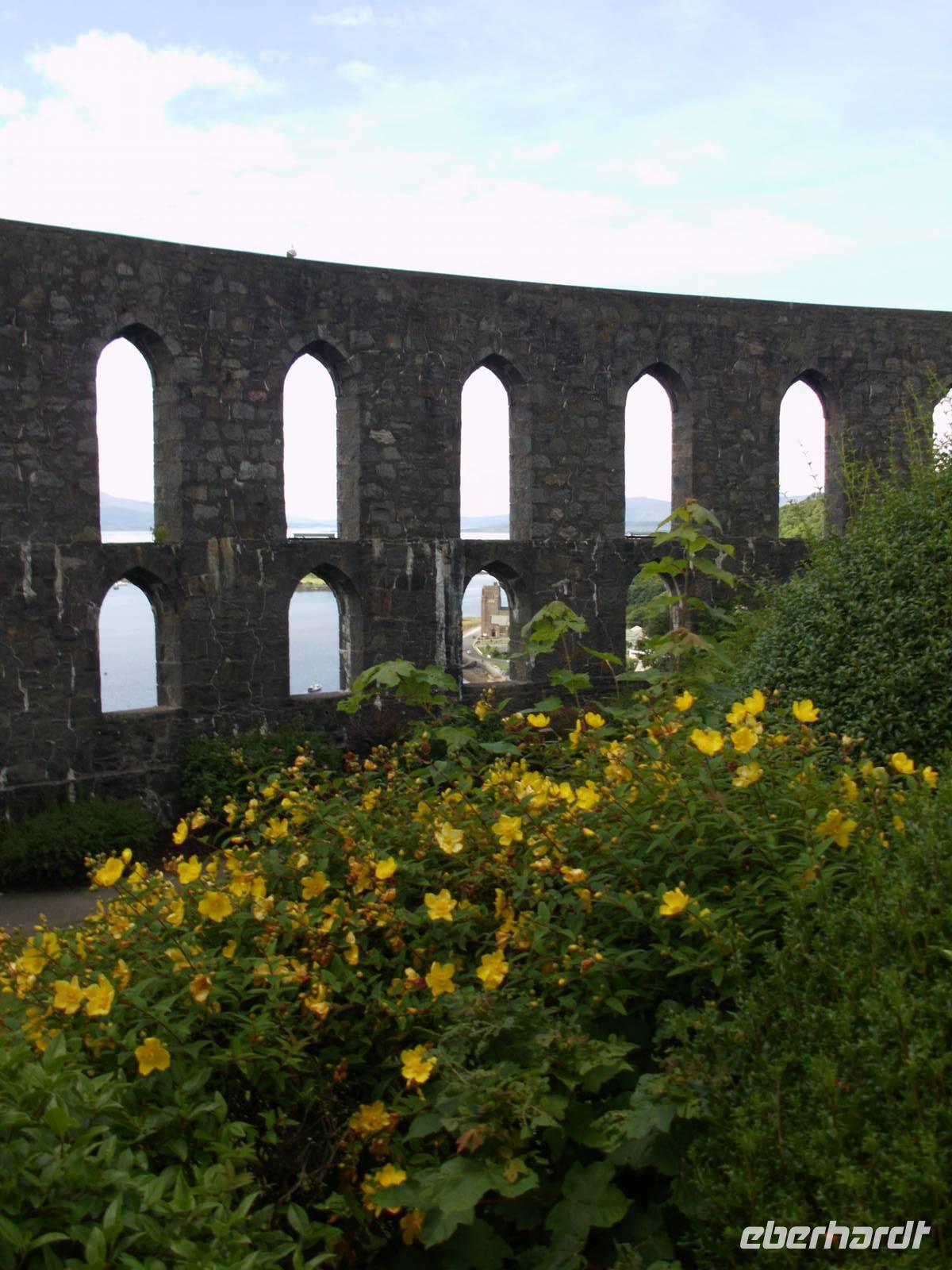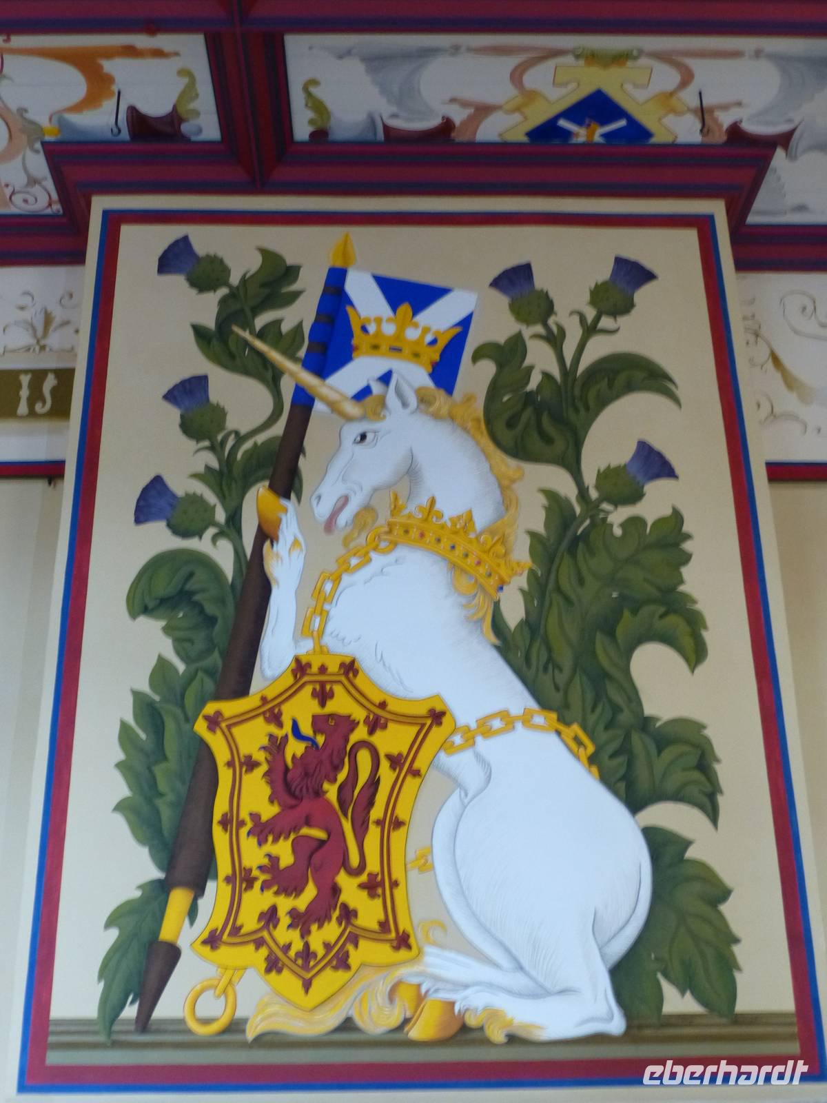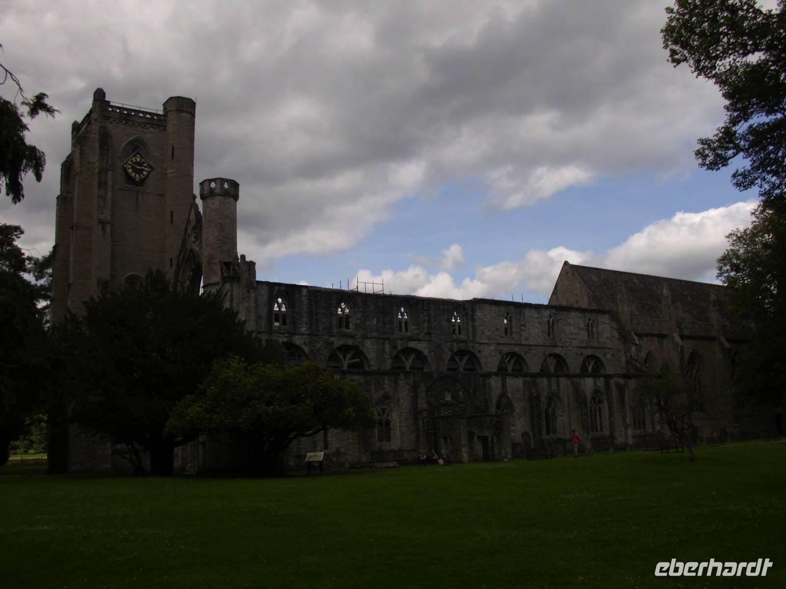 Ganz in der Nähe lag auch das Blair Castle, welches dem Grafen von Atholl gehört, der einzige Brite, der eine Privatarmee unterhalten darf. Es war Queen Victoria, die dem Vorfahren des jetzigen Grafen dieses Recht gewährte, gewissermaßen als Entschädigung für das Leid welches den Schotten von Seiten Englands angediehen wurde.Im Anschluss also an den Besuch des Queen's View ging es durch die Hermitage, einen Wald mit beeindruckenden Douglasien. Diese aus dem amerikanischen Westen stammende Fichtenart erhielt ihren Namen nach dem schottischen Botaniker David Douglas. Direkt über einem Wasserfall - in dem allerdings nicht die versprochenen Lachse sprangen - stand, im neoklassizistischen Stil errichtet, Ossian's Hall.