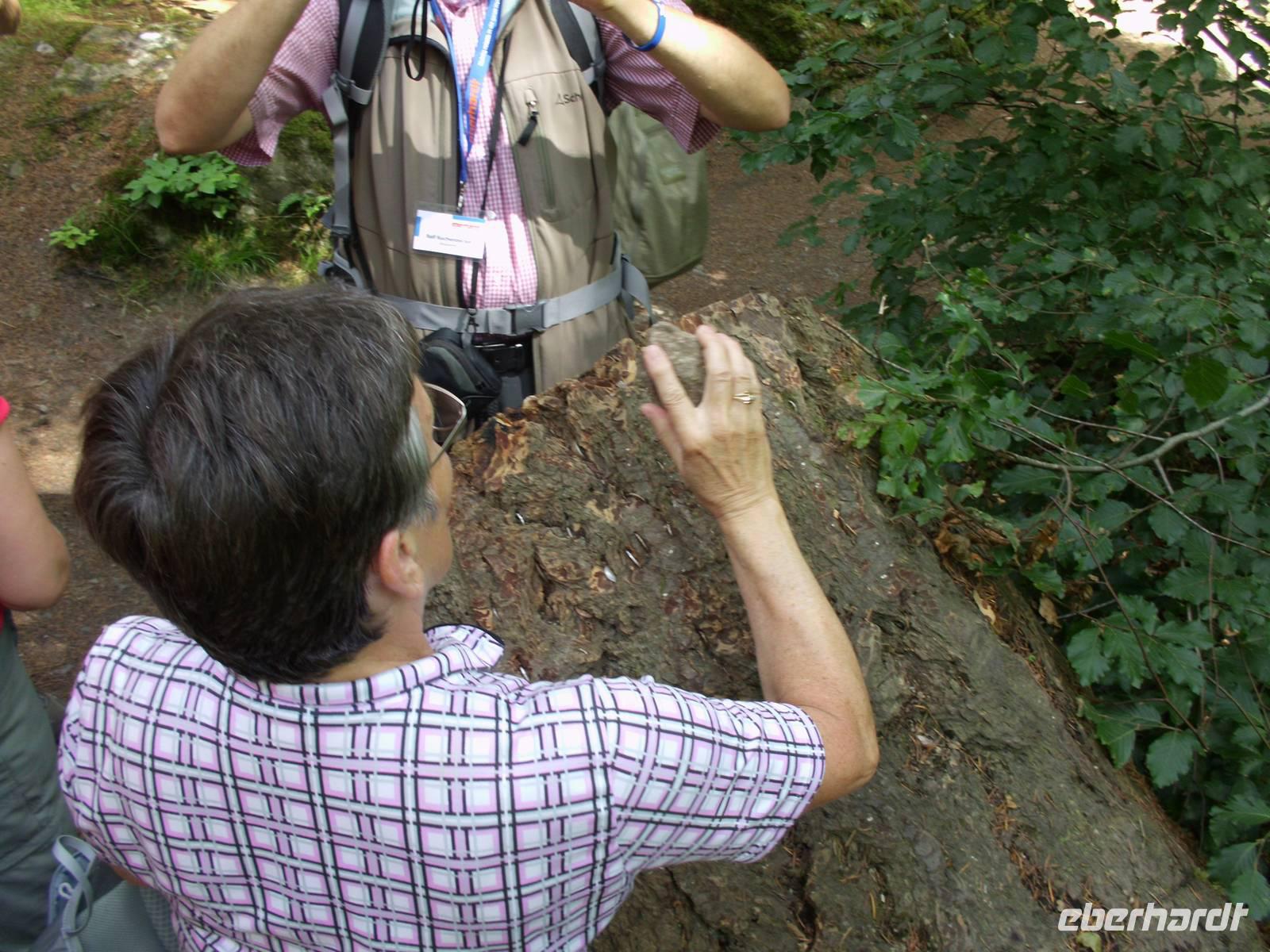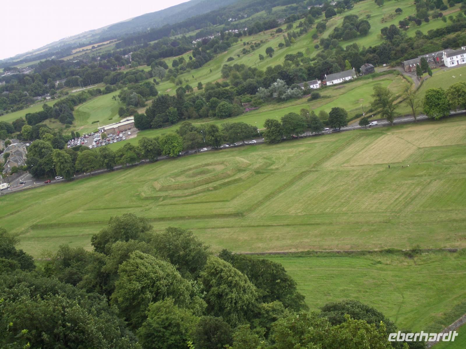 Nach einem Besuch Stirlings am Vormittag, bei dem wir über die neue Old Stirling Bridge zum Schloss hoch marschierten, wanderten wir entlang des Südufers des Carron Reservoirs.An der Old Bridge aus dem frühen 15. Jahrhundert, die über den Forth führt, sprachen wir über die Schlacht von Stirling Bridge, die 1297 an einem Vorgänger-Bau geschlagen wurde und in der William Wallace den Sieg über ein überlegenes englisches Heer davontrug. Bei der Wanderung den Stadt- und Burgberg hoch, einen 75 m hohen Vulkankegel mit gut erkennbaren Basaltsäulen, lernten wir das Einhorn Puggy (pug = Mops) kennen. Puggy sitzt auf der Marktsäule und soll die schottische Integrität symbolisieren. Von hinten sieht es eher aus wie ein Mops, weniger wie ein pferdeähnliches Wesen und so hat es seinen Spitznamen erhalten.Auf der Fahrt zu unserem Wandergebiet am Carron Reservoir hielten wir noch am Schlachtfeld von Bannockburn, in Sichtweite der Bürg von Stirling. Im Juni 1314 schlug hier Robert the Bruce (Robert I., "The Brus") ein englisches Entsatzheer unter Führung Edward II. Die Engländer umgingen diesmal, wohl in Erinnerung an das Debakel von Stirling Bridge keine zwanzig zuvor, die Brücke, blieben dann aber im Sumpfgebiet stecken, die Pferde überrannten die eigenen Fußsoldaten und Bogenschützen. Der englische König wurde von seinem eigenen Vasallen, der gegenüber Robert the Bruce nicht wortbrüchig werden wollte, der Burg Stirling, die zu entsetzen er gekommen war, verwiesen und der Belagerte verließ am kommenden Tag worthaltend die Burg. Am River Carron Reservoir liefen wir uns in unserer ersten Wanderung ein wenig ein und übten uns bei einer kleinen Pause ein wenig in Pflanzenkunde. Ins Wasser galoppierende Hirsche entpuppten sich bei einem Blick durch's Fernglas als im Gänsemarsch einander hinterhereilende Wildgänse. Wie leicht man doch ein Gänsebürzel mit einem Wildwedel verwechseln kann...Abends trafen sich Teile der Gruppe im ältesten noch erhaltenen Pub Schottlands, dem Clachan Inn in Drymen, direkt neben unserem Hotel gelegen. Schon Rob Roy MacGregor soll hier getrunken haben.Technische Daten