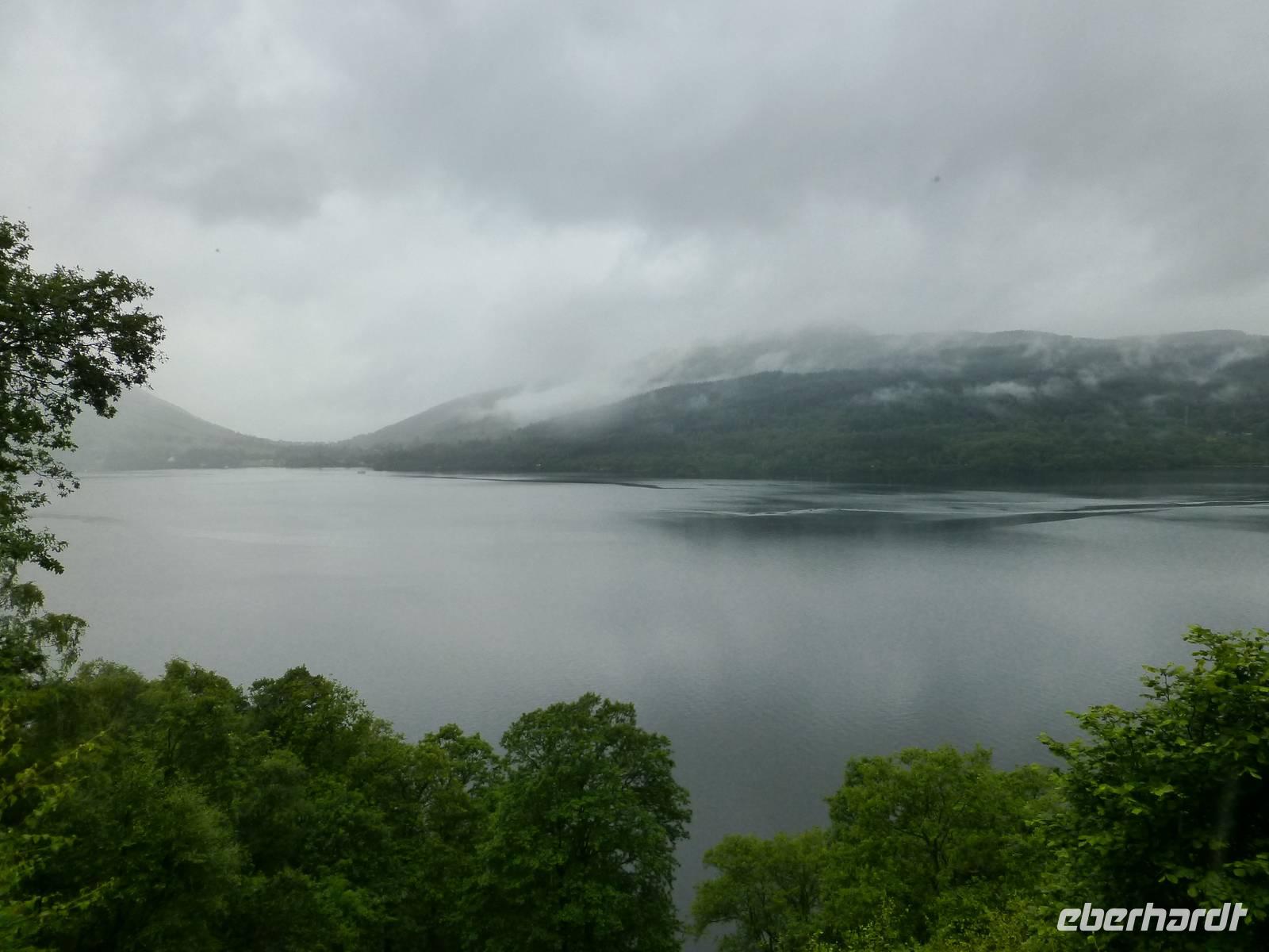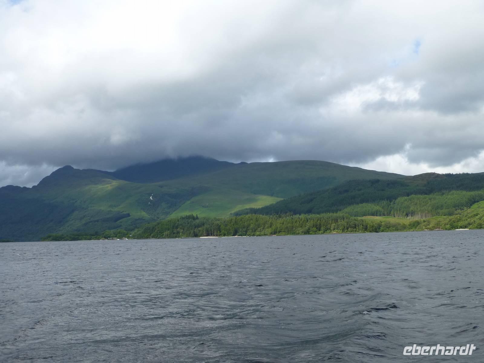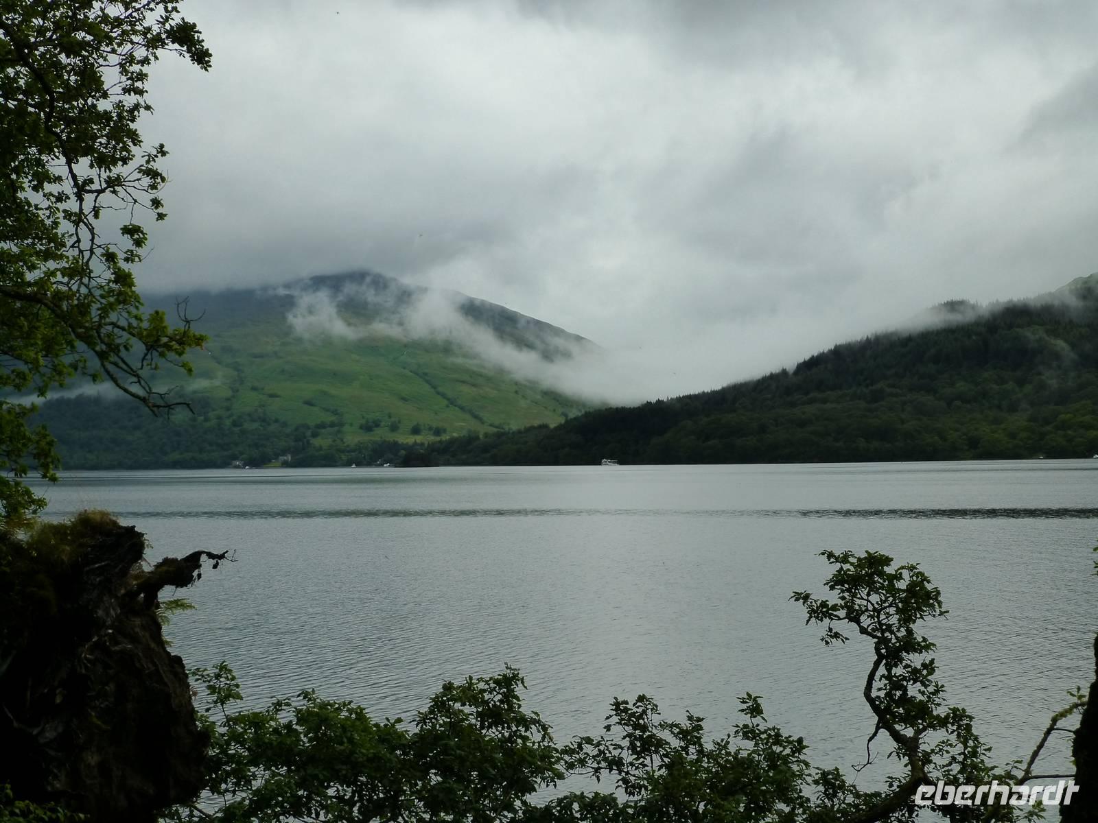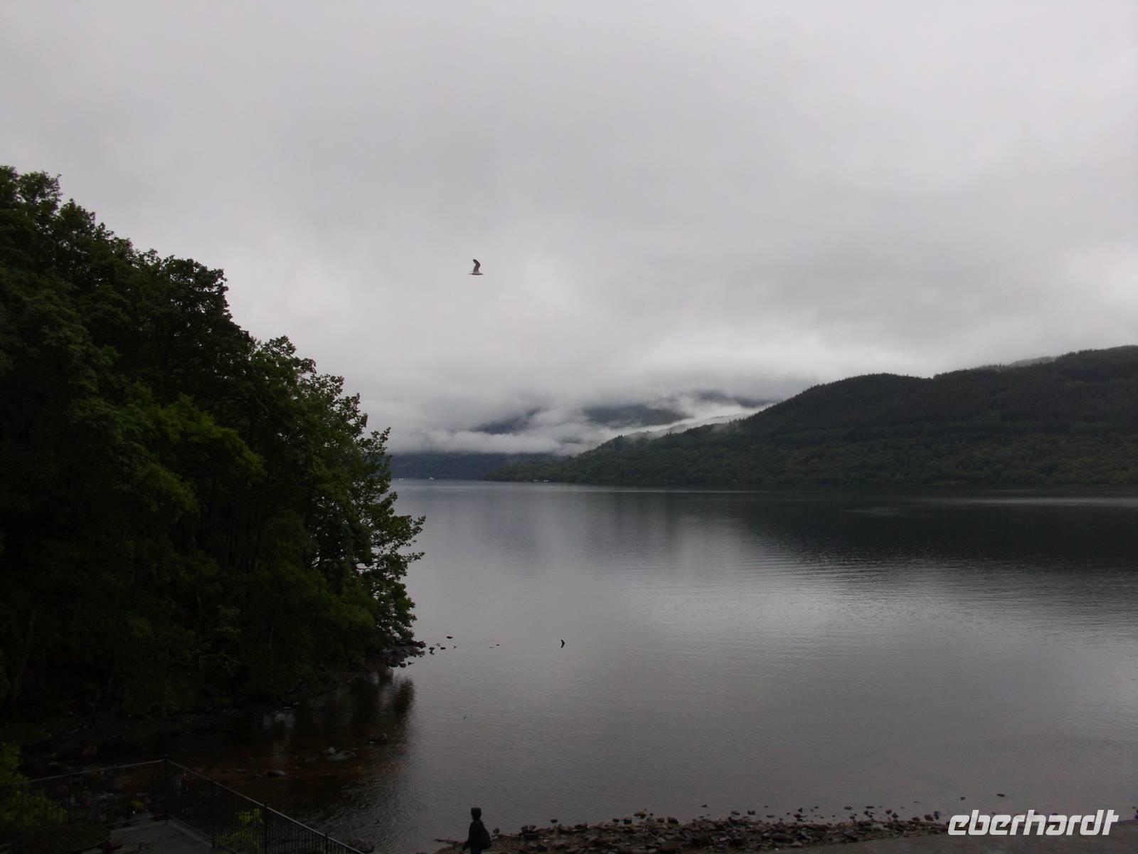 Von Drymen, unserem bisherigen Übernachtungsort aus, nahmen wir die High Road an die bonnie, bonnie banks of Loch Lomond, um von Tarbet, dem Ort der Landenge zwischen dem binnenländischen Loch Lomond und dem Sealoch Loch Long aus über den Lomond überzusetzen und von Inversnaid nach Rowardennan zu marschieren.Die Bootstour war ganz vergnüglich und so landeten wir am Inversnaid Hotel, wo zunächst ein allgemeiner Besuch der „Sweet harmony" anstand. Diejenigen mit weniger Harmoniebedürfniss schauten sich den Inversnaid Wasserfall näher an.Die sich nun anschließende Wanderung führte am wechselvollen und dicht bewachsenen Ostufer des Loch Lomond entlang. Das Lied von den „bonnie banks of Loch Lomond" log nicht. Etwas getrübt wurde die Freude durch den heftigen Regenguss, der uns die letzte halbe Stunde des Weges begleitete. Hatten die vorherigen Drizzels uns nichts anhaben können, so durchnässte dieser Regen uns doch total. Zum Glück stimmte die Vorbereitung und so war bald, abgesehen von vollgelaufenen Wanderschuhen, alles wieder trocken.Auf der Wanderung kamen wir an einigen Grundmauern verlassener Gehöfte vorbei. Ob eines davon das Gehöft Craigrostan war, welches der Sheriff Graham of Killearn niederbrannte, als er Rob Roy, den er verhaften sollte, nicht antraf, ist dem Verfasser dieser Zeilen nicht