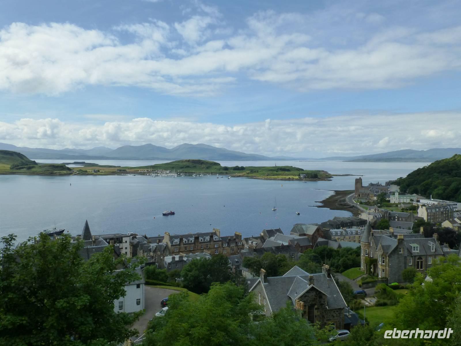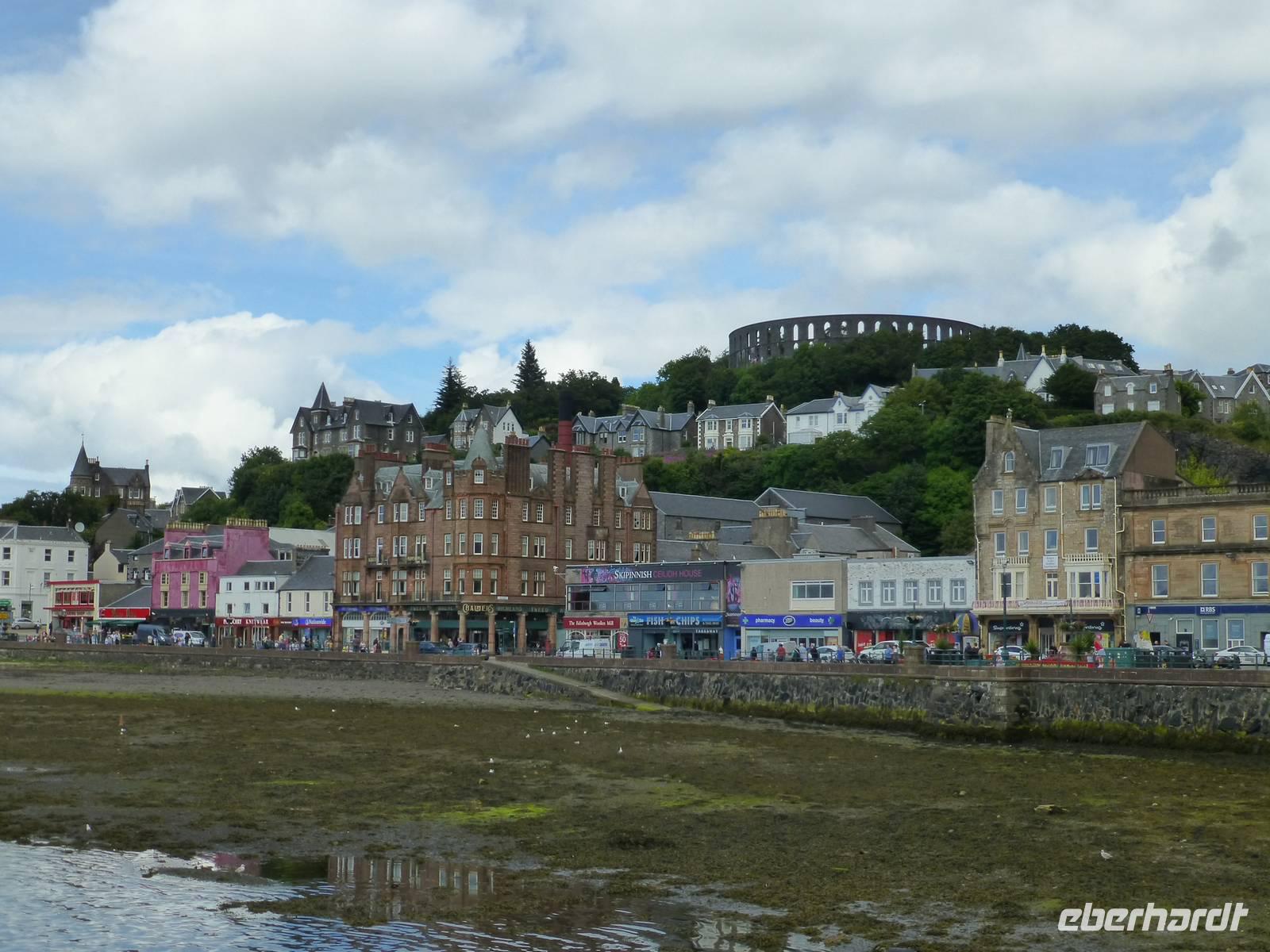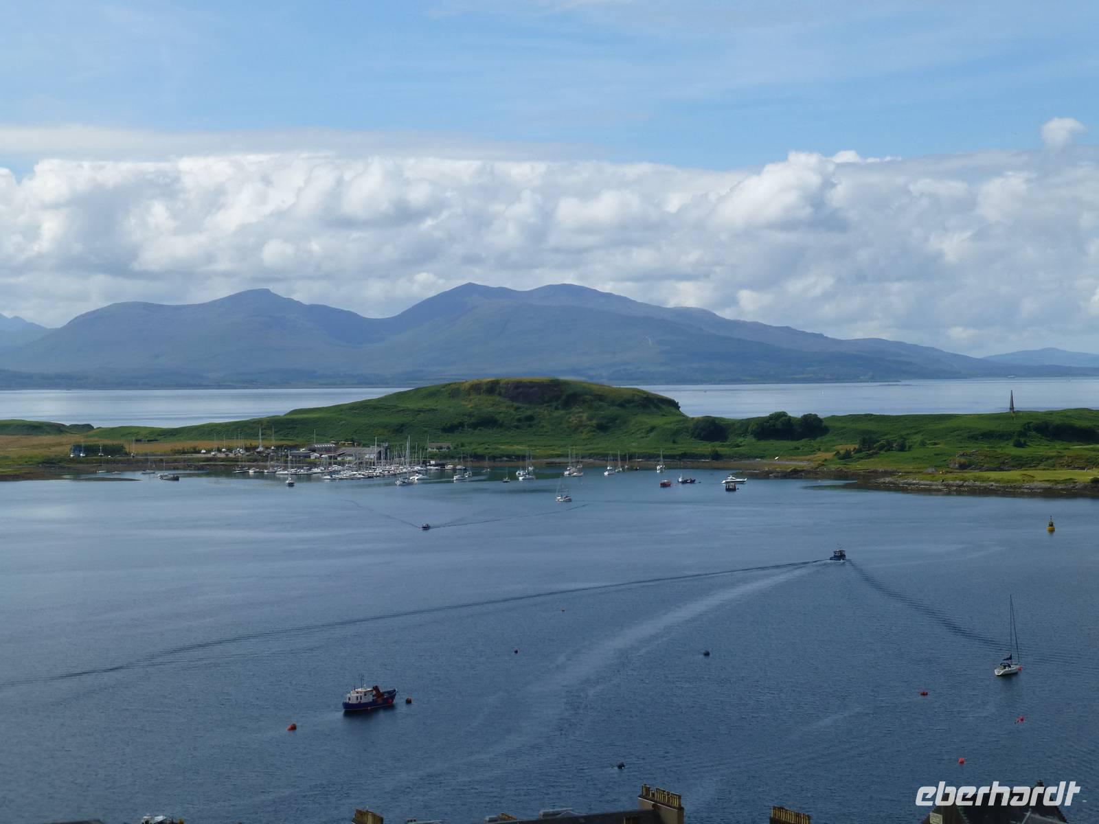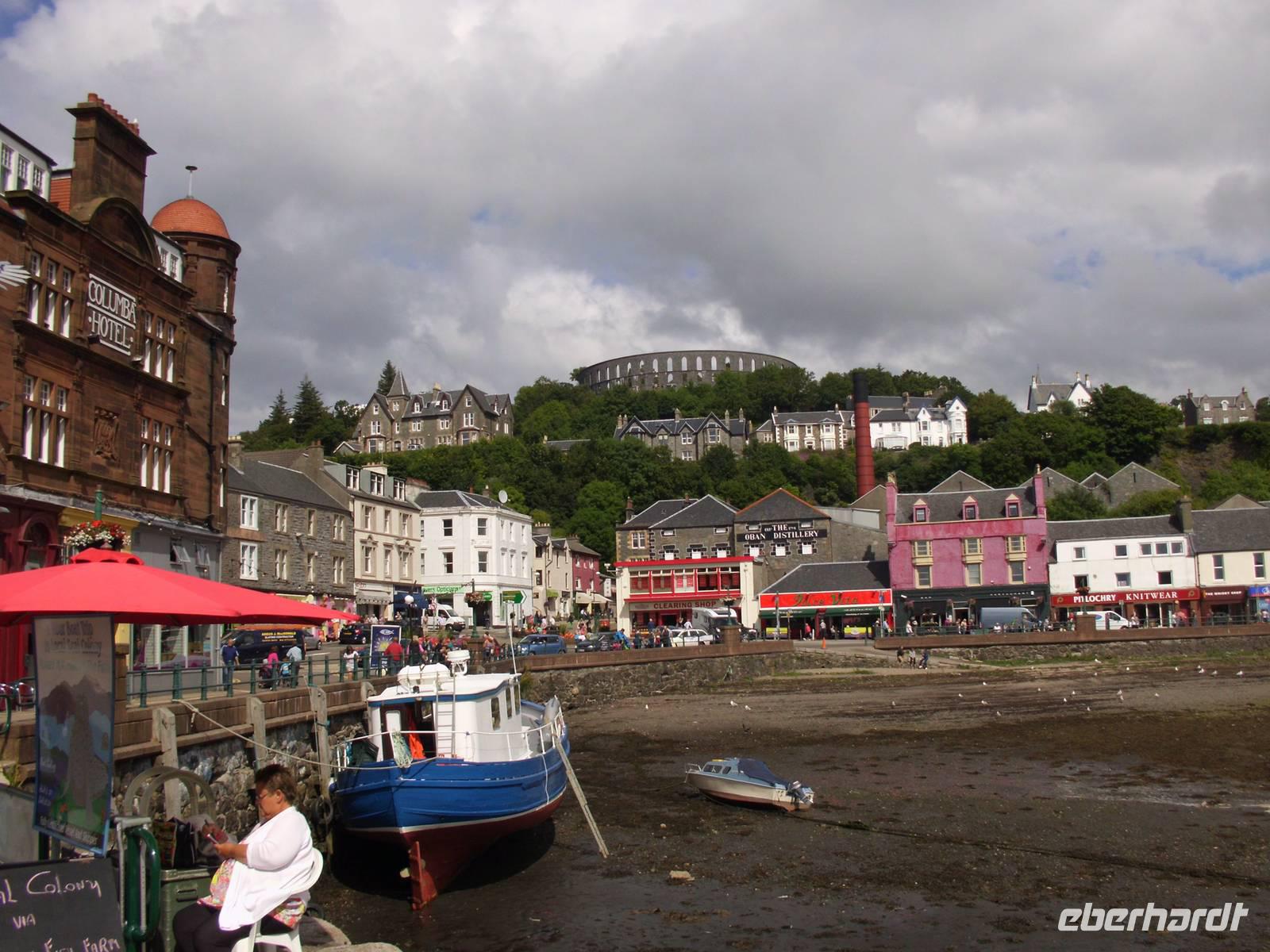 Sea-Lochs sind wie Fjorde tief ins Land eingeschnittene Meeresarme oder -zungen. Loch Fyne, Loch Etive, Loch Linnhe und Loch Leven waren die wichtigsten Sea-Lochs unserer heutigen Route. Aber auch einen binnenländischen Loch-Rekord erreichten wir: Nachdem wir gestern noch mit Loch Lomond den Loch mit der größten Quadratkilometerfläche (71,5 qkm) befahren hatten, umrundeten wir heute das Ostufer des längsten Binnenlochs, Loch Awe mit 41 km Länge. Der Lomond bringt es "nur" auf 36 km, Loch Ness auf immerhin 39 km.Die Vorstellung, dass in den schottischen Sea Lochs bereits Riesenhaie auf der Jagd nach Plankton beobachtet wurden, war vielen befremdlich.Am Loch Fyne besuchten wir nach einem Spaziergang zunächst Inveraray Castle, dann die gleichnamige Siedlung, die im 18. Jhdt. verlegt wurde, weil ihr Anblick dem ästhetischen Empfinden des zuständigen Duke of Argyll, Archibald Campbell missfiel.Nach der Mittagspause begaben wir uns am bereits erwähnten Loch Awe vorbei nach Oban, wo wir die schottische, neugotisch angehauchte Entsprechung des Kollosseums, den McCaig-Tower besuchten, um von dort auf die Stadt und die Umgebung bis zur Insel Mull zu schauen.Nach dem Besuch des Dunstaffnage Castle und einem Halt an den Falls of Lora, Stromschnellen, die sich am Lusragan Burn (Lusragan Strömung) zwischen dem Loch Etive und Linnhe wegen einer Felsbarriere einerseits und einem Engpass andererseits bilden und besonders dann wenn ablaufendes und auflaufendes Wasser dort aufeinandertreffen recht heftig werden können, kamen wir endlich am Zielort Fort William an.Technische Daten: