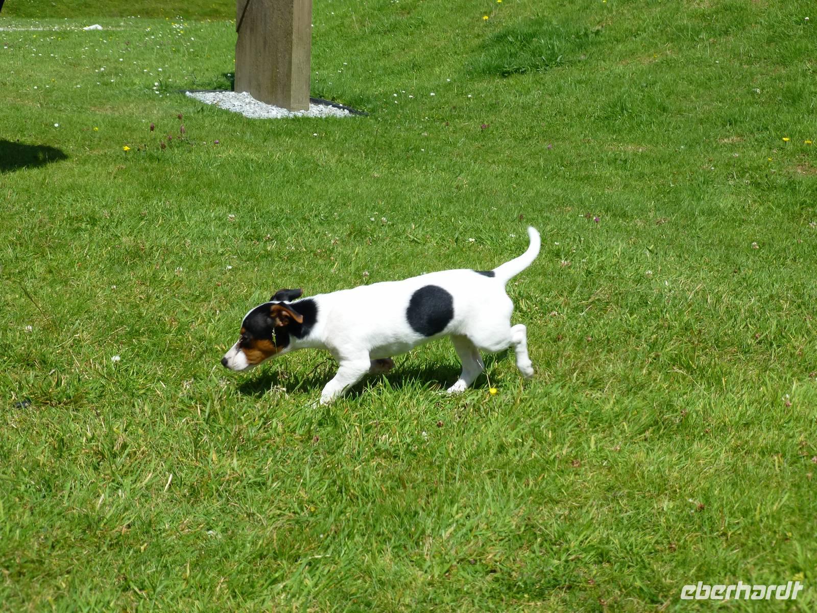 Besonders der Border Collie Rossi wollte zunächst einen alten Ast apportieren, den er Teilnehmern der Gruppe vor die Füße legte, bis die Frau, Tochter, Geliebte oder Haushälterin des Brückenwärters einen Tennisball ins Spiel gab. Den kaute Rossi jedesmal ordentlich durch, bevor sie ihn wieder freigab. Ansonsten bewies Rossi gute Torhüterqualitäten.
