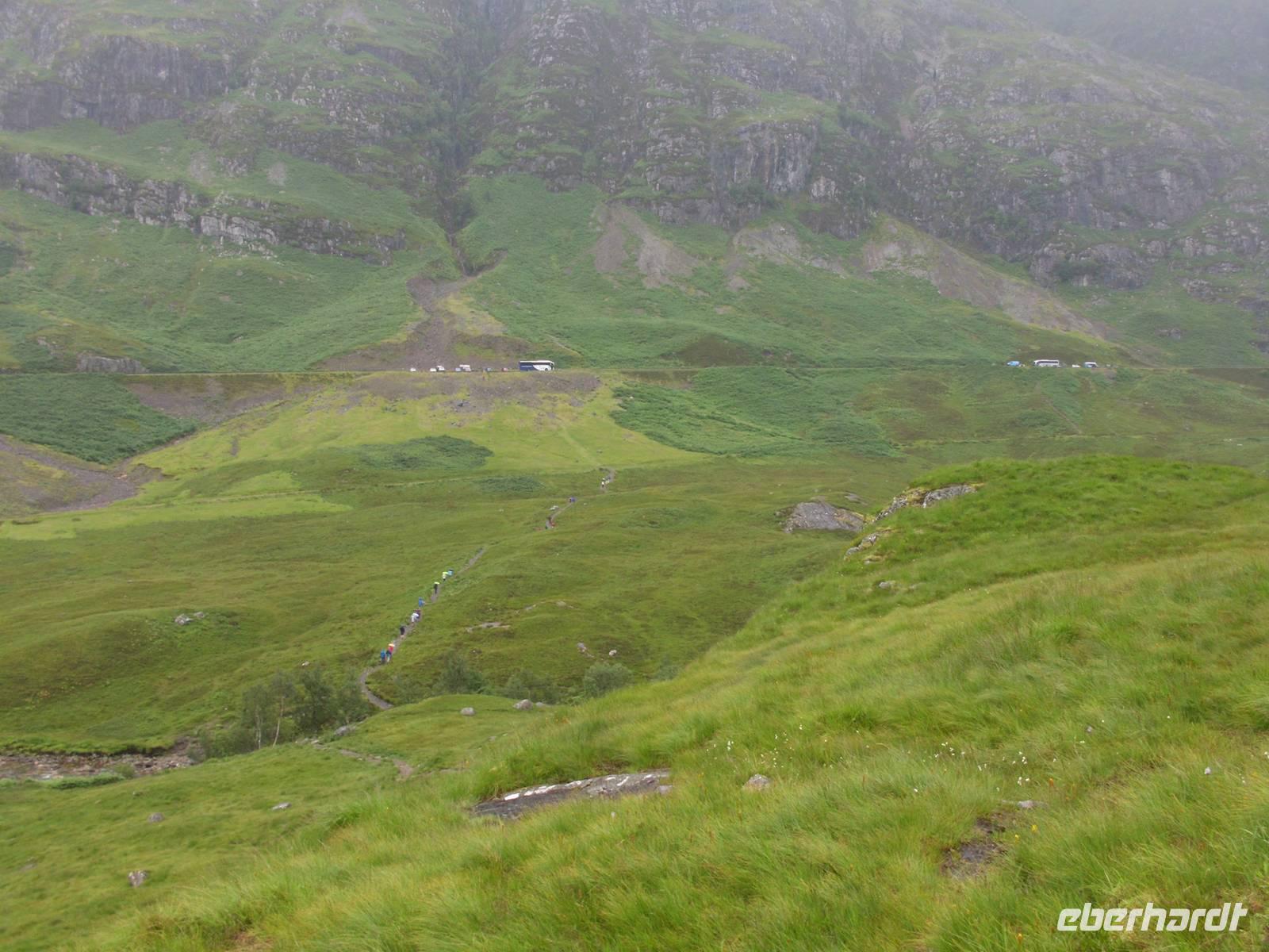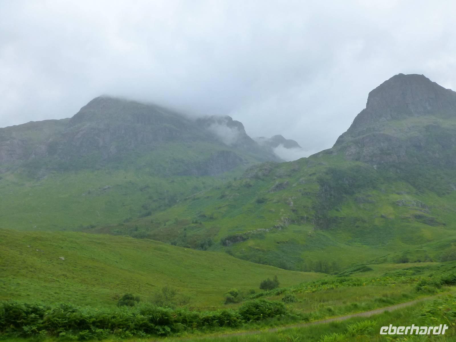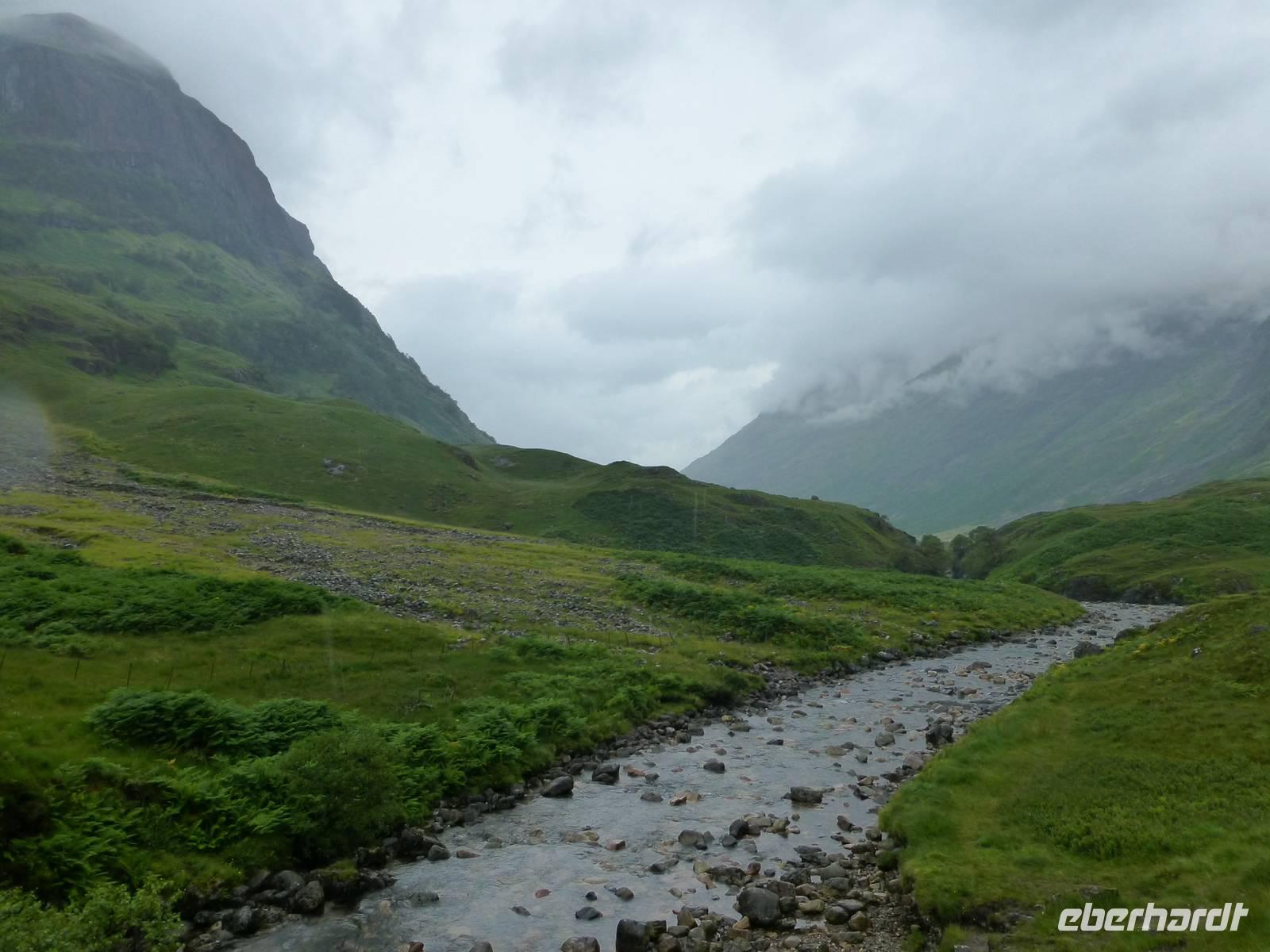 Zunächst noch parallel der Bahnstrecke, dann zweigte die Straße Richtung Glen Coe ab, wo im Februar 1691 die Campbells of Xy an den McDonalds of Glen Coe in königlichem Auftrag ein Massaker verübten, welches als Anfang vom Ende der Cla-Kultur gewertet wird und die Campbells zum unbeliebtesten Clan Schottlands machte, ein Erbe welches anhält.