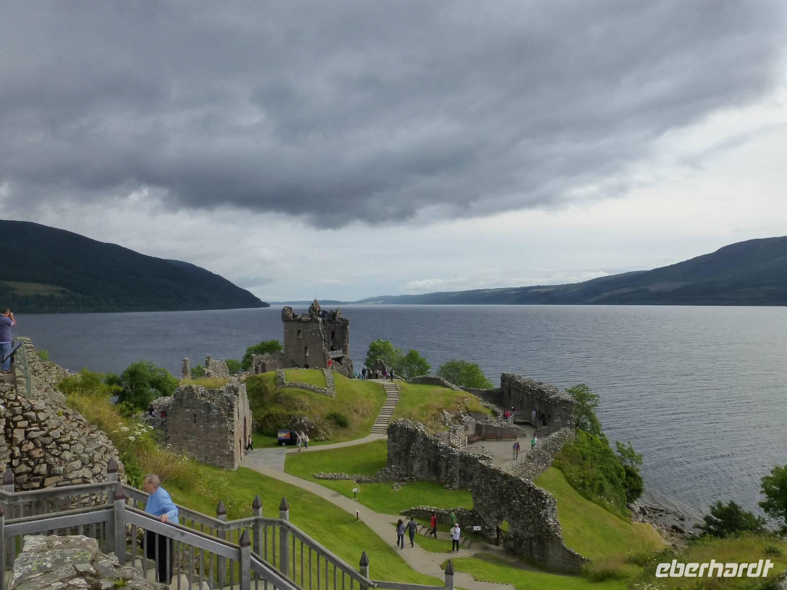 Wir verließen nun Fort William, um nach Urquhart Castle am Loch Ness zu fahren, einem Hot Spot für Nessie-Beobachtungen. Aber kein Tier der Gattung Nessiteras rhombopteryx (rhombenförmiges Ness-Tier) wollte sich zeigen. Aber wie das bei Wildtieren so ist: Dass WIR SIE nicht sehen, bedeutet nicht, dass SIE nicht da sind und UNS nicht sehen...Wir erfuhren einiges über die WECHSELvolle Geschichte von Urquhart Castle, vom Hl.