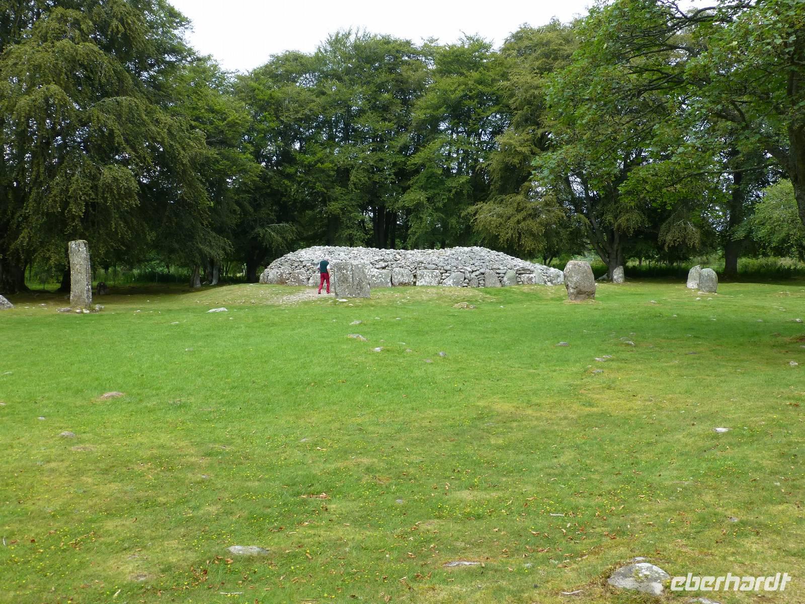 Nach einem Spaziergang über das Schlachtfeld, wo ein Wiesel gespannt den Ausführungen des Reiseleiters lauschte, erreichten wir die Clava Cairns, endneolithisch-frühbronzezeitliche Steinschüttungsgräber.Von dort aus strebten wir dem Höhepunkt des Tages entgegen: Dem Besuch der Whisky-Destillerie Benromach in Forres.Der Vorgang des Brennens beginnt mit dem Mälzen. Dazu nimmt man feuchten Gerste, den man auf Darrböden zum Keimen bringt, um den Keimprozess dann aber wieder gleich zu unterbrechen. Der angekeimte Roggen wird dann gekocht und auf diese Weise die Zuckerstärke ausgespült, welche zu einer Art Bier von ca. 8 % Alkohol vergoren wird. Dieses Bier wird zwei Mal, nur in einer schottischen Brennerei sowie in Irland drei Mal destilliert, der Alkohol aufgefangen, der Überschuss geht wieder zurück in den Vorgang.