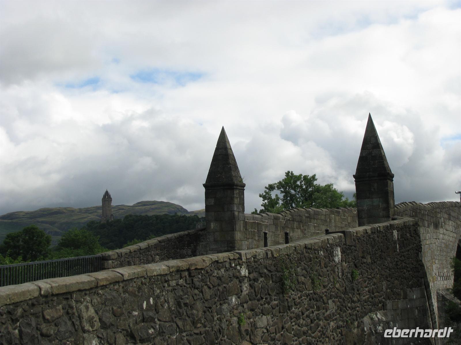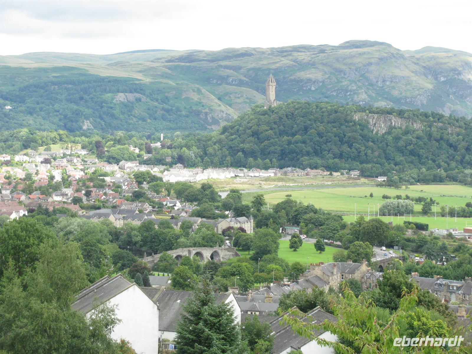 Nach dem Frühstück fuhren wir ab nach Stirling. Der erste Stopp war der Supermarkt, wo wir uns mit Leckereien für die Mittagsverpflegung ausstatteten. Duncan setzte uns an der Old Stirling Bridge ab, einem wichtigen Ort in der schottischen Geschichte. Wir spazierten über die Brücke und durch den Ort Stirling zur Church of the holy Rude, einer protestantischen Kirche, in der Maria Stuarts Sohn Edward im zarten Alter von 13 Monaten zum König von Schottland gekrönt wurde. Von dort war es nicht mehr weit zum beeindruckenden Stirling Castle. Auf eigene Faust konnten wir die einzelnen Säle und Museen besichtigen: Die Waffenkammer, ein Webstudio, die Große Halle. Anschließend setzten wir uns auf die Festungsmauer und machten Mittagspause mit großartiger Aussicht auf das William-Wallace-Monument.