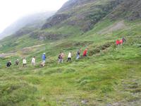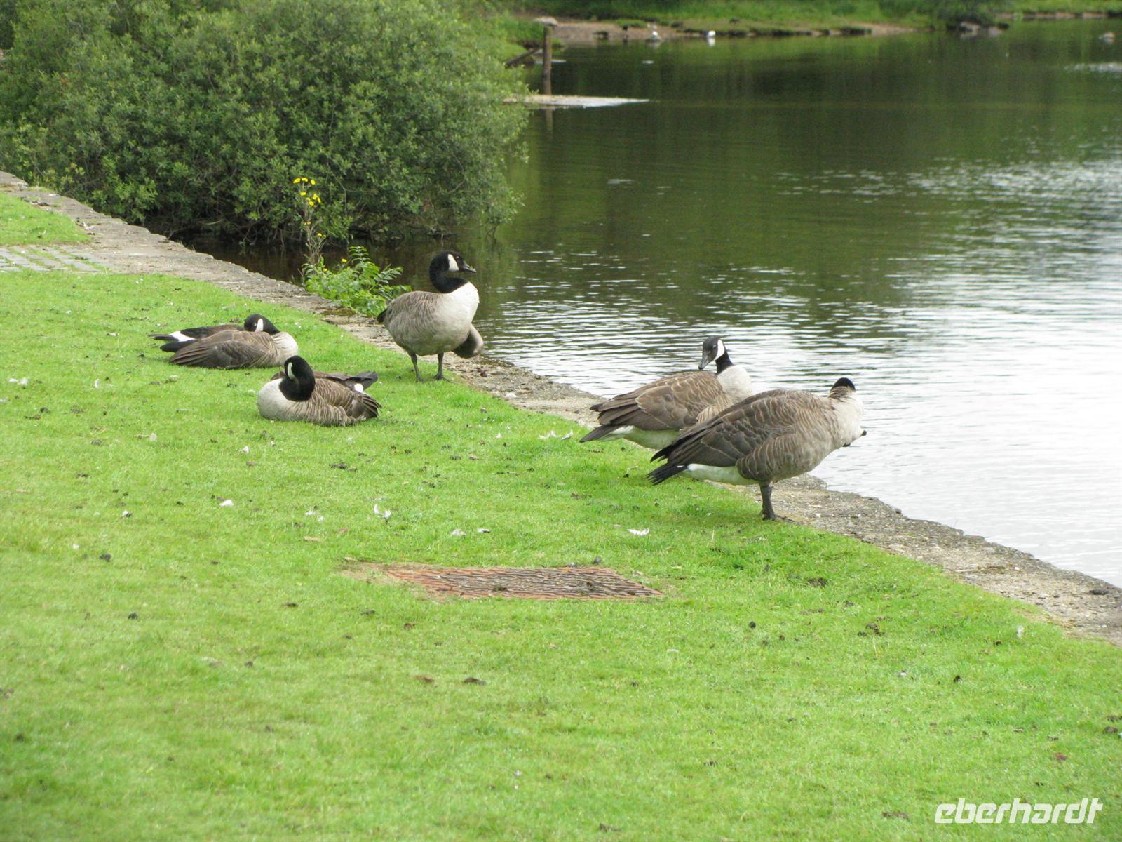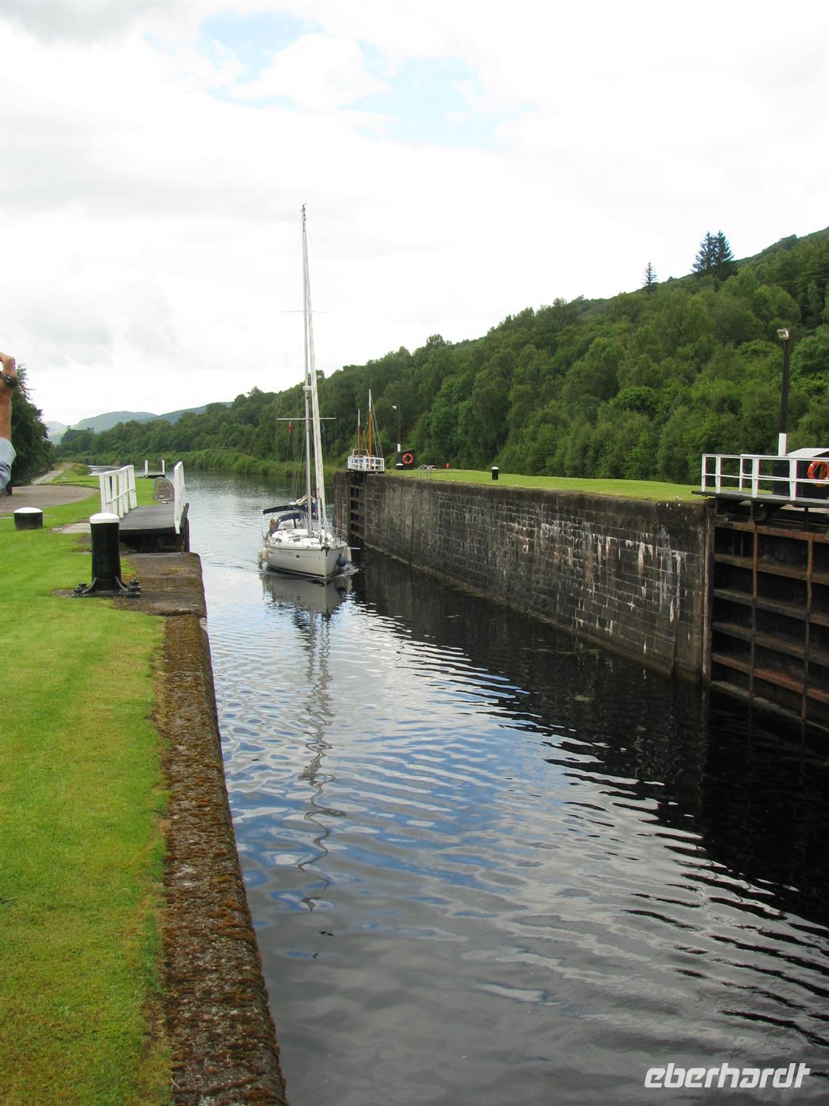 Die größte Wanderung lag heute vor uns. In freudiger Erwartung fuhr Duncan uns nach Gairlochy, wo die Wanderung begann. Entlang des kaledonischen Kanals wanderten wir zunächst bis zur Schleusentreppe „Neptuns Treppe“. Dort wartete bereits Duncan mit dem Bus. Ralf und ich hatten für heute eine Überraschung vorbereitet: Ein schottisches Picknick mit Baguettes, Cheddar-Käse, Schinken, Lachs, Obst, Gemüse und Keksen. Für den Fall, dass jemand nicht mehr weiterlaufen wollte, wäre dieser mit dem Bus zurückgefahren. Doch es wanderten alle weiter. Der Weg führte uns an den Punkt, an dem der Kanal in den See floss. Wir hatten Glück, denn gerade zu der Zeit kam ein Segelboot in die Schleuse und wir konnten beobachten, wie die erste Schleuse geöffnet wurde. Auf dem weiteren Weg beobachteten wir ein Hockeyspiel. Vorbei am Loch Linnhe wanderten wir in Richtung Fort William. Leider führte die Strecke auch entlang einer Straße, doch nach kurzer Zeit waren wir wieder inmitten schönster Landschaft auf einer Schafweide. Doch die Schafe wollten nicht so nah an uns herankommen wie wir an sie. Also gingen wir weiter und erreichten das Hotel am späten Nachmittag. Belohnt haben wir uns mit einem kühlen Glas Bier.