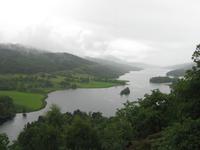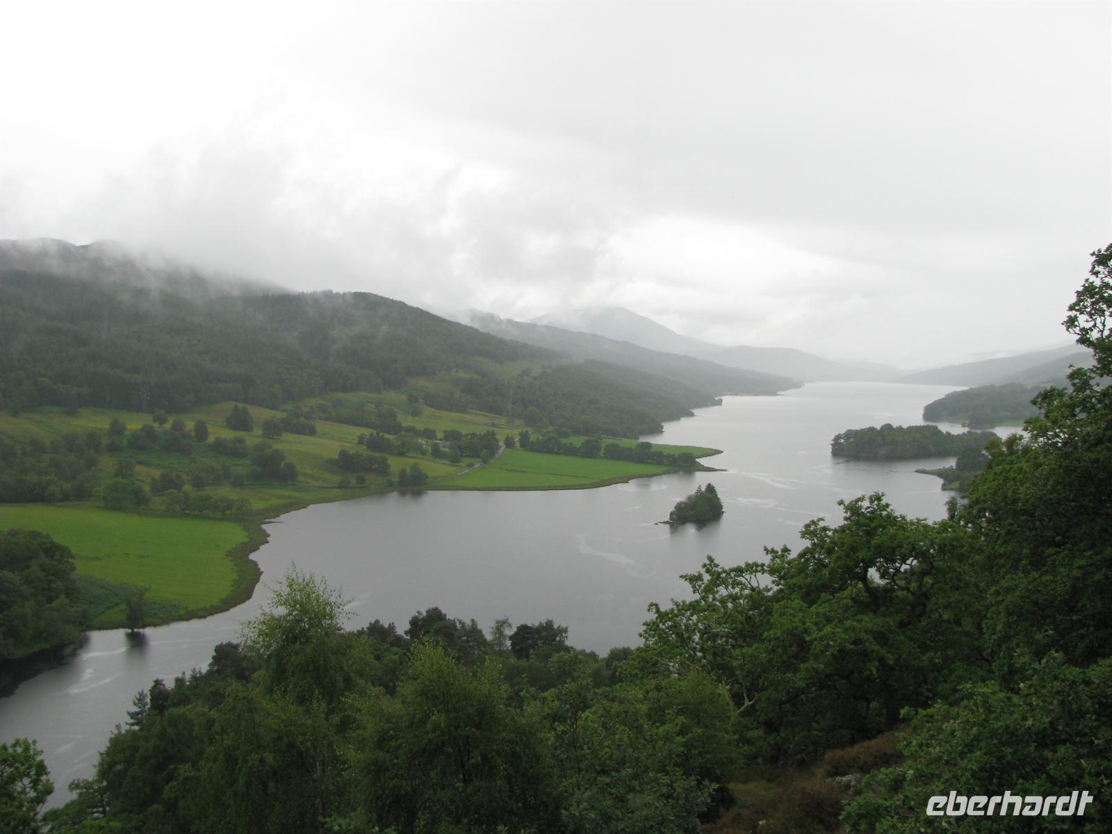 Nun verließen wir wieder unser Hotel in Aviemore und machten uns auf in Richtung Süden. Das Wetter versprach heute nicht allzu viel, denn bereits auf den ersten Kilometern im Bus fing es an zu regnen. Wir fuhren zuerst zu einem Aussichtspunkt, dem Queen's View. Benannt wurde dieser nach dem königlichen Besuch der englischen Königin Victoria. Trotz Regen hatten wir recht gute Sicht auf den Loch Tummel, der uns zu Füßen lag. Weiter ging es ins Waldgebiet Hermitage, wo wir uns das Mittagessen schon bei regenlosem Wetter schmecken lassen konnten. Wir begaben uns wieder auf Schusters Rappen und wanderten durch das Waldgebiet entlang des Rivers Tay. Auf den schönen Waldwegen ließ es sich hervorragend wandern. Nur eine große Steigung war zu überwinden, doch die hundert Meter schafften alle ohne Probleme. Wir kamen schließlich an einen Aussichtspunkt namens Ossian's Hall. Von einer Art Pavillion aus hatten wir einen schönen Blick auf einen tosenden Wasserfall. Von dort war es nicht mehr weit zum Bus. Wir fuhren nur ein paar Steinwürfe weiter in das hübsche Städtchen Dunkeld. Dort besichtigten wir die imposante Kathedrale und mussten anschließend vor dem Regen in ein Café flüchten. Nachdem alle am Bus angekommen waren, setzten wir die Fahrt nach Edinburgh fort. Wir fuhren über die Firth of Forth Bridge und machten in Queensferry einen Fotostopp, um die berühmte Eisenbahnbrücke zu fotografieren. Da unser 4-Sterne-Hotel "King James" sehr zentral gelegen war, machten wir auf dem Weg dort hin eine bereits eine kleine Stadtrundfahrt. Problemlos checkten wir ein uns bezogen unsere Zimmer. Zu Abend gab es erlesene Köstlichkeiten wie "Huluchen" oder "Schokoladen-Kucelieu". :-) Mit einigen Gästen unternahmen wir einen Spaziergang auf den Calton Hill. Von dort hatten wir eine sehr schöne Sicht auf die Silhouette von Edinburgh mit dem gleichnamigen Castle. Wir waren zur Zeit des Military Tattoos, eines der größten Militärmusik-Festivals der Welt, in der Hauptstadt. Deswegen zeigte sich das Castle in seinen schönsten Farben - grün, rot, lila und sogar ein kurzes Feuerwerk. Auf dem Weg nach Hause kehrten wir in einem Pub ein, dem "The Conan Doyle". Nachdem ich die Barkeeper von meiner Volljährigkeit überzeugt hatte, stießen wir auf eine gelungene Reise an.
