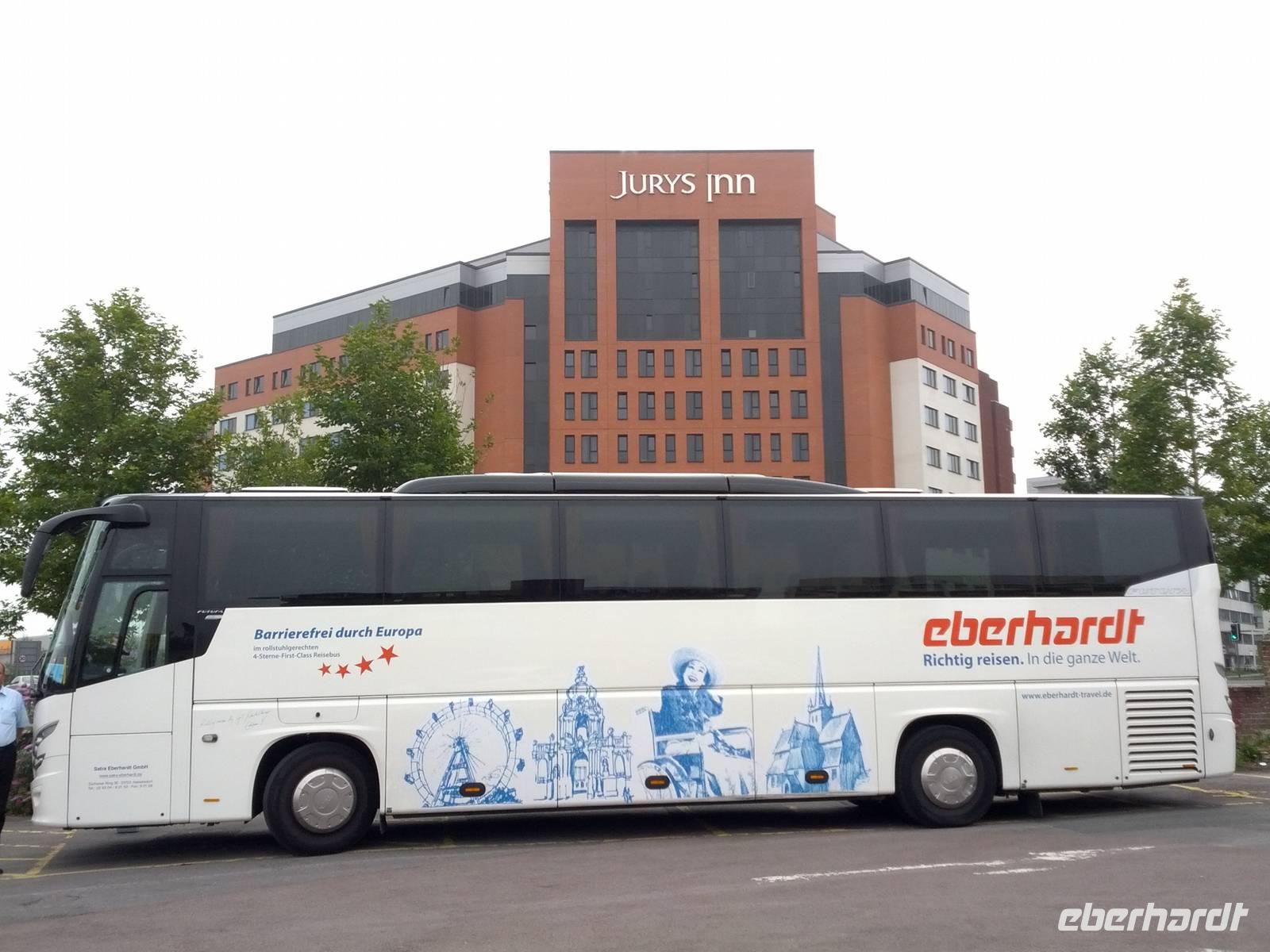 Am frühen Morgen startet unser Bus vom Eberhardt Travel Firmengelände in Kesselsdorf. Unsere ersten Reisegäste haben da schon weite Anfahrten auf sich genommen um mit uns zu reisen. Gäste von der Ostseeküste ließen sich beispielsweise über Eberhardt Travel ein behindertengerechtes Hotelzimmer in unmittelbarer Nähe vermitteln um entspannt ihren Urlaub zu beginnen, Gäste aus der Tschechischen Republik nutzen die Parkmöglichkeiten vor Ort um bequem die Reise antreten zu können.