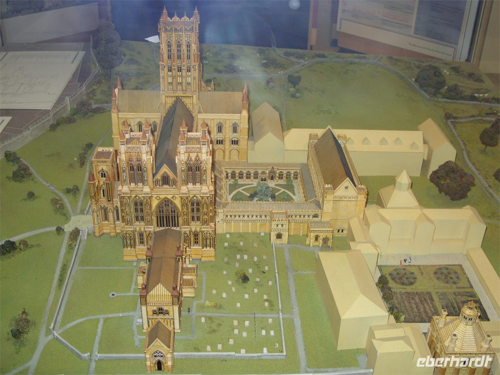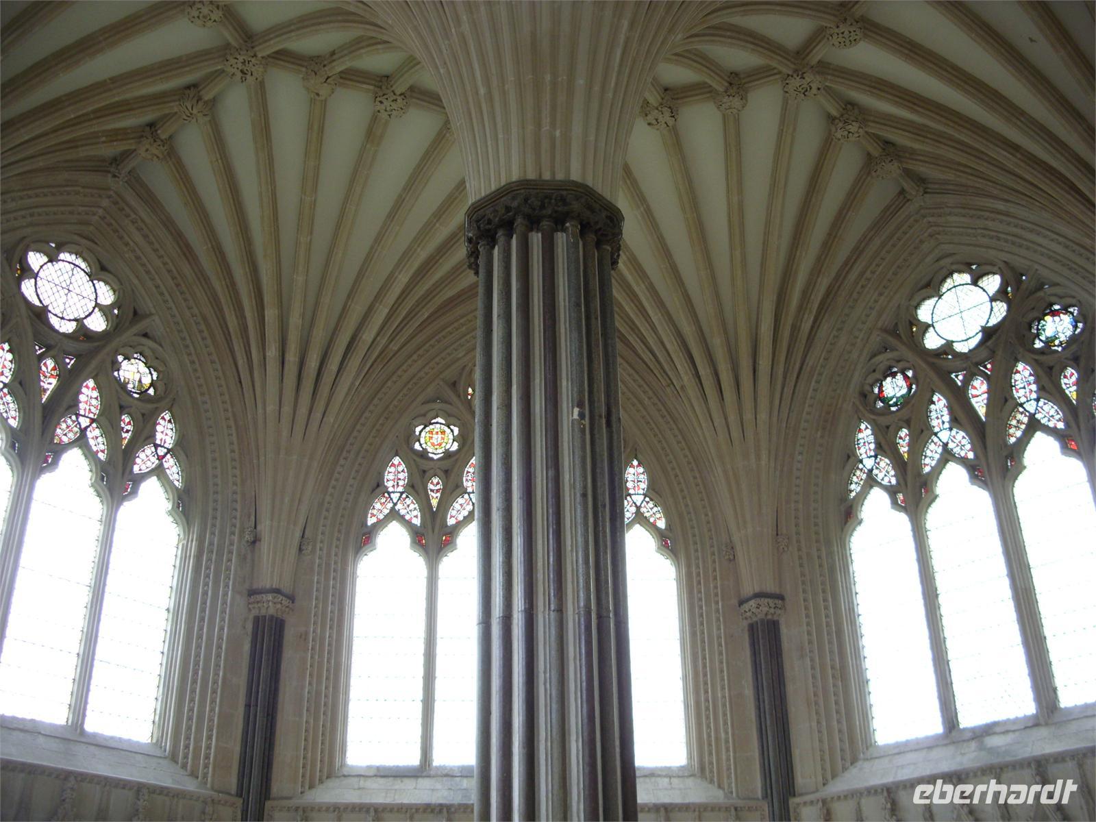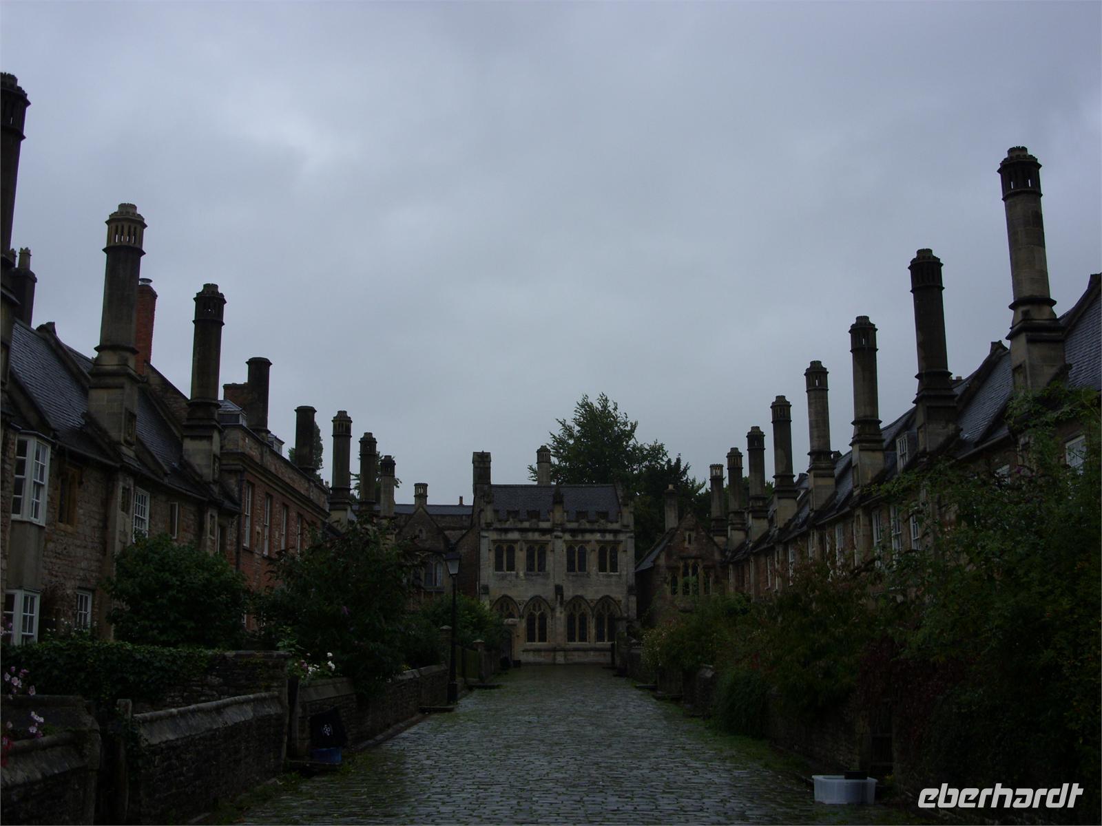 Obwohl am 9. Reisetag der Himmel kein Erbarmen mit uns hatte und wir im strömenden Regen die beiden letzten Kathedralen in Augenschein nahmen, blieben diese uns jedoch stark in Erinnerung. Zunächst besichtigten wir die Ruinen der berühmtem Glastonbury Abbey, der einstigen Grabstätte von König Arthur. Hier amüsierten wir uns auch köstlich bei der Darbietung eines verkleideten Mönches, der uns das Leben vor 700 Jahren in dieser Abtei näher brachte. Anschließend fuhren wir die wenigen Kilometer nach Wells, der kleinsten Kathedralenstadt Englands. Die Kathedrale von Wells, eine der frühesten erbauten Kathedralen des Landes, ist heutzutage vor allem berühmt für seine sogenannten Scherenbögen (gekreuzte Spitzbögen in der Vierung) und seinem Kapitelhaus, dessen Rippengewölbe wie eine riesige Palme aussieht.
