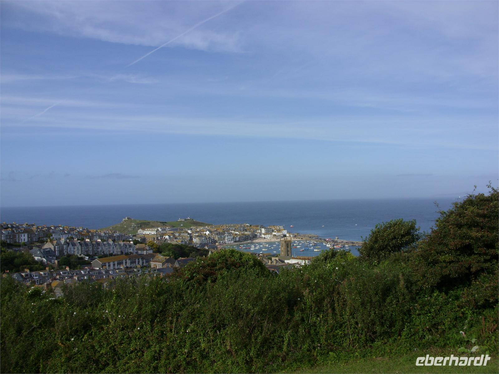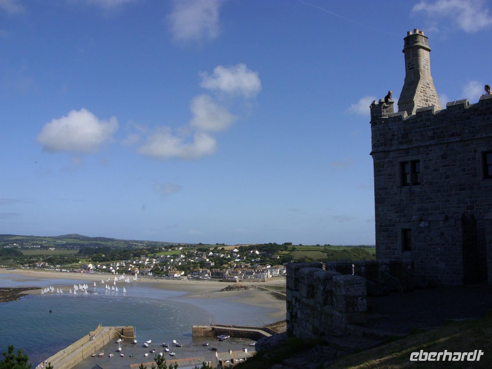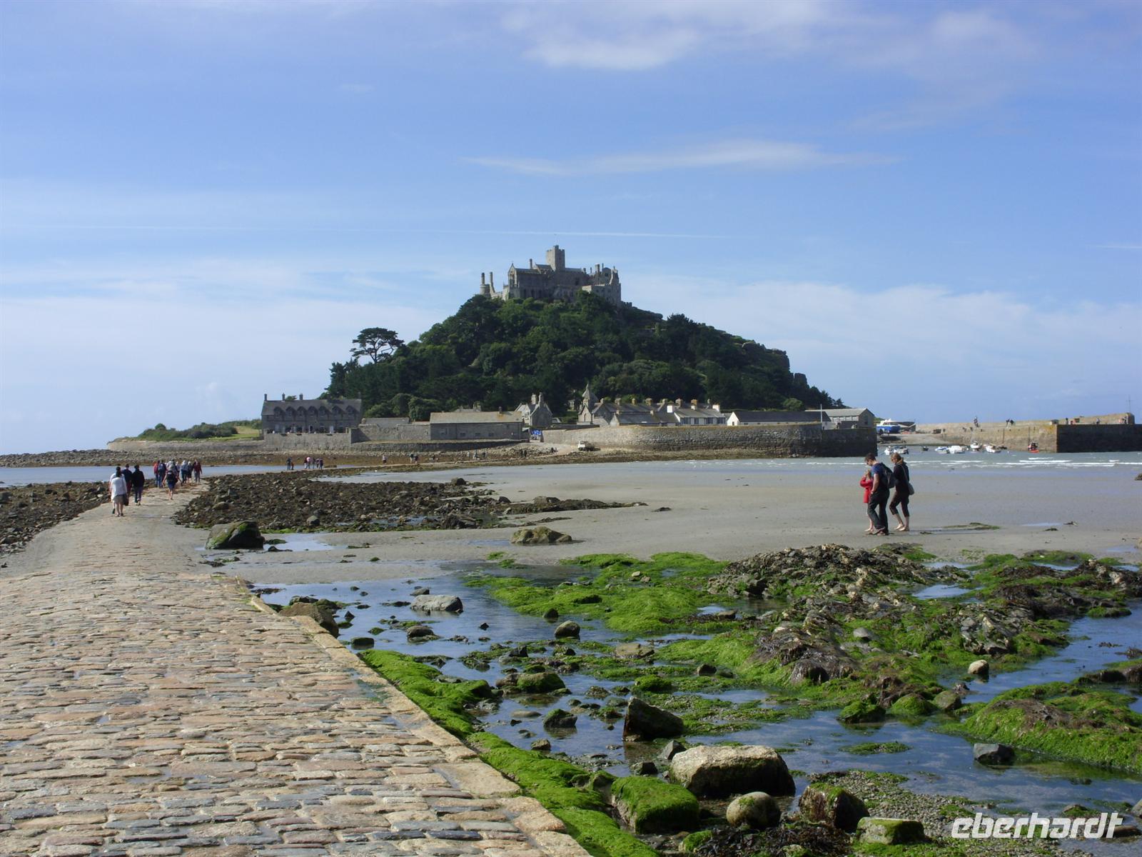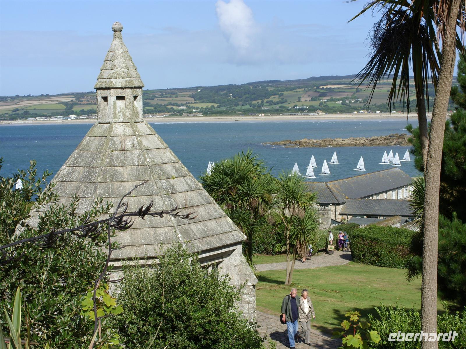 Herrlicher Sonnenschein war uns am 7. Reisetag gewiss und so genossen wir schon bei der Anfahrt den herrlichen Blick zum St. Michael's Mount - eine isoliert im Meer stehende Klosterfestung, die einst von den normannischen Benediktinermönchen des berühmten Mont St. Michels in Frankreich erbaut wurde. Im Laufe der Jahre wandelte sich doch die Bestimmung des Berges und wurde schließlich im 17. Jahrhundert zu einem komfortablen Wohnsitz der Familie St. Aubyn umgebaut. Die zahlreichen Stufen und sehr unebenen Wege hinauf zum Herrenhaus lohnten jedoch - es bot sich uns eine herrliche Aussicht auf die Bucht von Penzance!