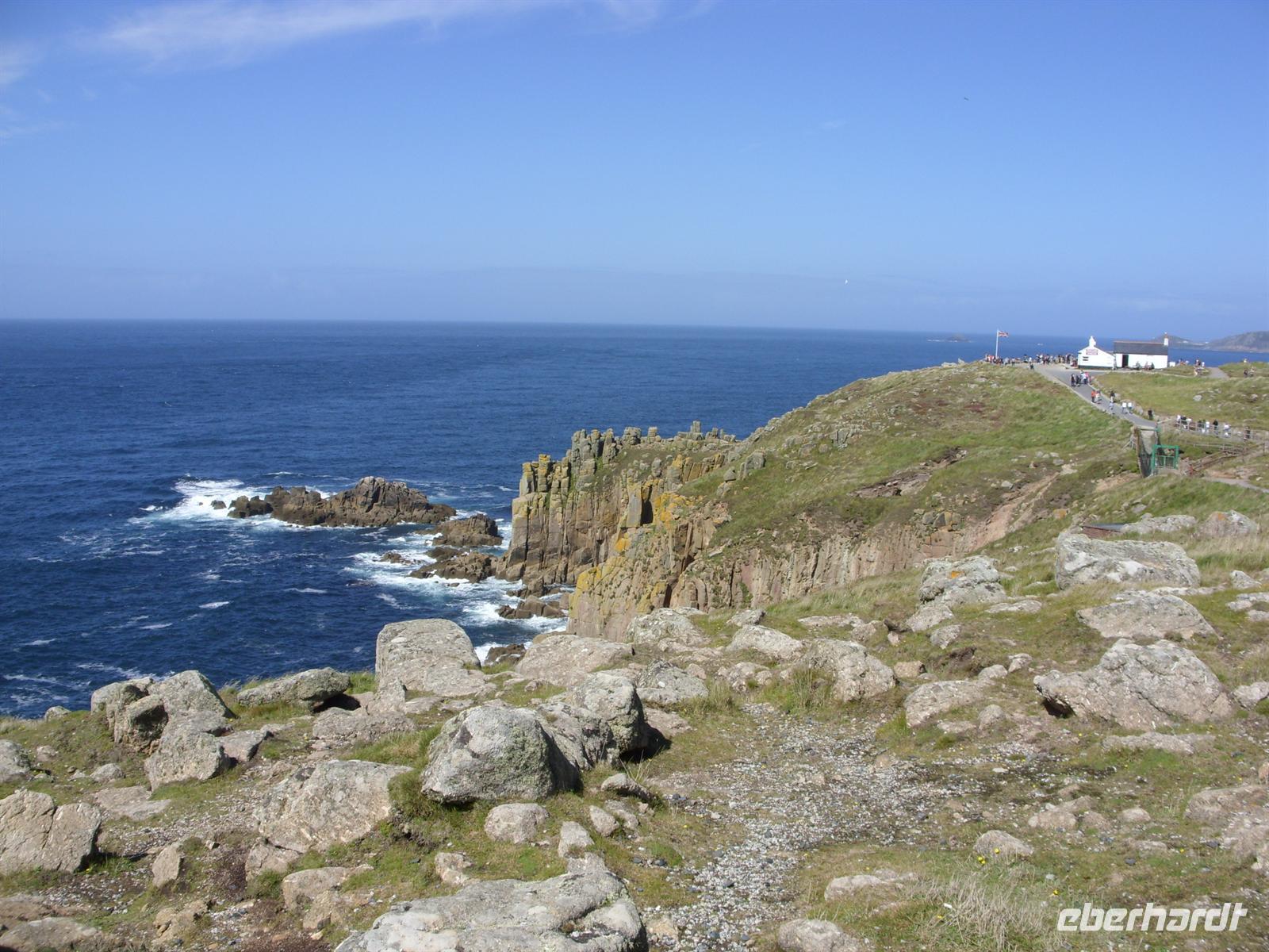 Bei herrlichem Sonnenschein erlebten wir schließlich am 7. Reisetag die westlichste Landspitze Englands: Land's End. Noch 3147 Meilen bis Amerika ... dazwischen nichts als Wasser und eine einzigartige Küstenlandschaft, für die Cornwall weltberühmt ist. Da kann man die Römer gar nicht verstehen, warum sie vor dem Ende der Welt Angst hatten und aus diesem Grund den kornischen Landstrich nicht besiedelt haben.