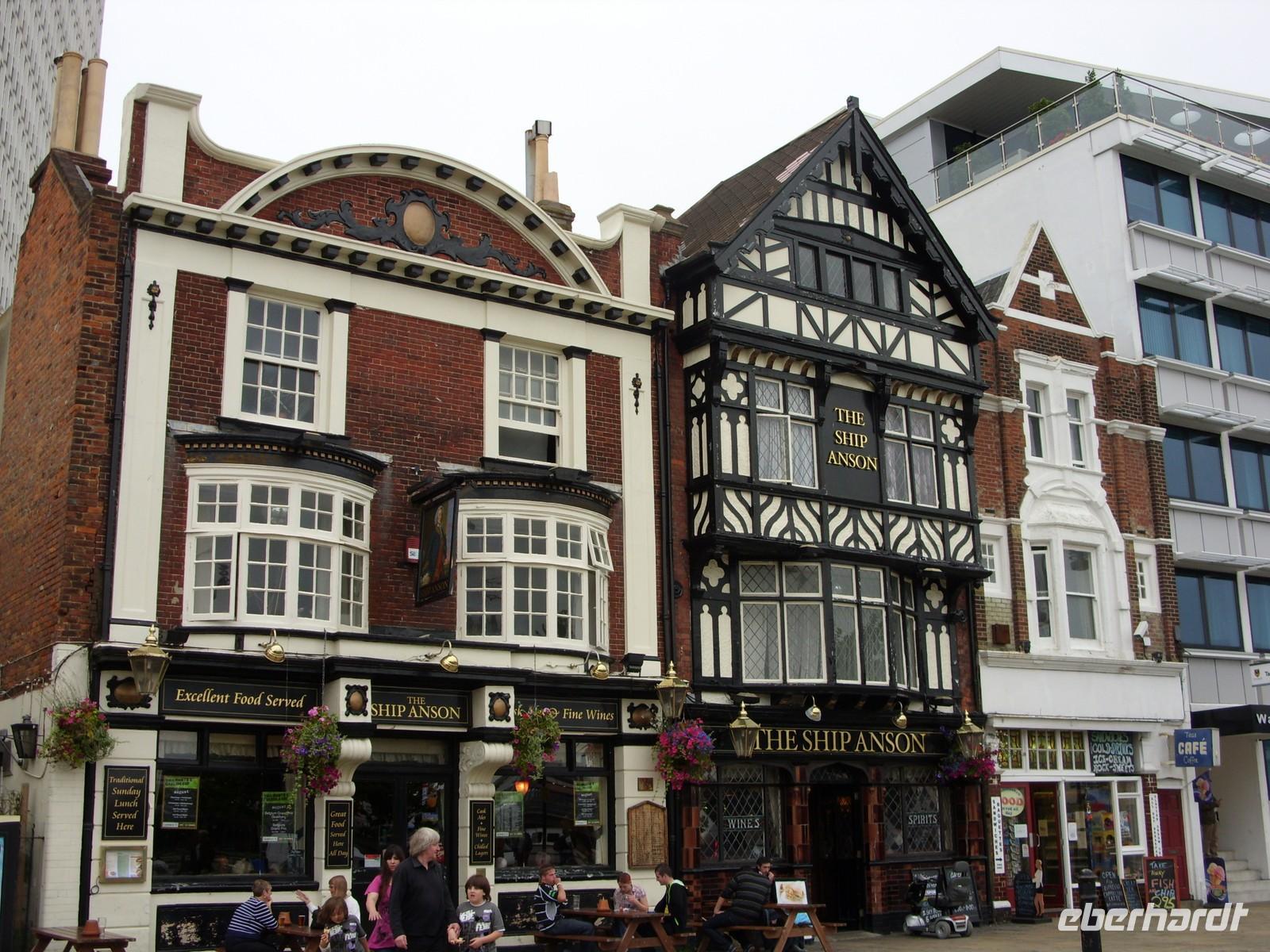 Erste große, typisch englische Hafenstadt auf unserer Reise war Portsmouth. Diese heutige Industriestadt gilt als Flaggschiff des maritimen Englands. Hier befindet sich der Heimathafen der Royal Navy und so ist es nicht verwunderlich, dass im (Museums-)Hafen die Nationalheiligtümer der englischen Seefahrtsgeschichte vertäut liegen. Das berühmteste unter ihnen ist die ?HMS Victory", einstiges Kriegsschiff unter dem Kommando von Admiral Lord Nelson. Bei einem eindrucksvollen Rundgang durch das Museumsschiff lernten wir das Leben an Bord Ende des 18. Jahrhunderts kennen und sahen zudem die Stelle, an der Lord Nelson während der Schlacht von Trafalgar am 21. Oktober 1805 tödlich verwundet wurde.